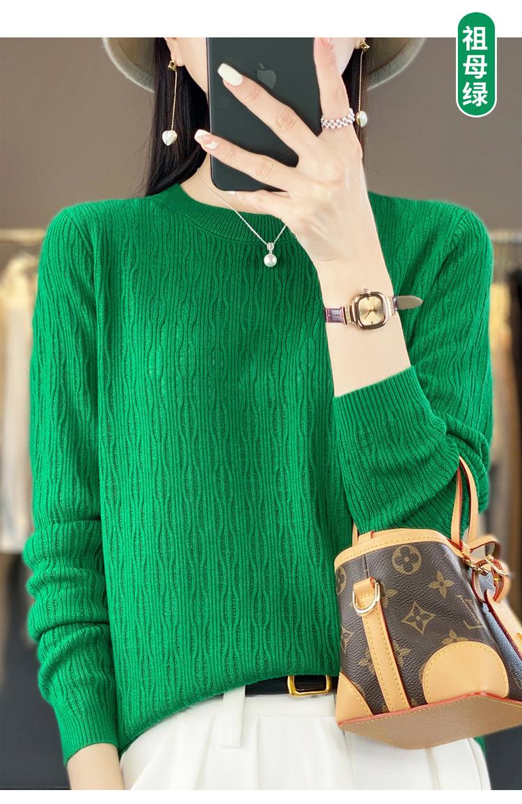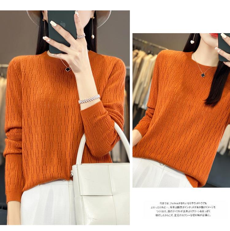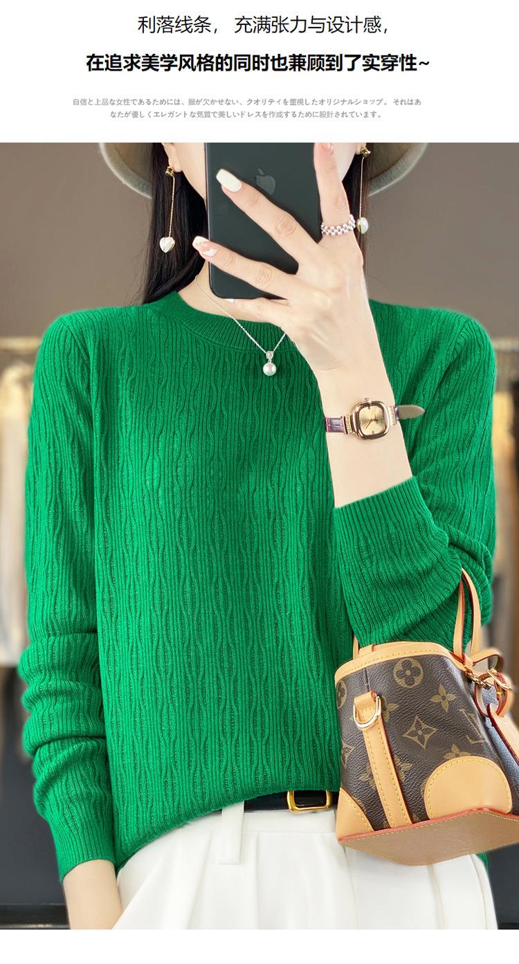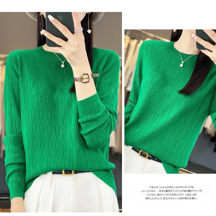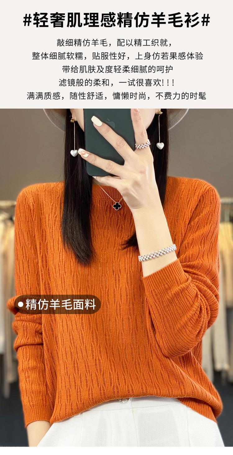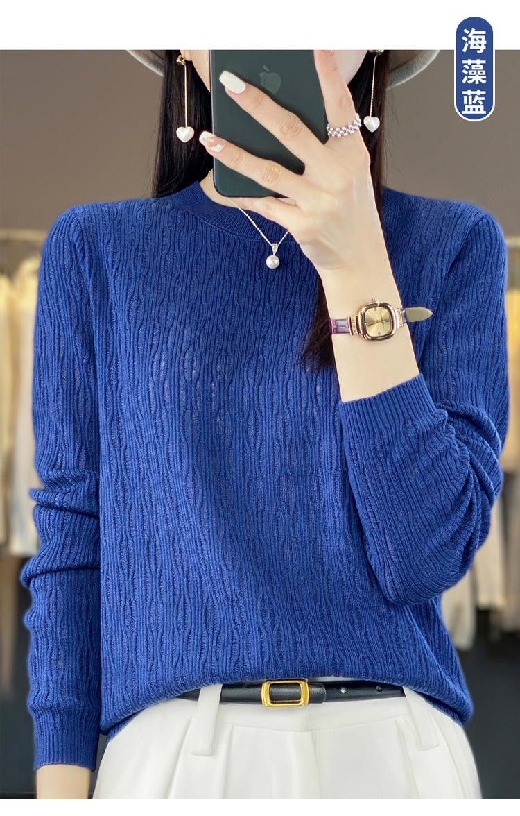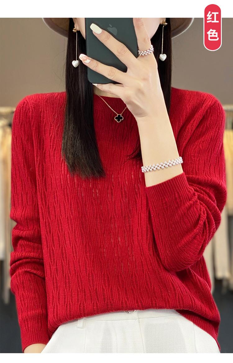 2023春秋跨境女式针织衫韩版圆领镂空精纺羊毛打底衫宽松毛衣