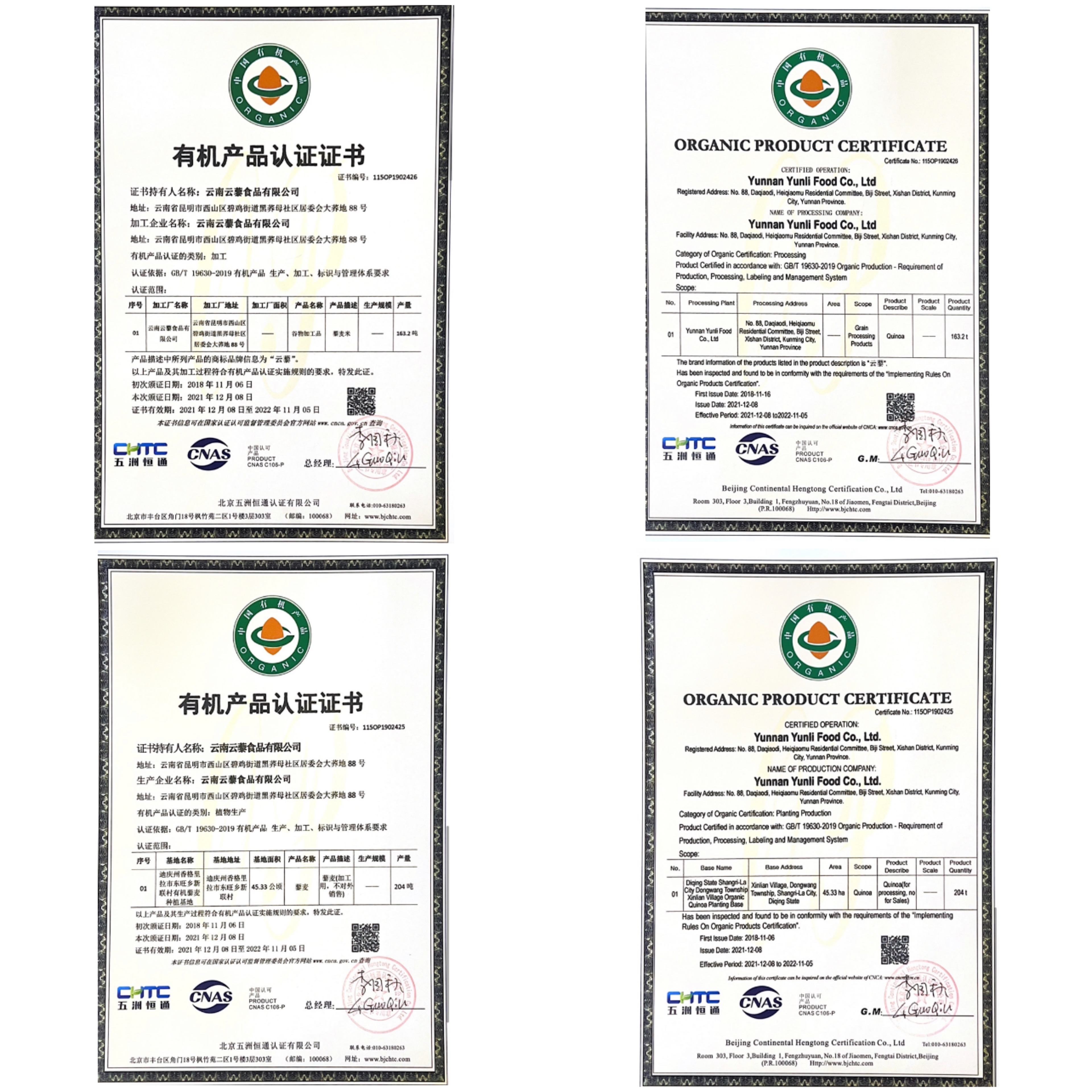 我们与云南香格里拉雪域高原区东旺乡新联村合作社和农户签订定向种植协议建立藜麦有机种植基地,并获有机种植认证。