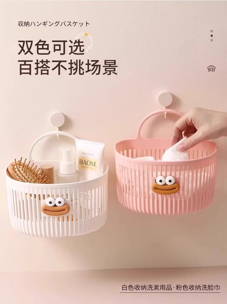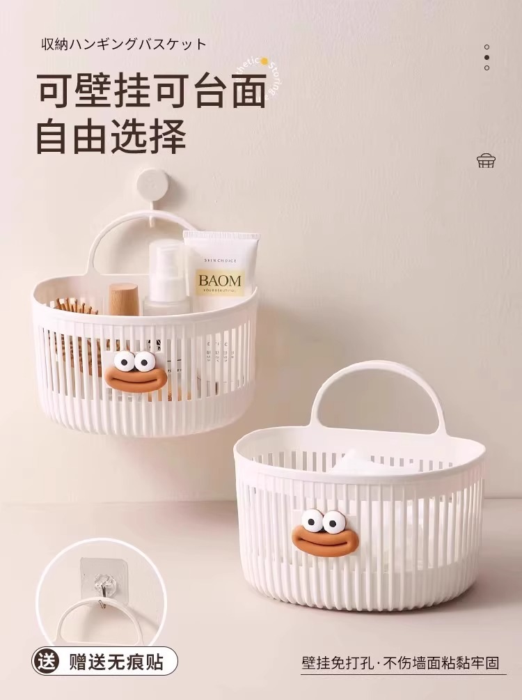 【免打孔不伤墙!可拆卸清洗重复用】多功能挂篮卫生间浴室化妆品洗脸巾收纳筐厨房宿舍床边壁挂式吊篮。TA