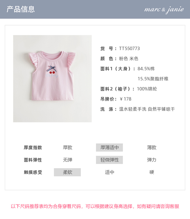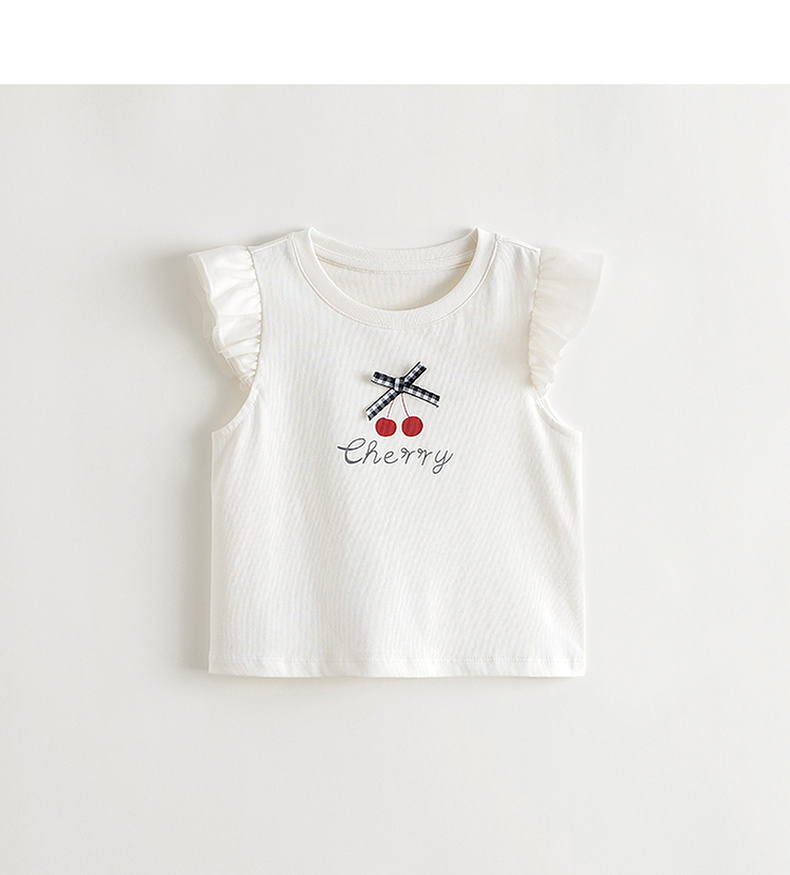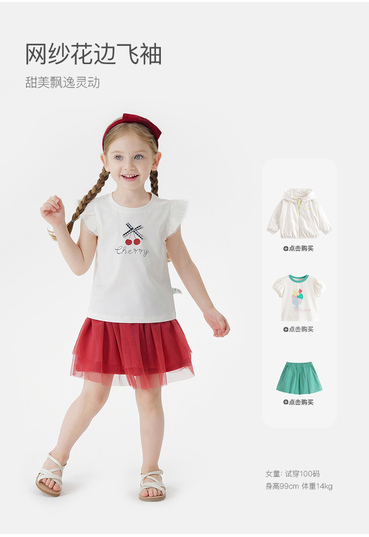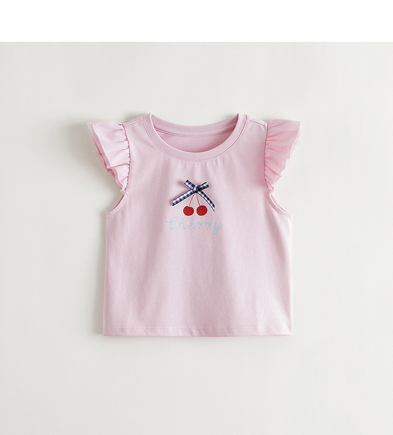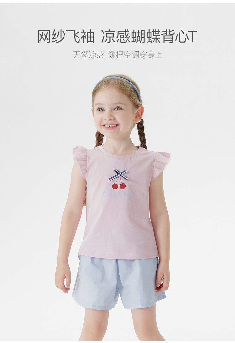 【凉感透气】马克珍妮女童蝴蝶结网纱飞袖背心宝宝夏装新款550773