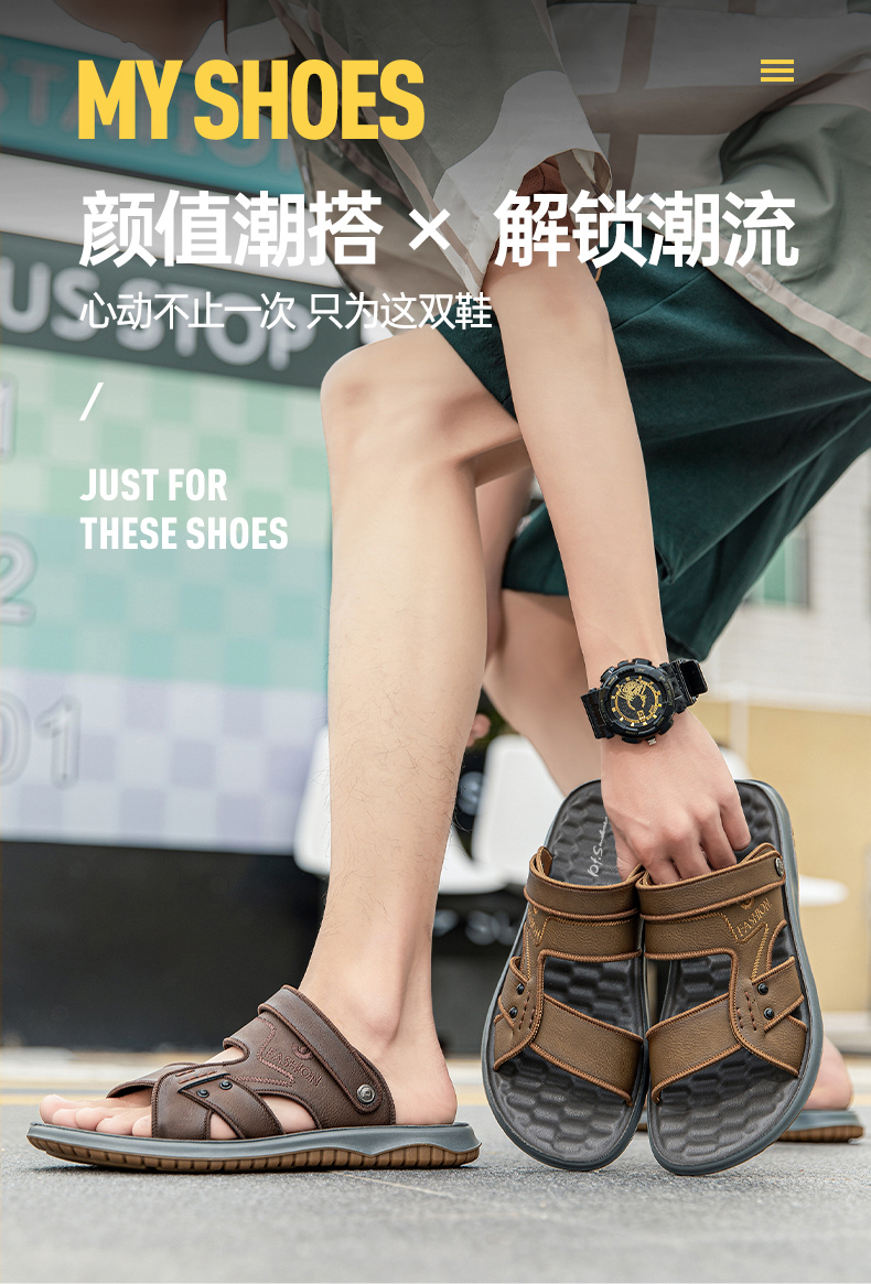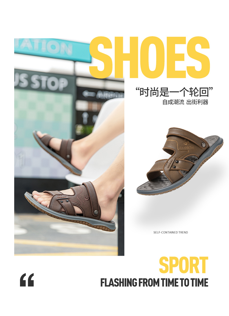 圣得西男鞋2024年夏季新款时尚中青年户外沙滩开车休闲两用凉拖鞋