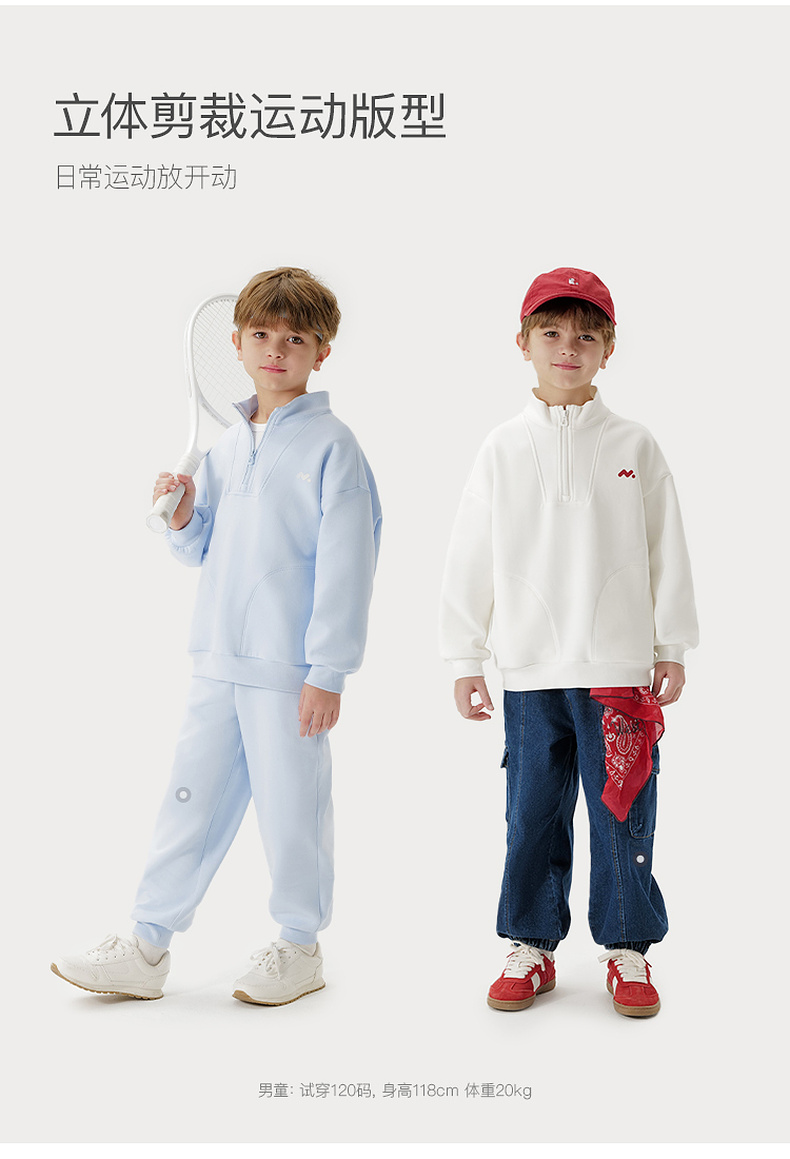 马克珍妮男童时尚立领空气卫衣儿童运动上衣2025年春装新款250030