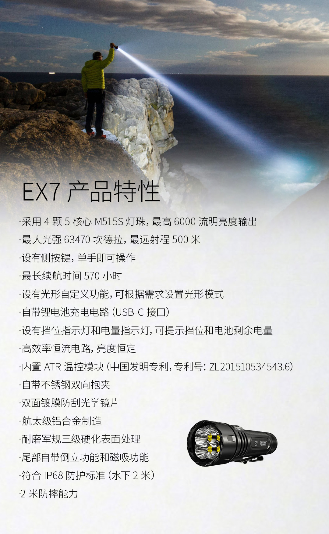 NITECORE奈特科尔 EX7户外远射手电6000流明盾搜索挡方位探索