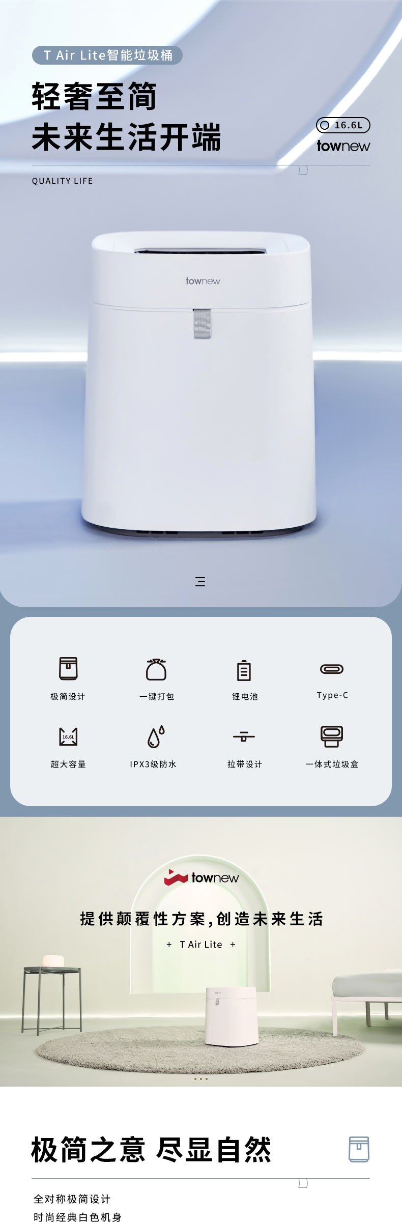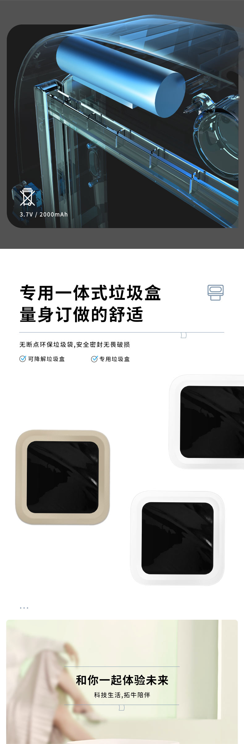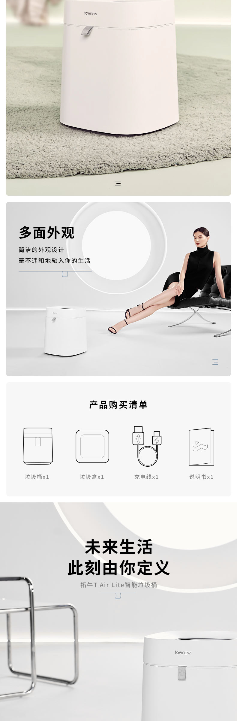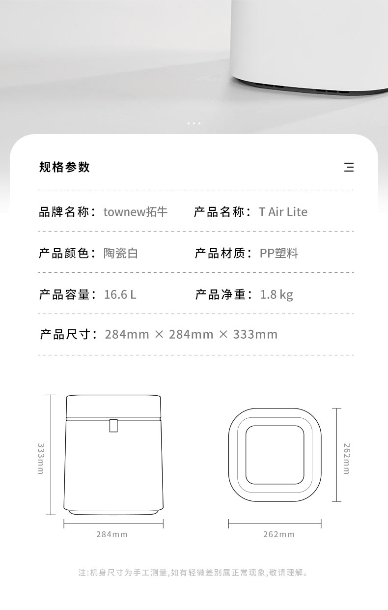拓牛智能垃圾桶T Air Lite TC02B 陶瓷白