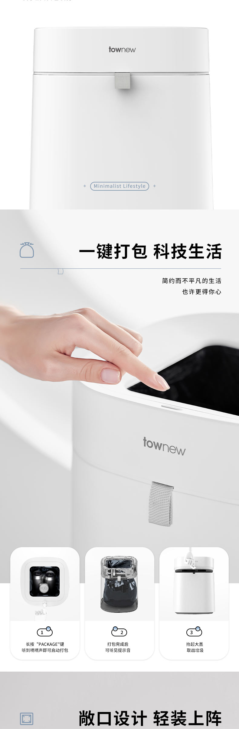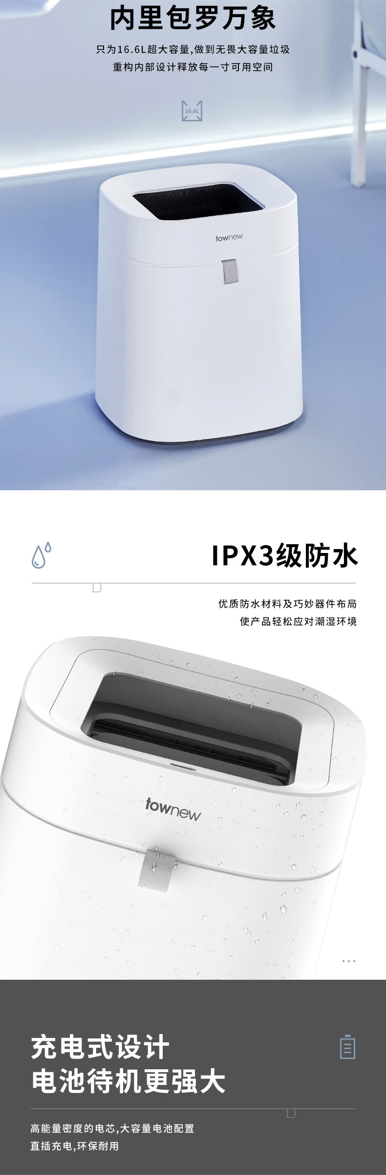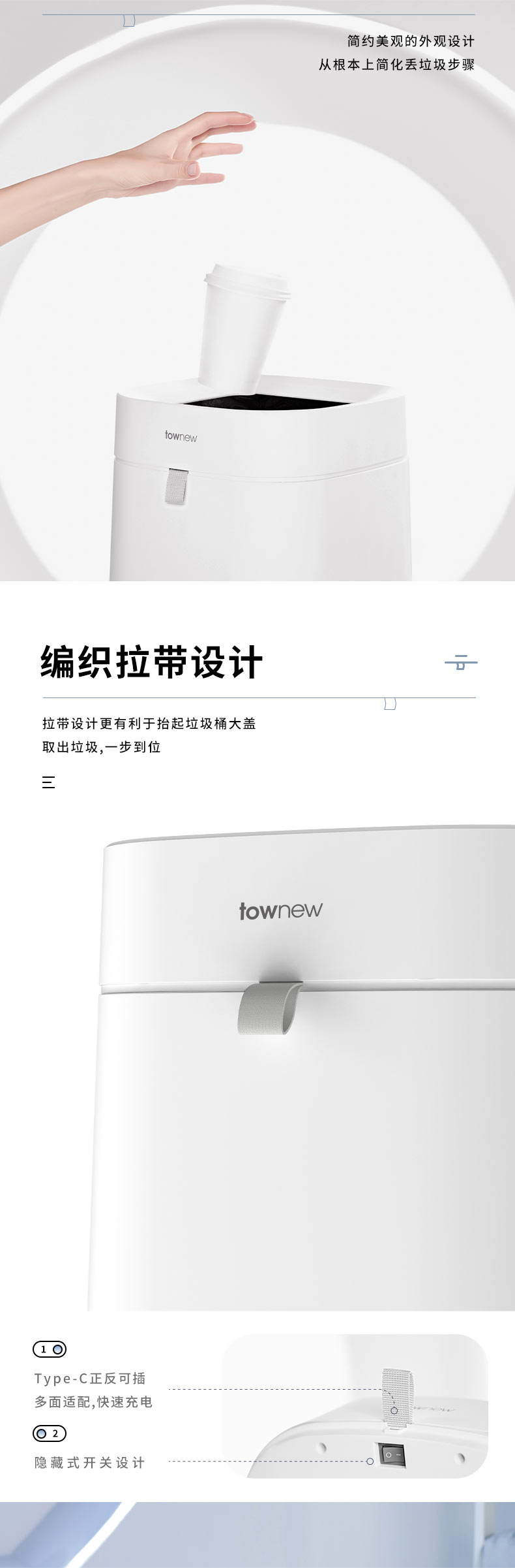 拓牛智能垃圾桶T Air Lite TC02B 陶瓷白