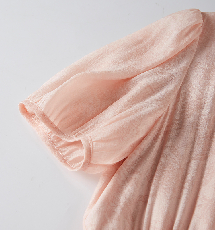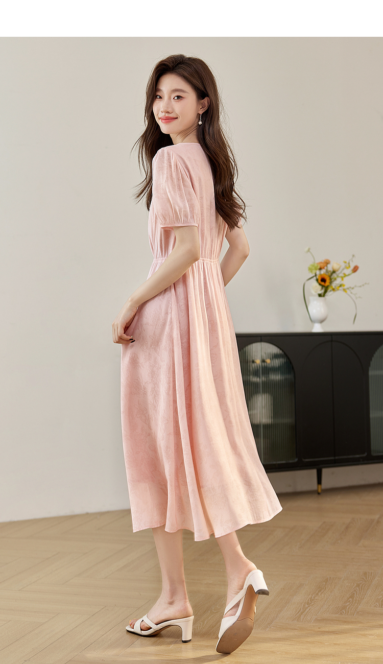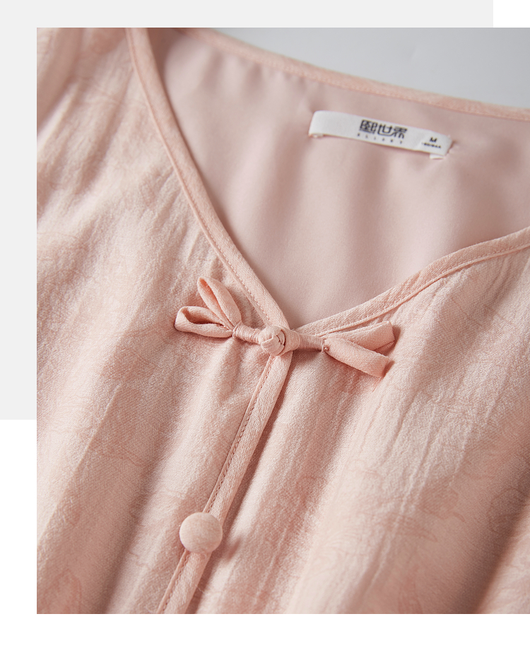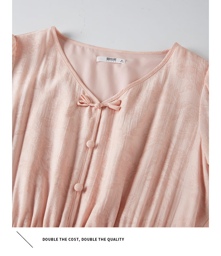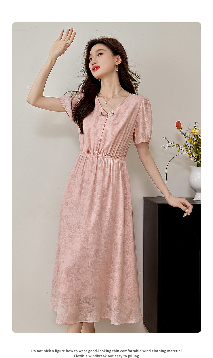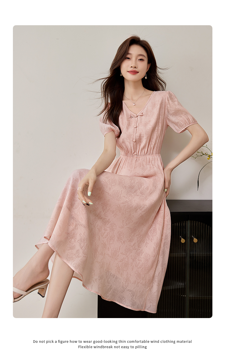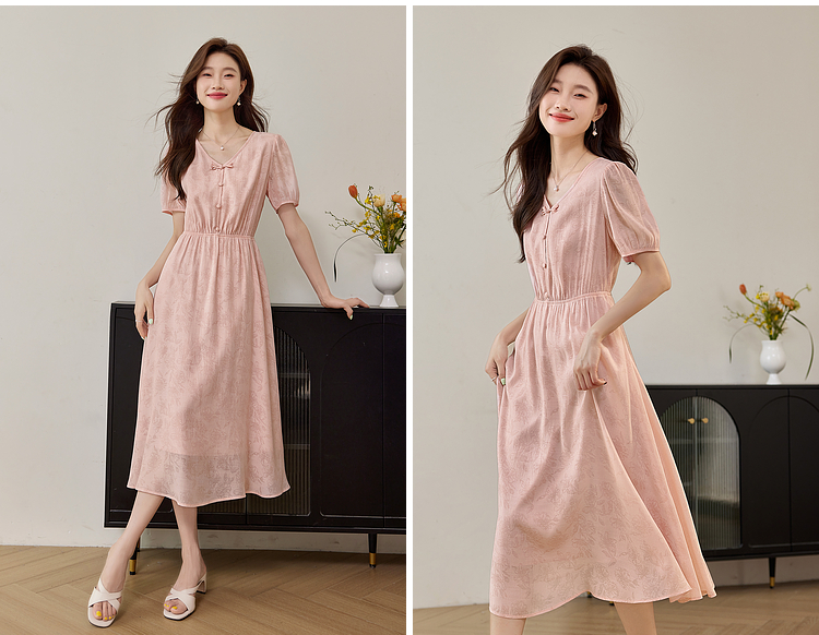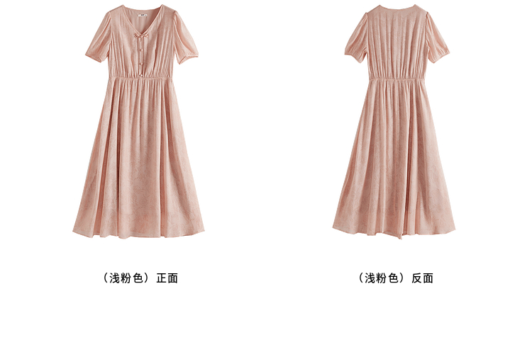 【专属特价】熙世界新中式暗纹提花连衣裙2025年夏季泡泡袖国风盘扣V领裙子