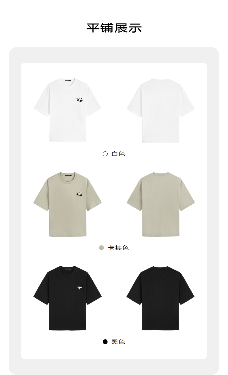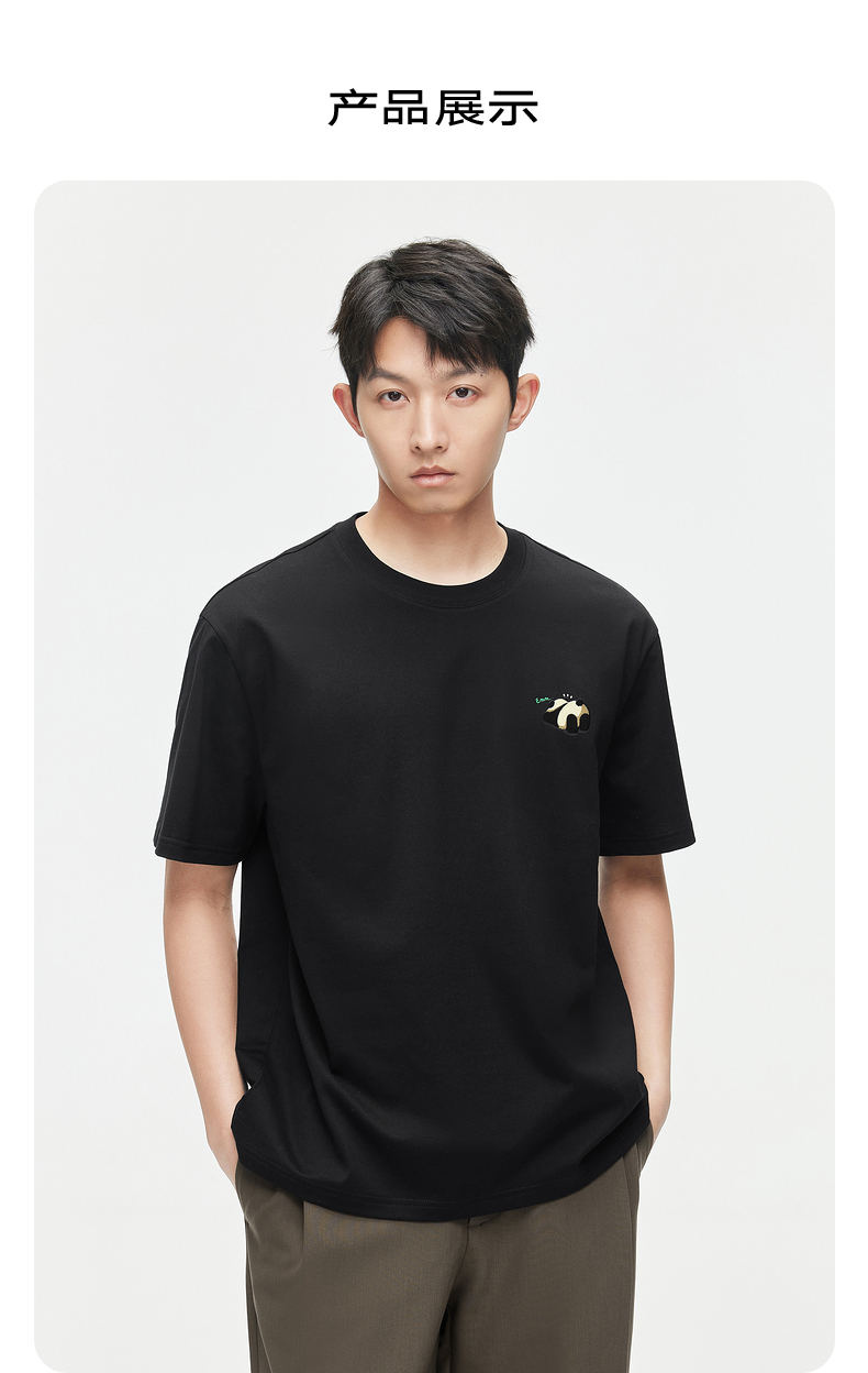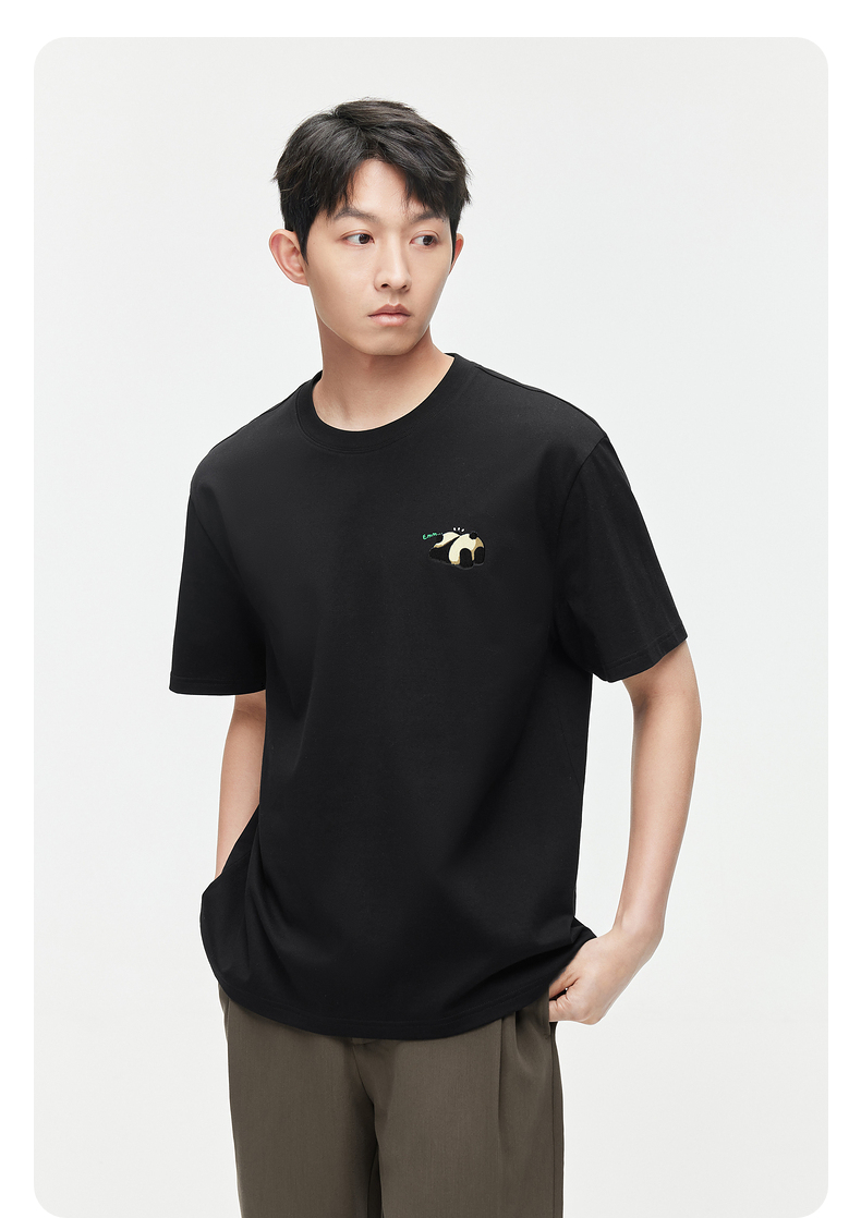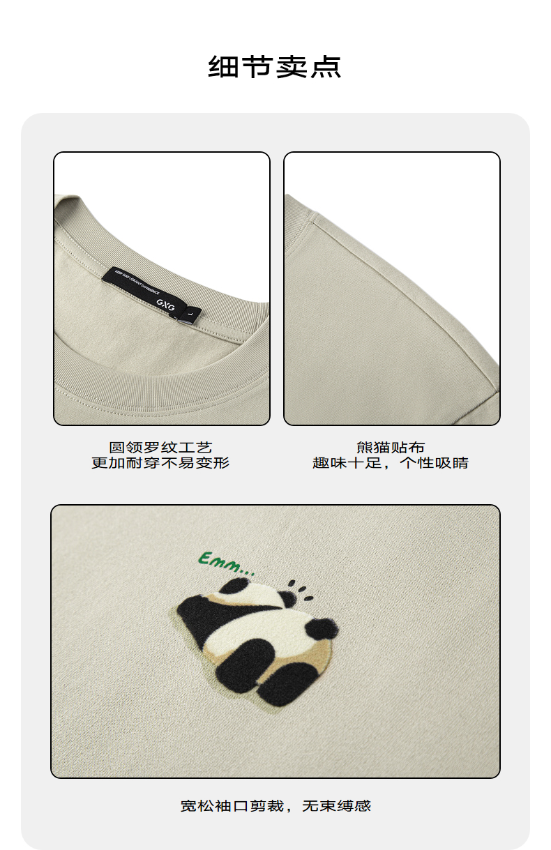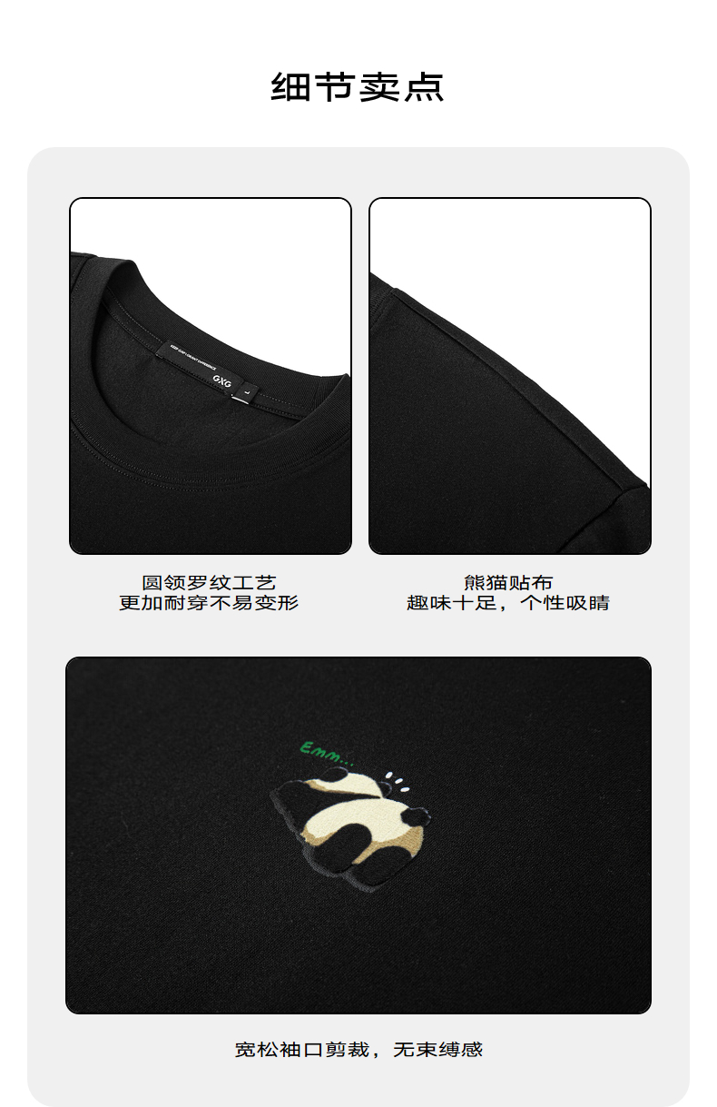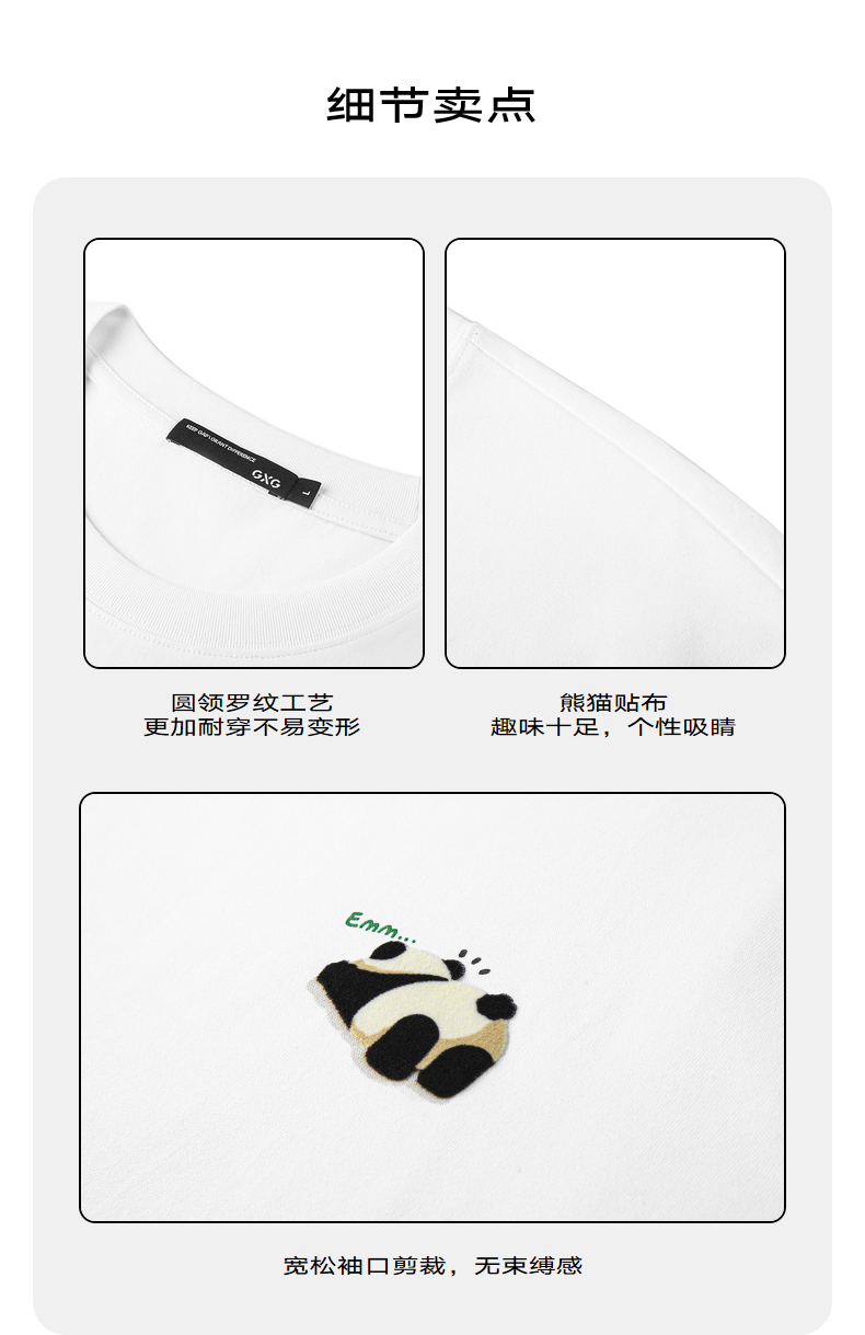 GXG夏季热卖简约纯棉熊猫贴布情侣t恤圆领短袖t恤男