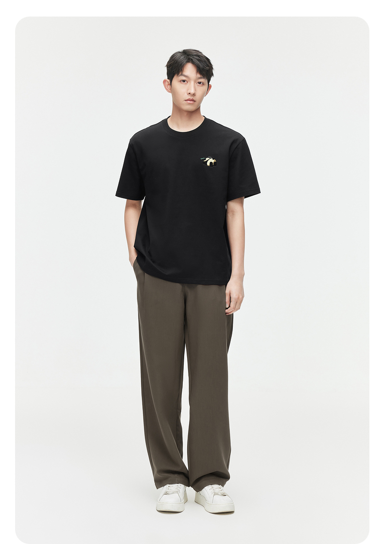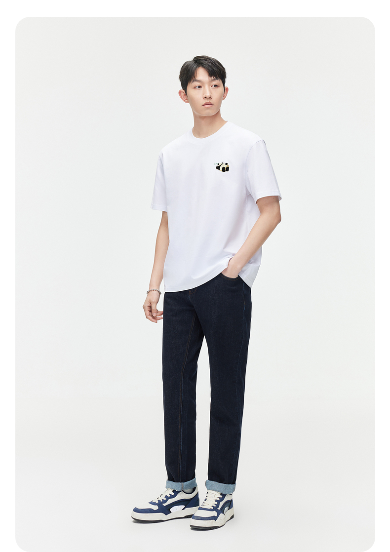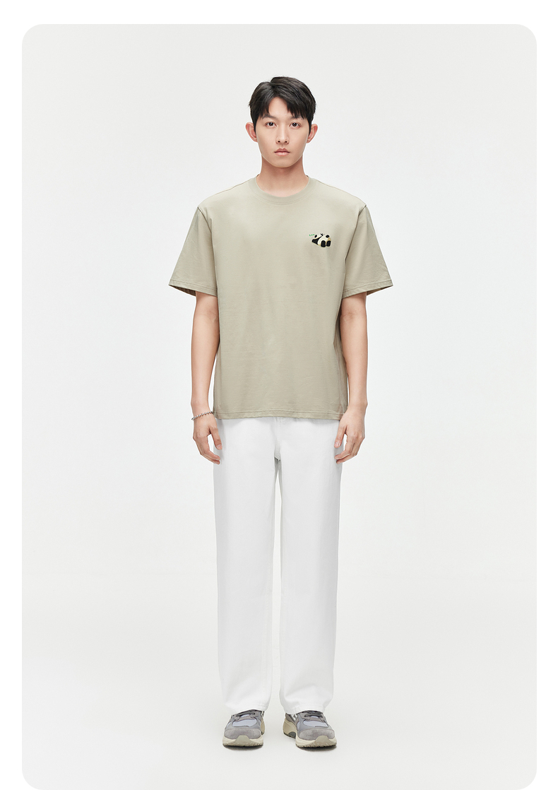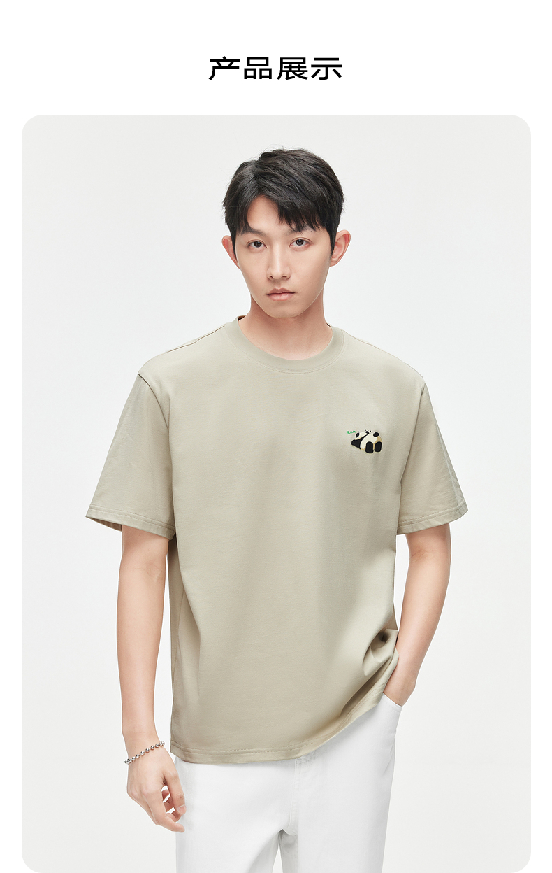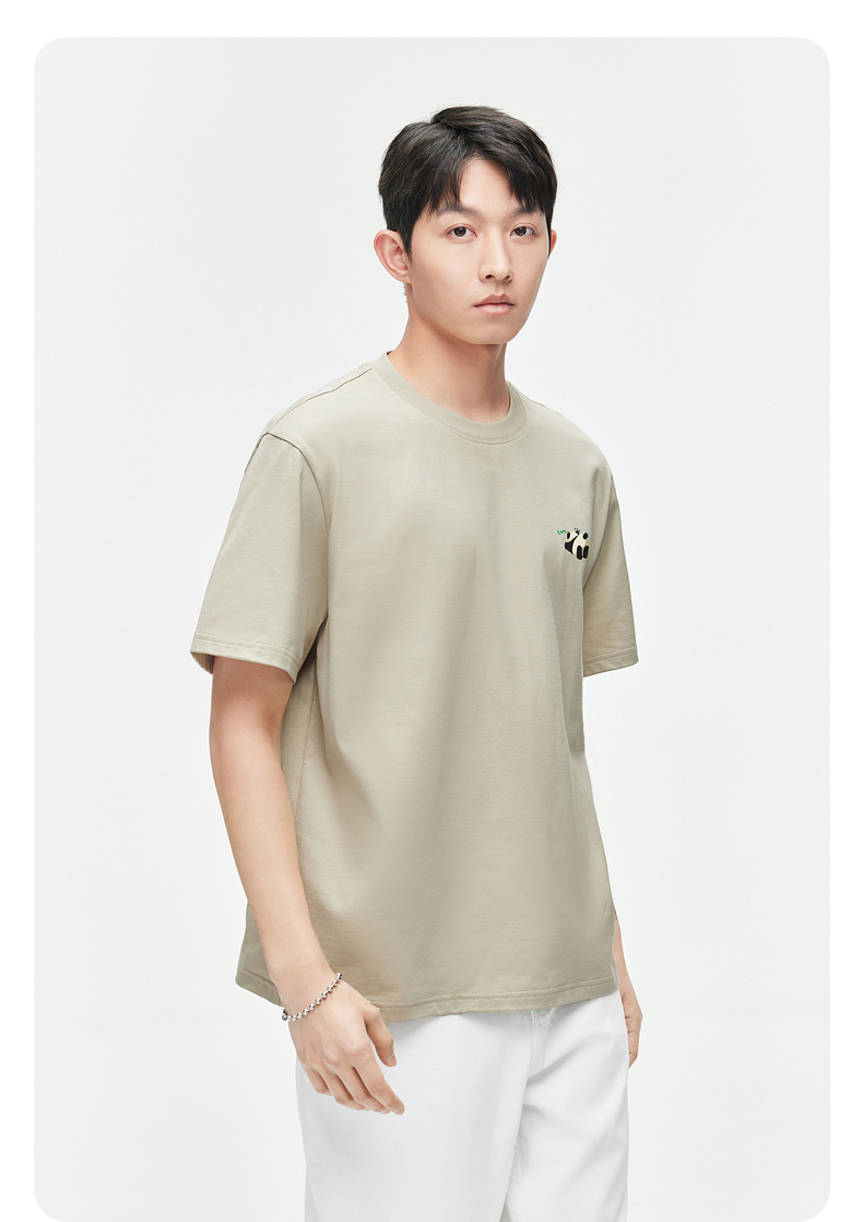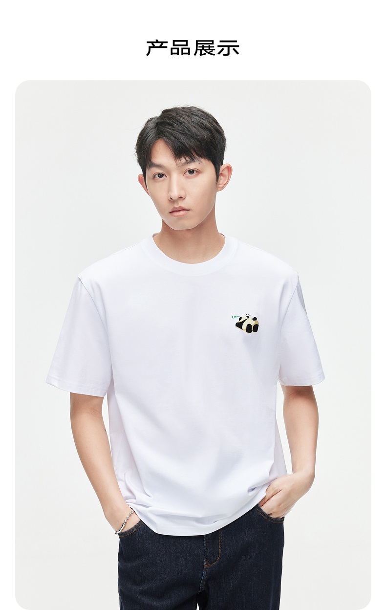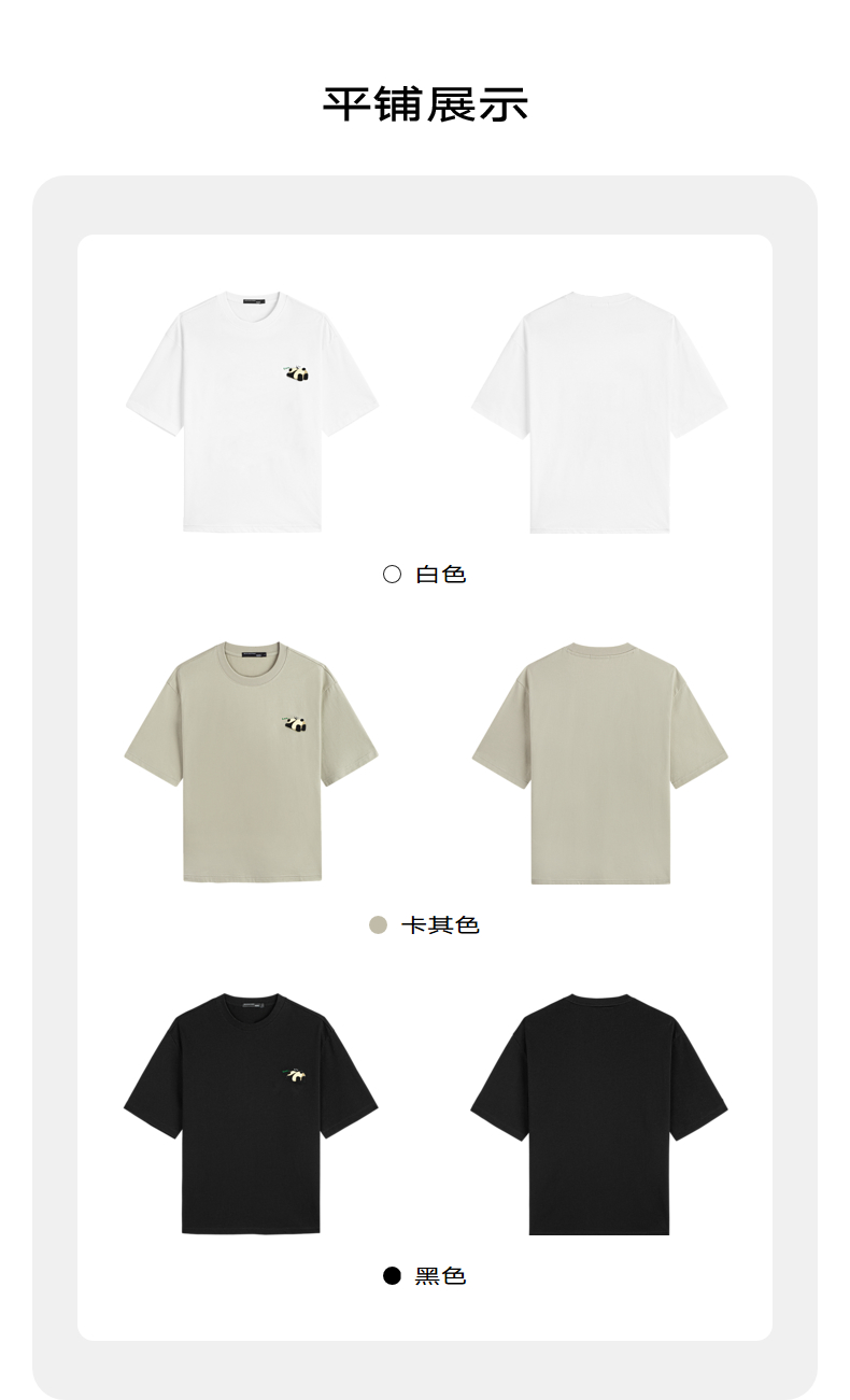 GXG夏季热卖简约纯棉熊猫贴布情侣t恤圆领短袖t恤男