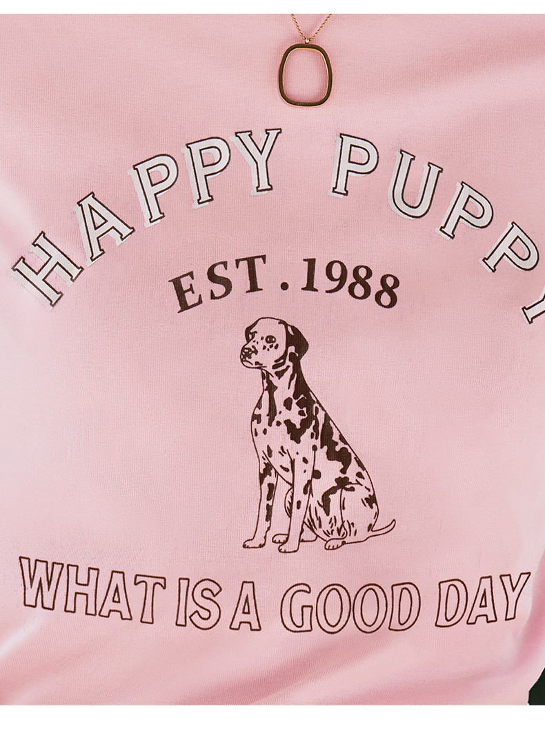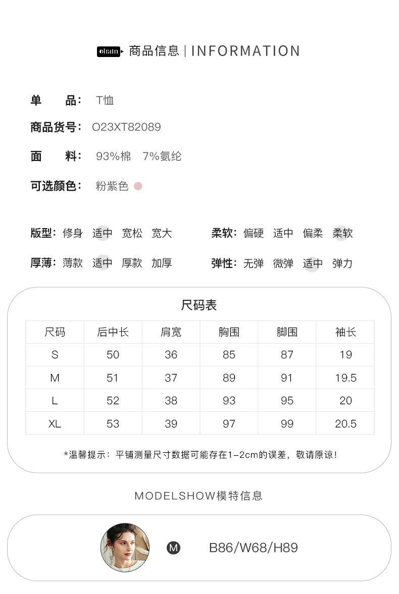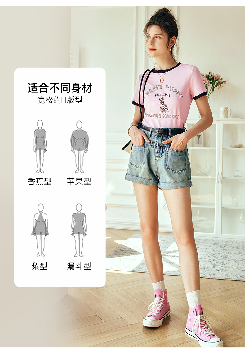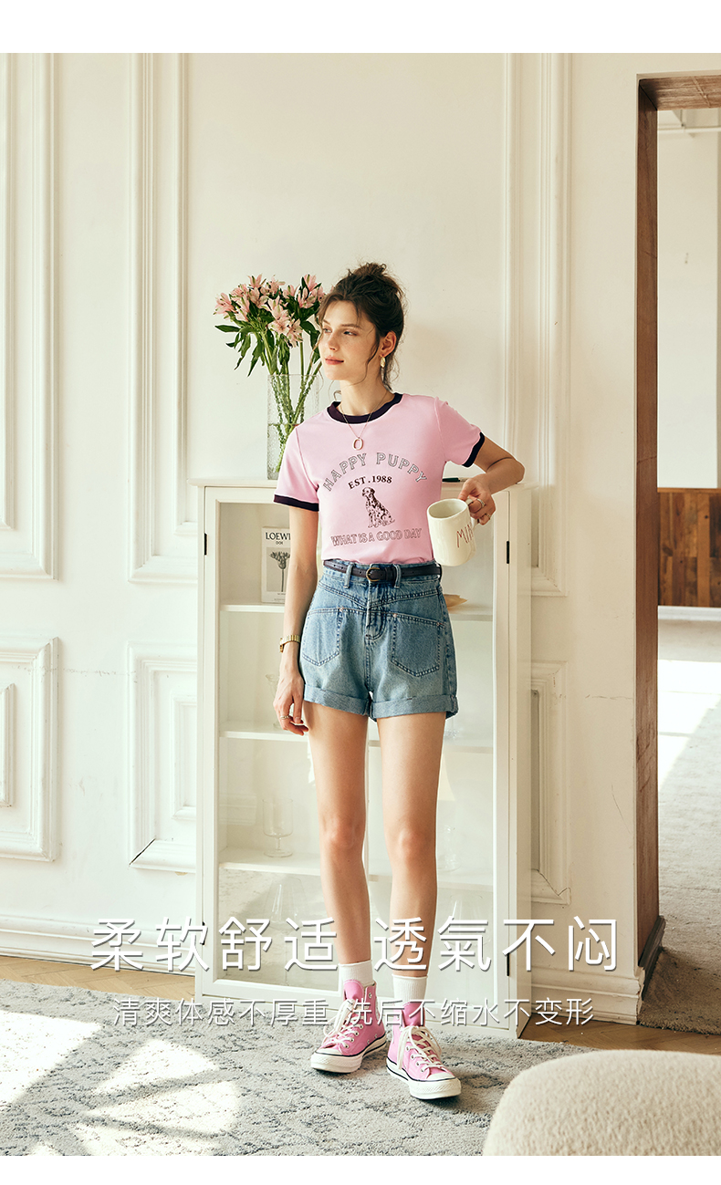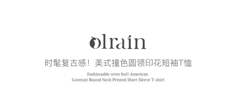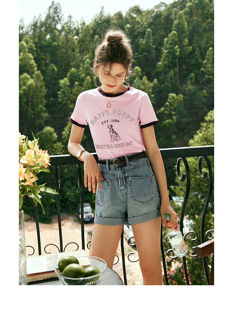 OLrain欧芮儿法式粉紫色短袖T恤女夏季2023新款修身撞色印花上衣