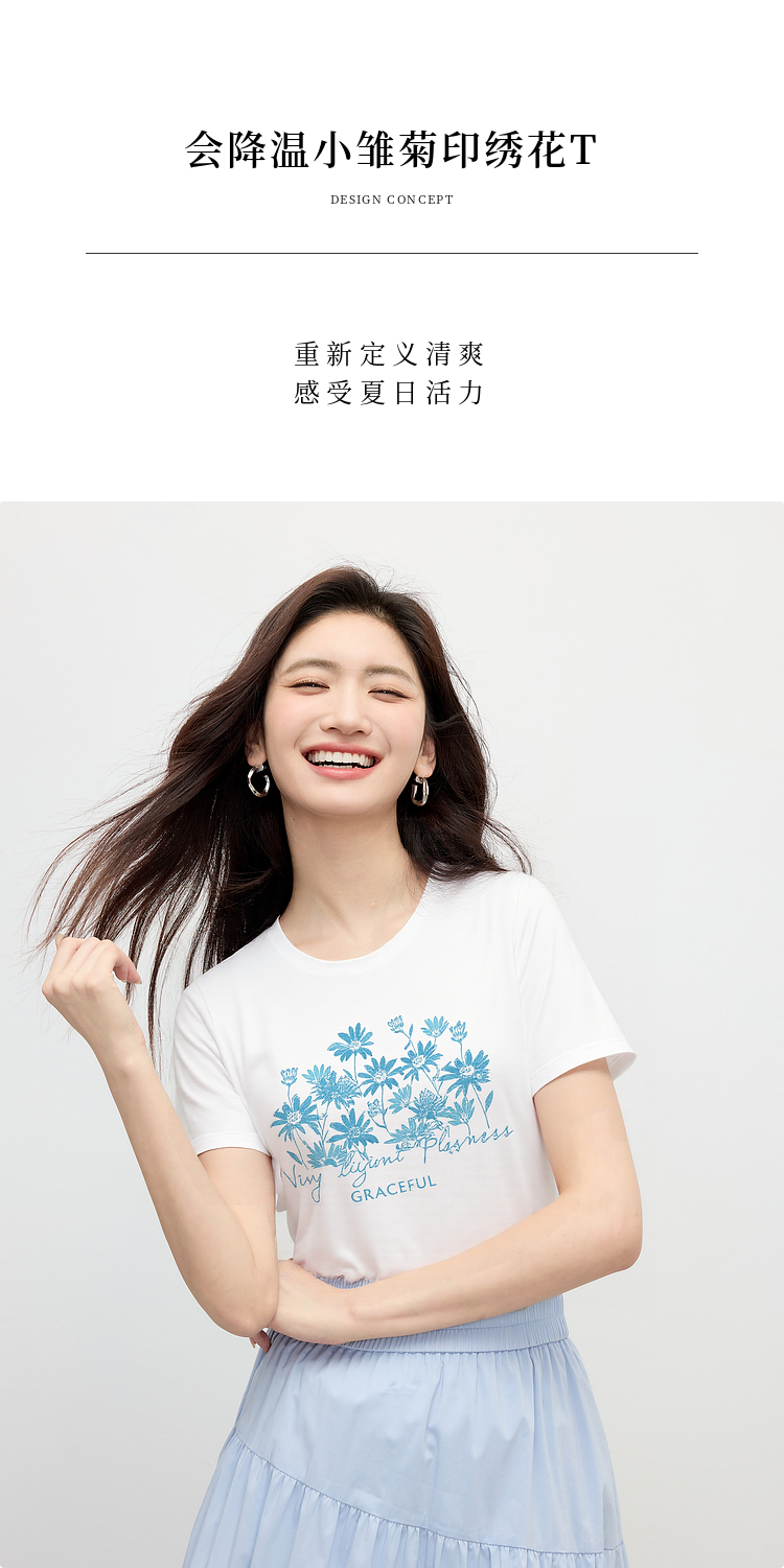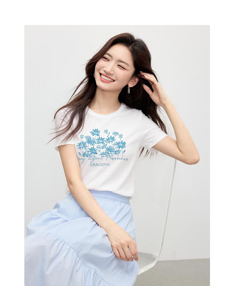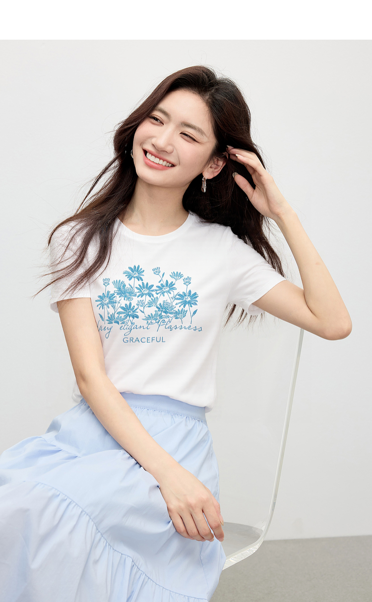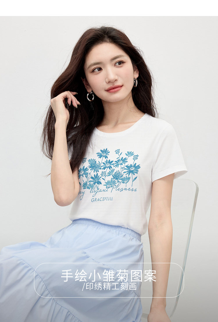 【周末秒杀】熙世界清新百搭休闲短袖T恤2025夏季新款活力减龄70%棉上衣女t