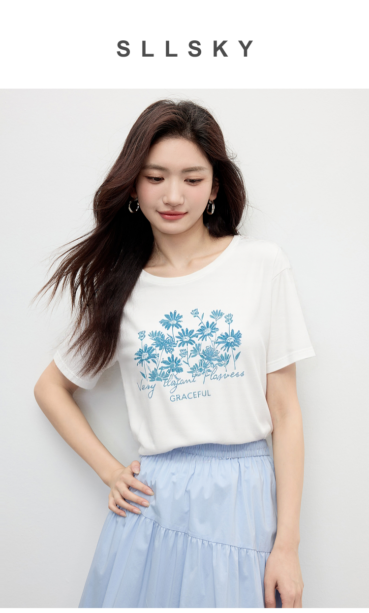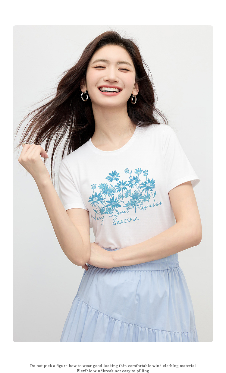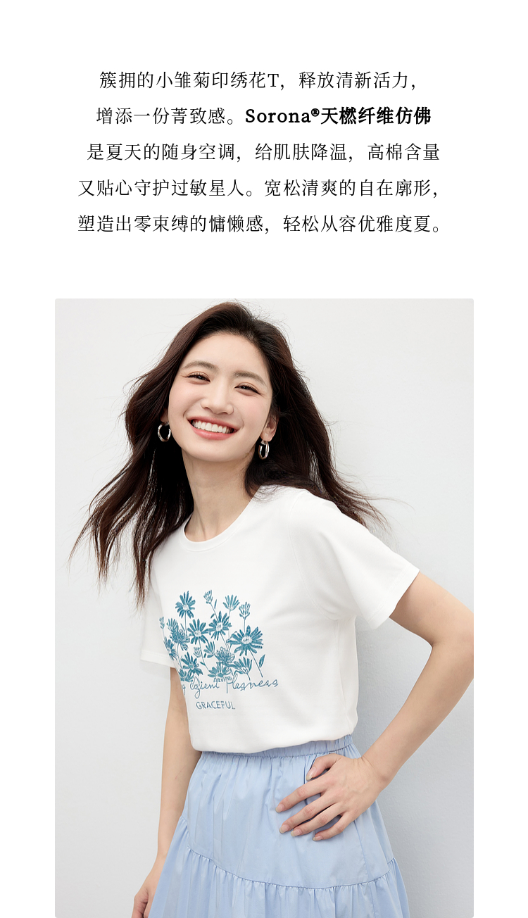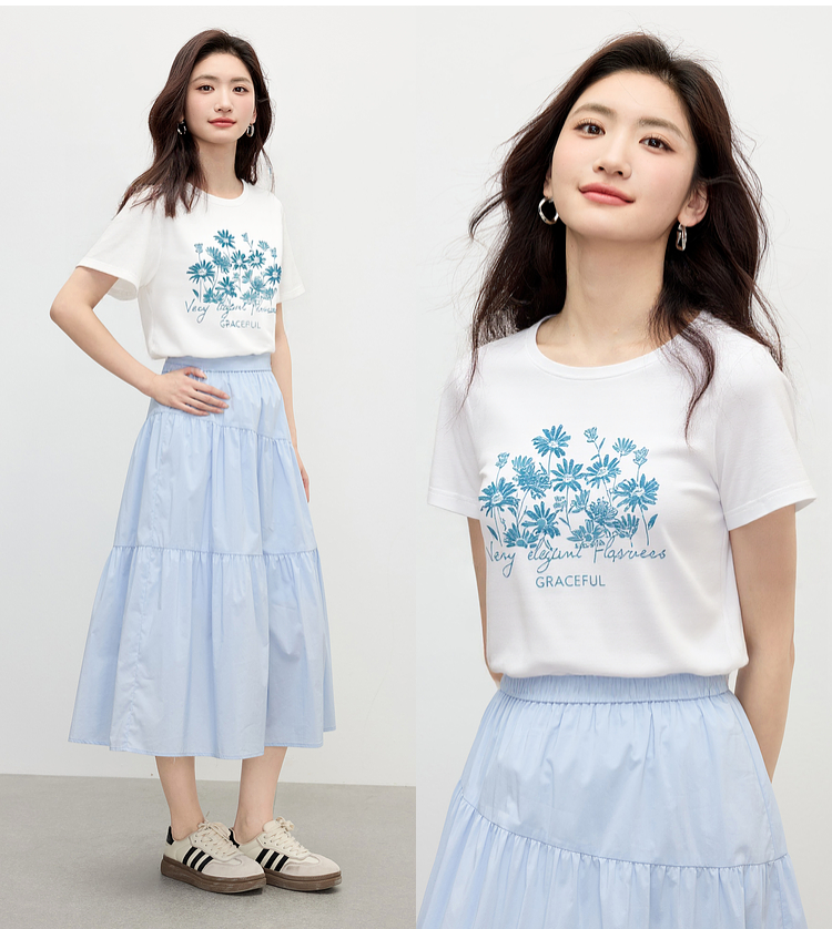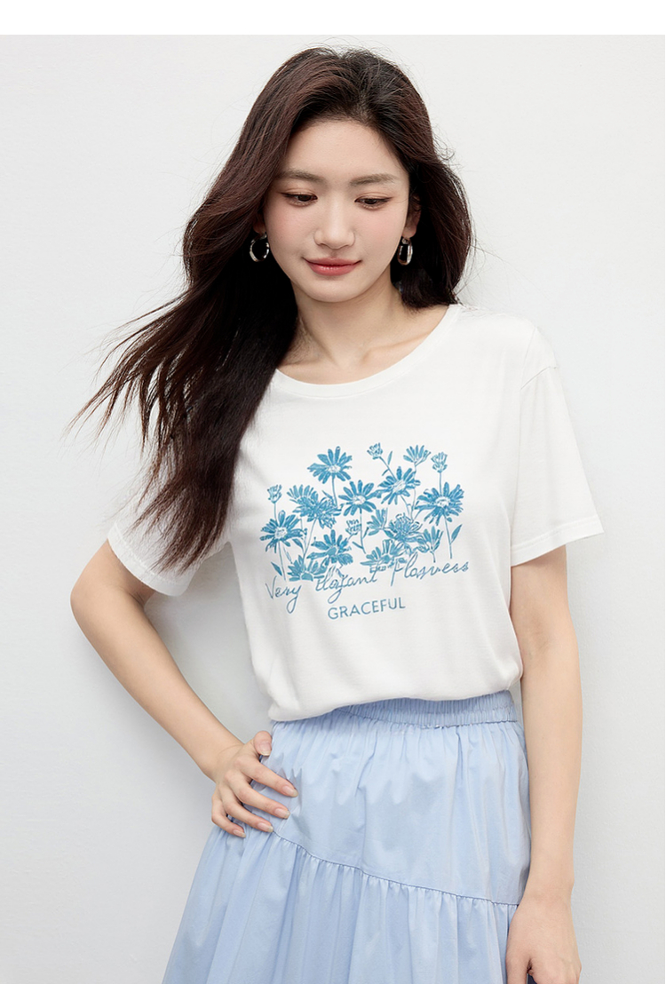 【周末秒杀】熙世界清新百搭休闲短袖T恤2025夏季新款活力减龄70%棉上衣女t