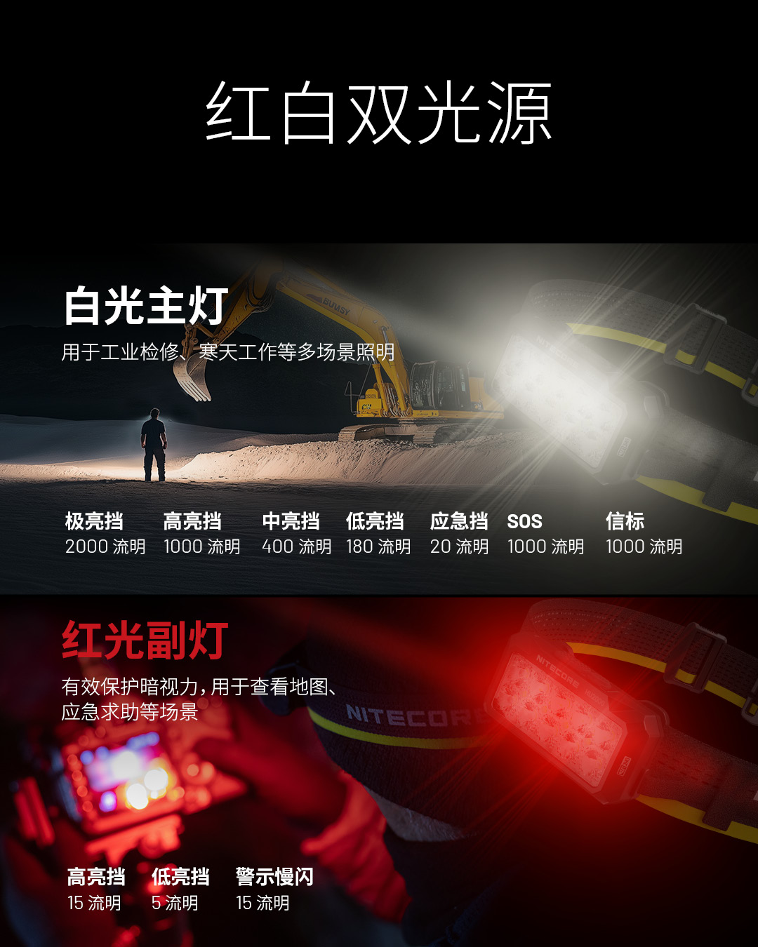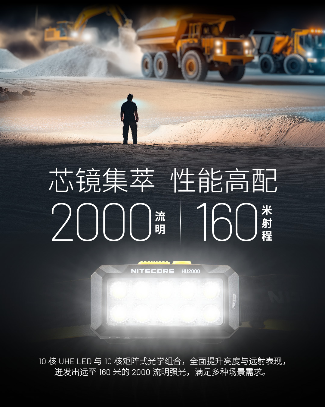 nitecore奈特科尔头灯HU2000长续航夜间工作头灯2024新款强光超亮