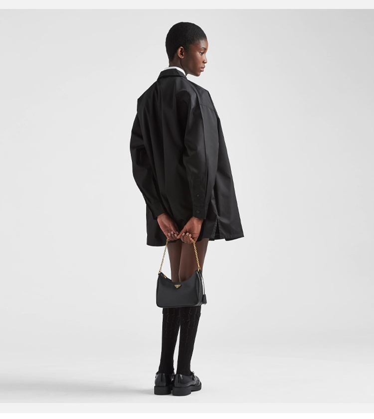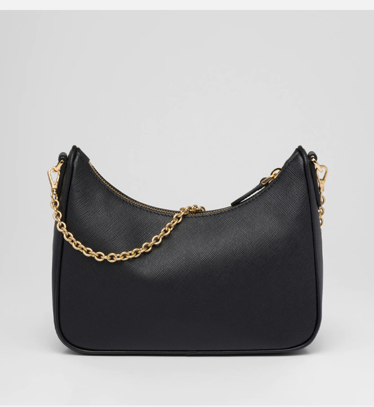 【二】PRADA 普拉达 女士 2005年再版 Saffiano 皮革珐琅金属三角形徽标三合一子母单肩包 黑色 1BH204 NZV F0632 V2M