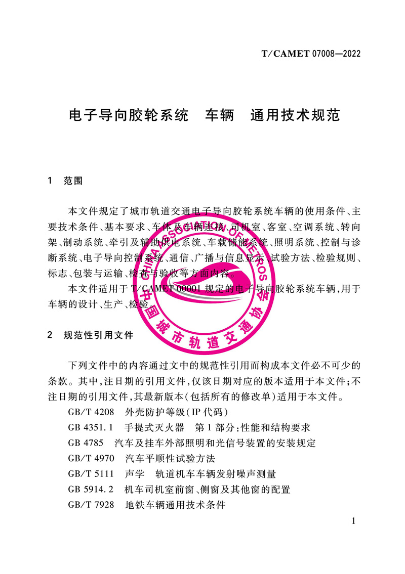 6557 电子导向胶轮系统 车辆 通用技术规范(T/CAMET 07008-2022)