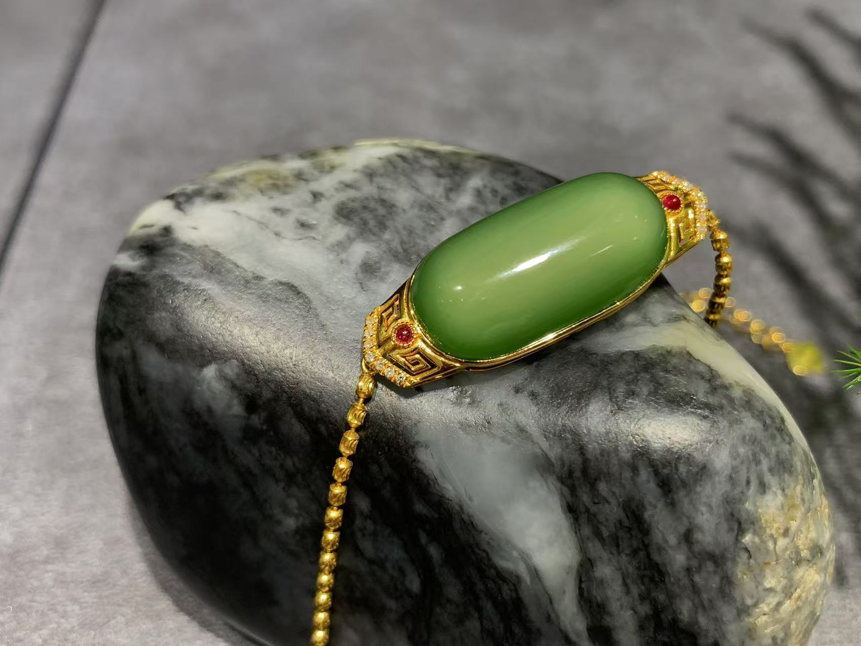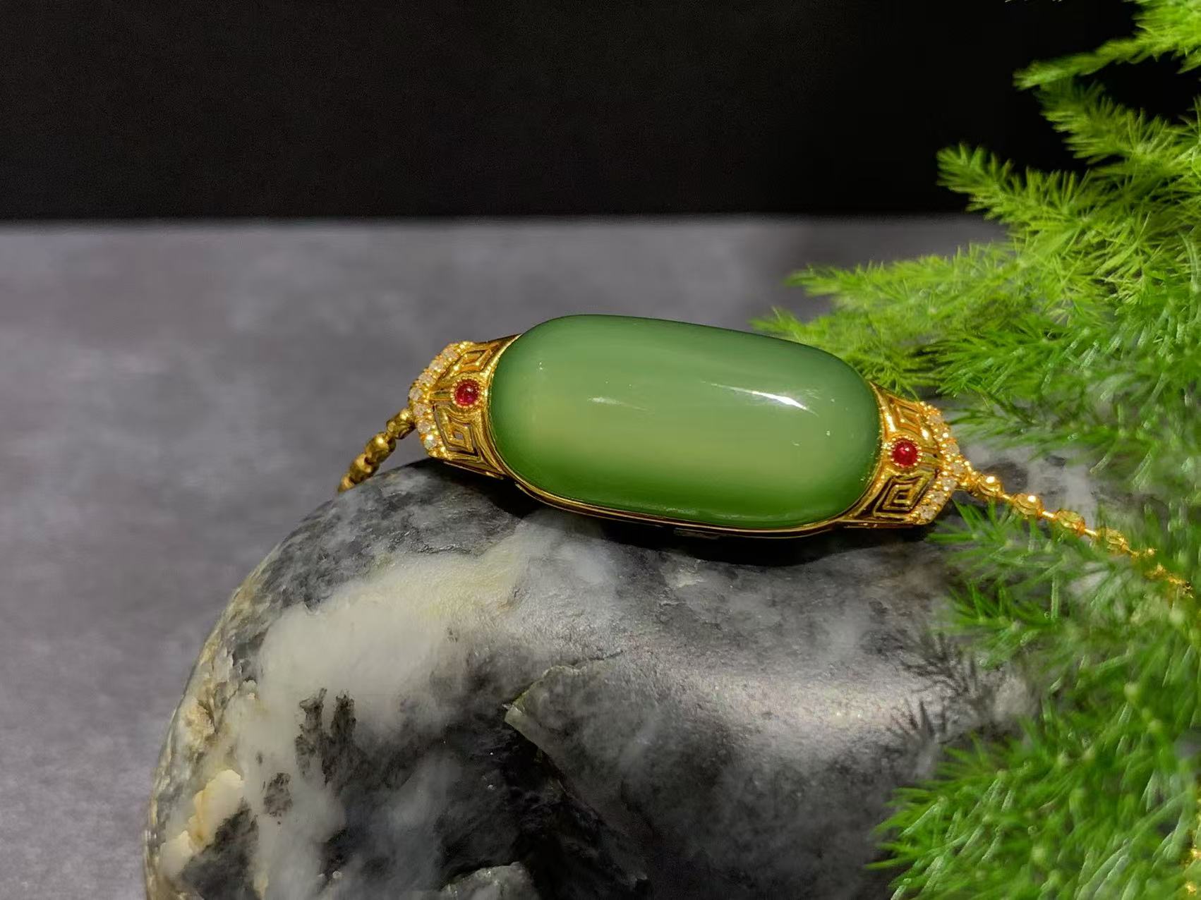 【御珠宫坊】新疆黑羊洞金镶碧玉吊坠
