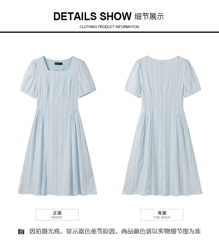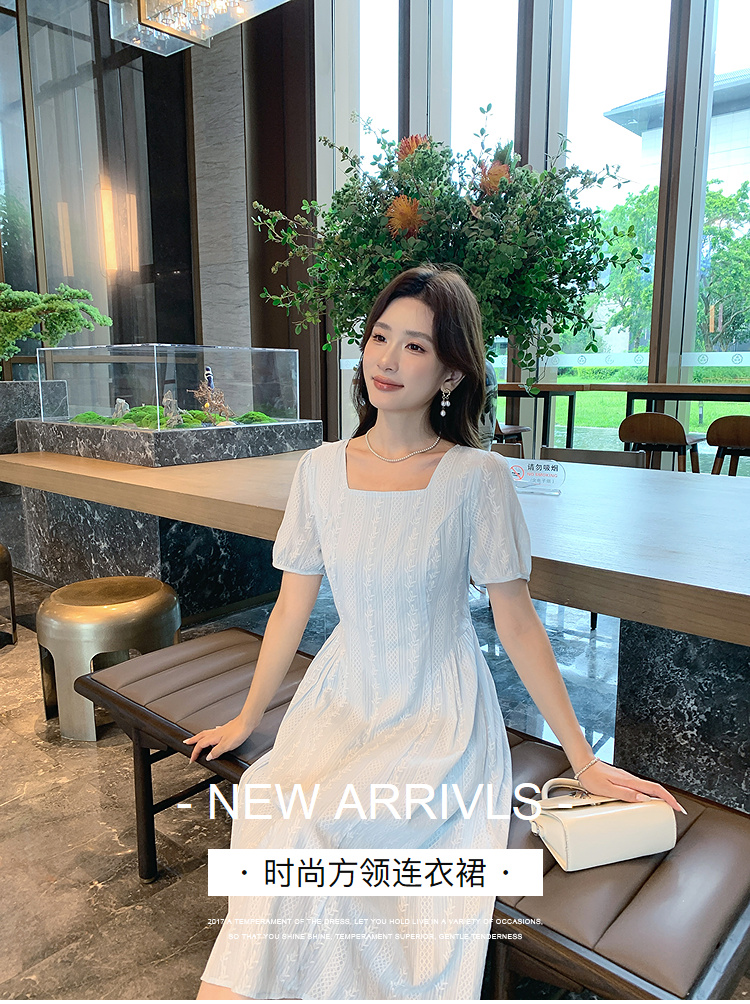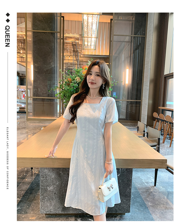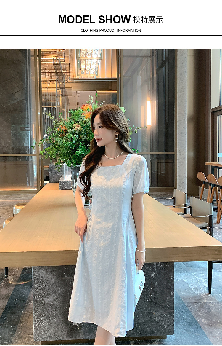 奢姿大码女装2026年夏装时尚褶皱方领连衣裙胖妹妹减龄纹理裙子9952894073