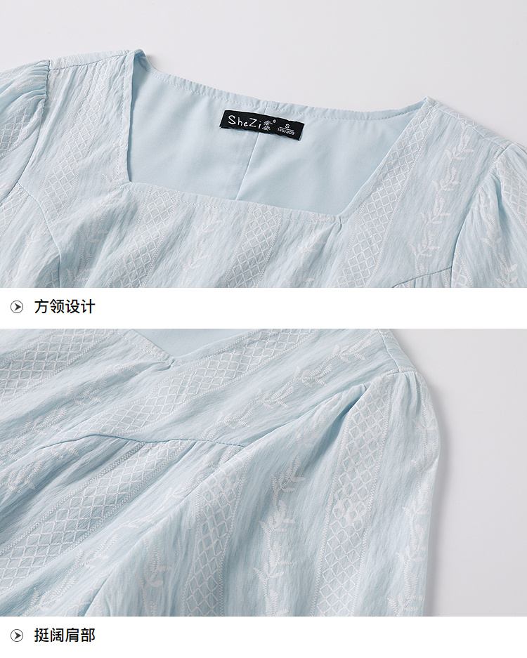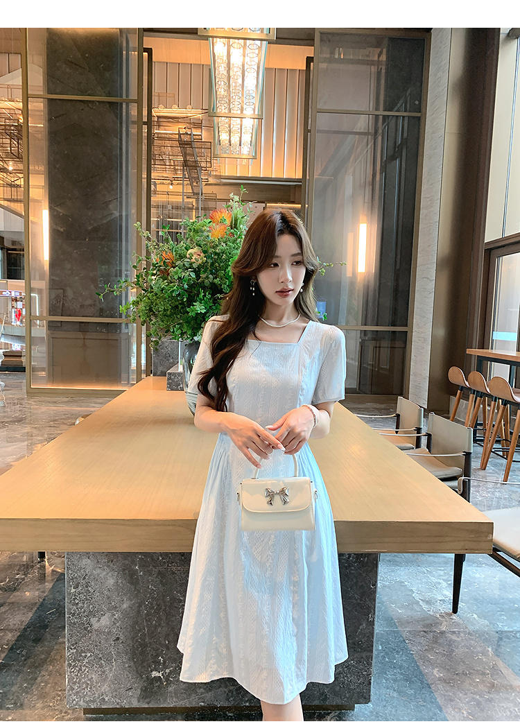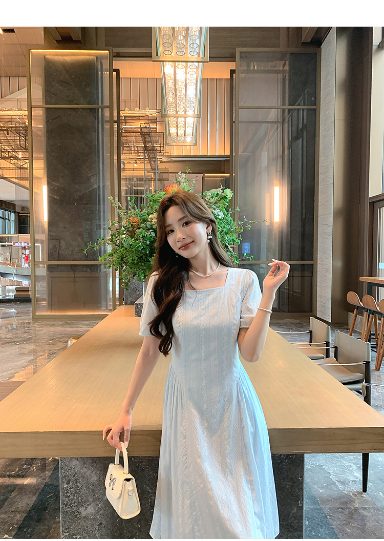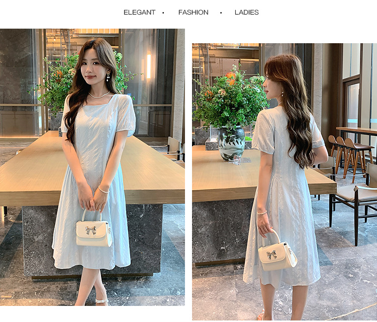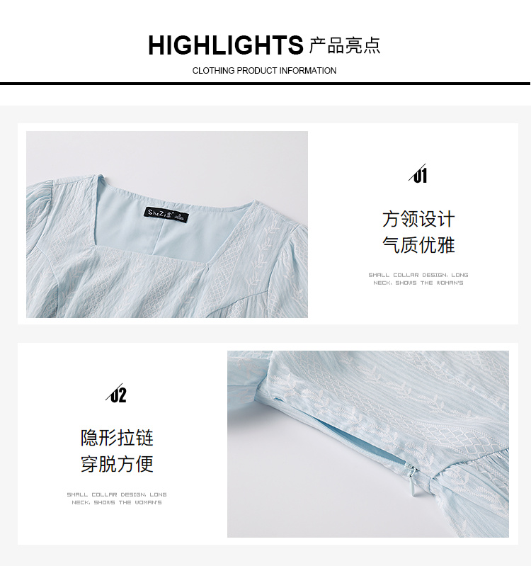 奢姿大码女装2026年夏装时尚褶皱方领连衣裙胖妹妹减龄纹理裙子9952894073