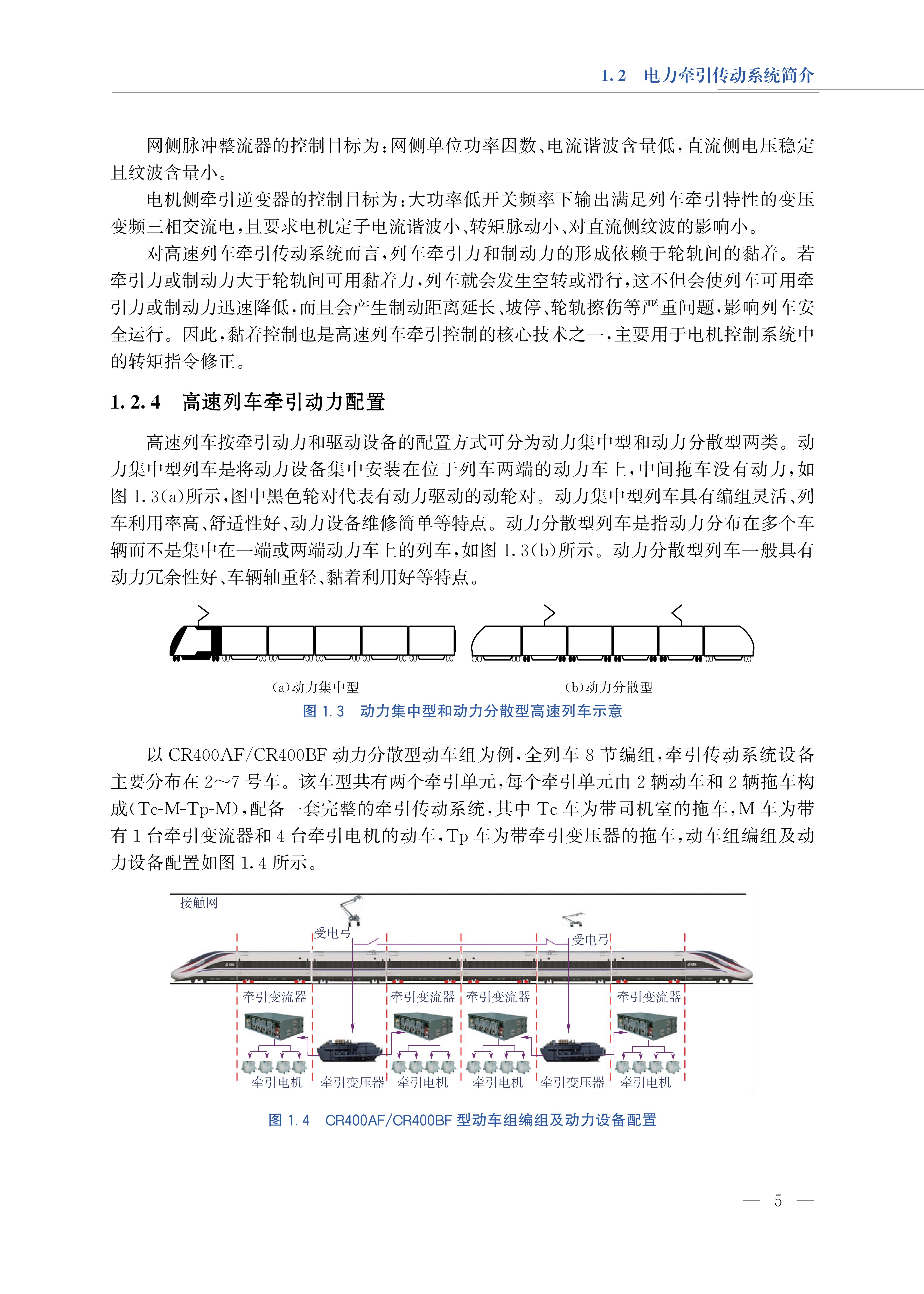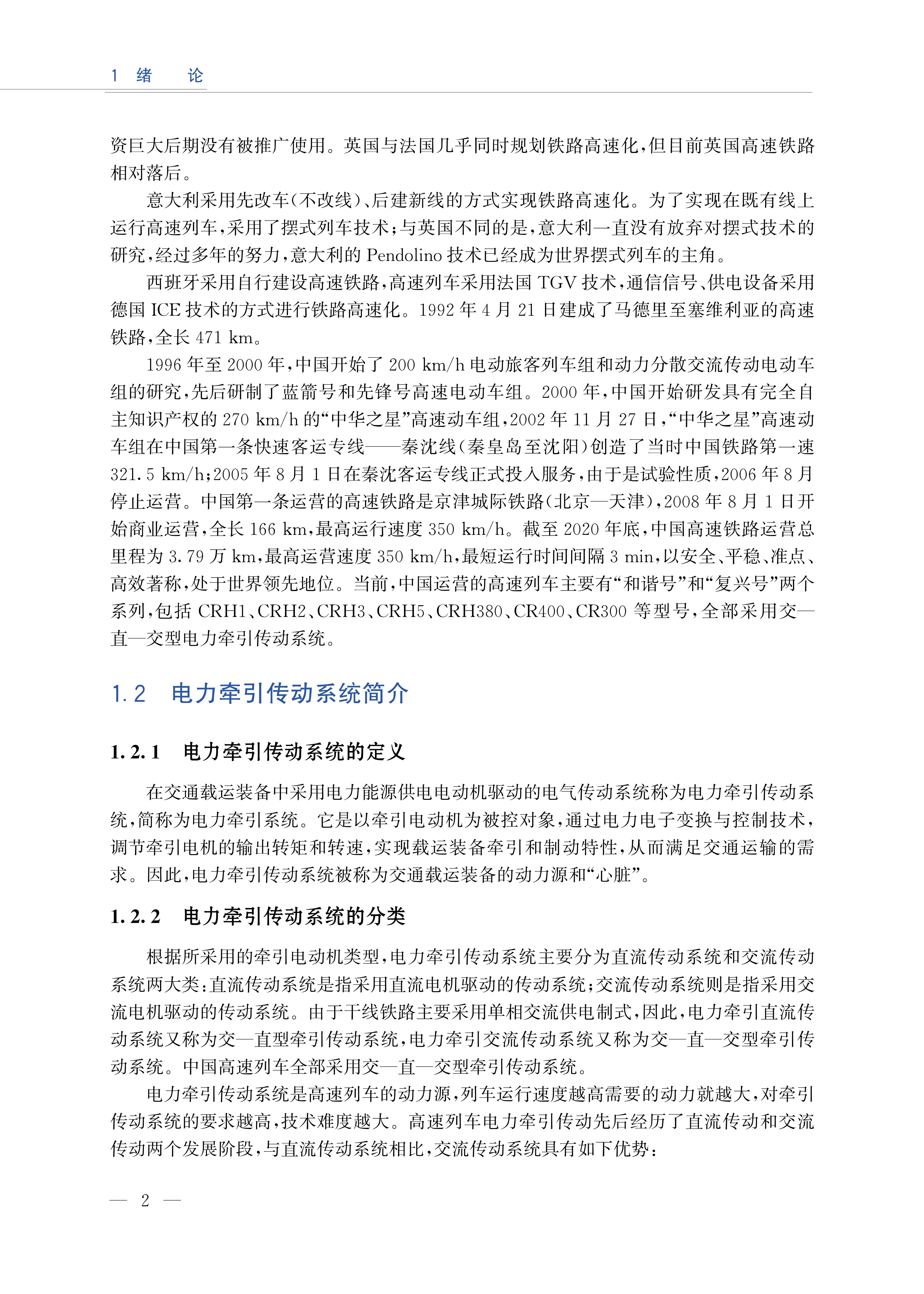 本书从高速列车发展历程讲起,对电力牵引传动系统进行介绍,同时重点讲解高速列车电力牵引传动系统的发展历程及高速列车电力牵引传动与控制关键技术,最后讲述了电力牵引传动系统的发展趋势。全书共分15章,第1章 绪论;第2章高速列车牵引传动系统设计基础;第3章 牵引变流器工作原理与调制技术;第4章 网侧脉冲整流器控制技术;第5章 网侧脉冲整流器谐波特性及其抑制技术;第6章 牵引电机变频调速基础;第7章 牵引电机磁场定向矢量控制技术;第8章 牵引电机直接转矩控制技术;第9章牵引逆变器-电机拍频现象及其抑制技术;第10章 轮轨黏着理论与控制技术;第11章 高速列车辅助供电系统;第12章电力牵引传动系统参数设计方法;第13章 电力牵引传动系统电磁暂态与电磁兼容;第14章 牵引传动系统运行模拟与综合分析平台;第15章 电力牵引传动系统试验技术。