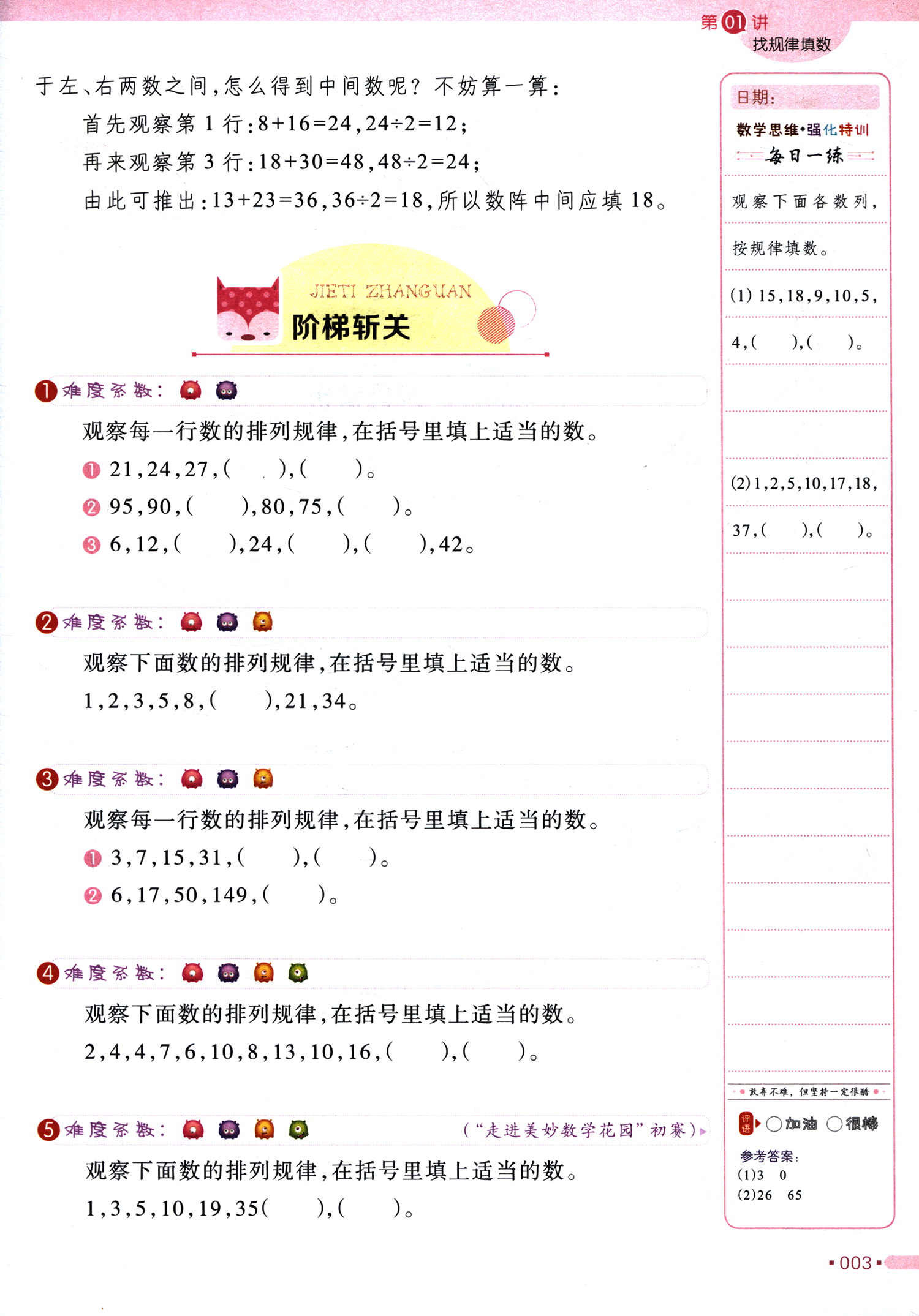 第01讲 找规律填数