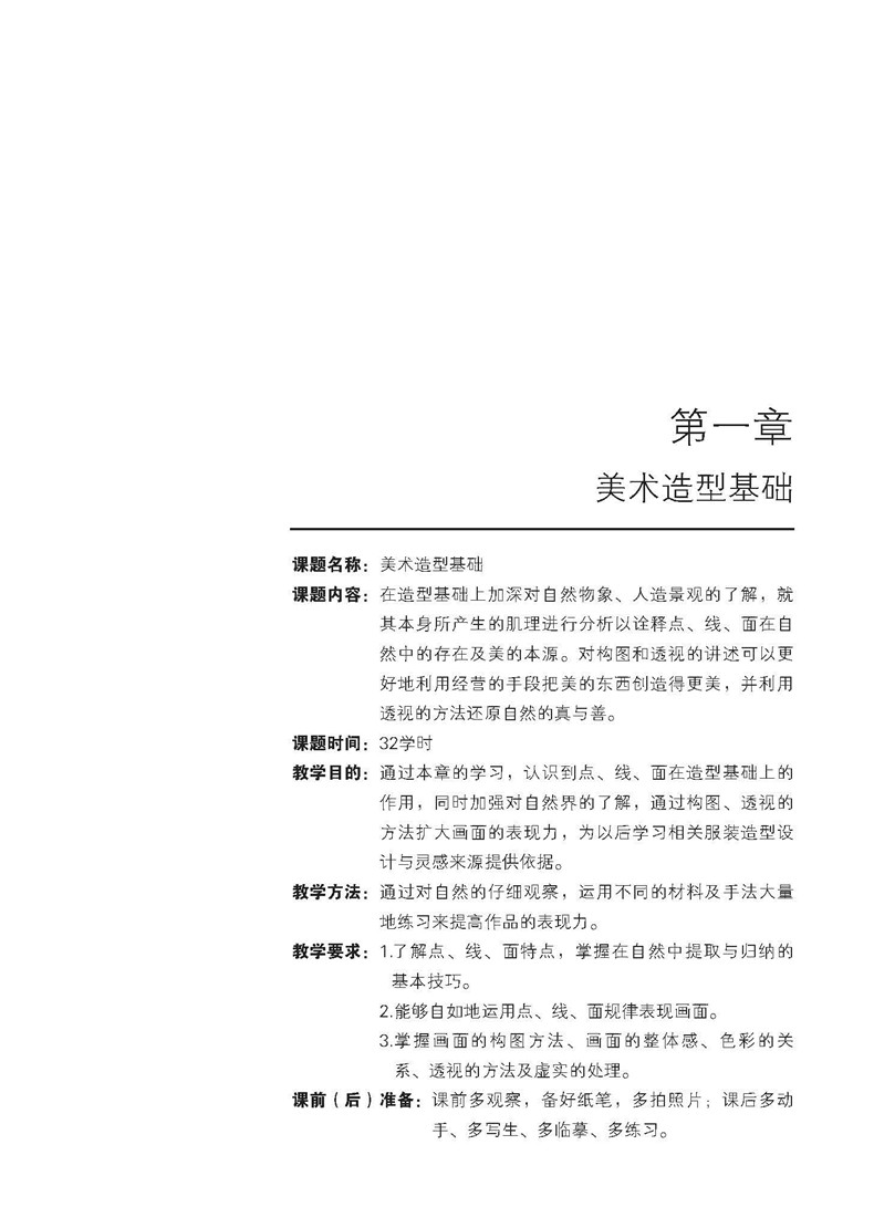本书主要包括美术造型基础、基础素描、人体结构、速写、服装画、服装色彩学、色彩写生、服装图案基础与手绘等八章教学内容。