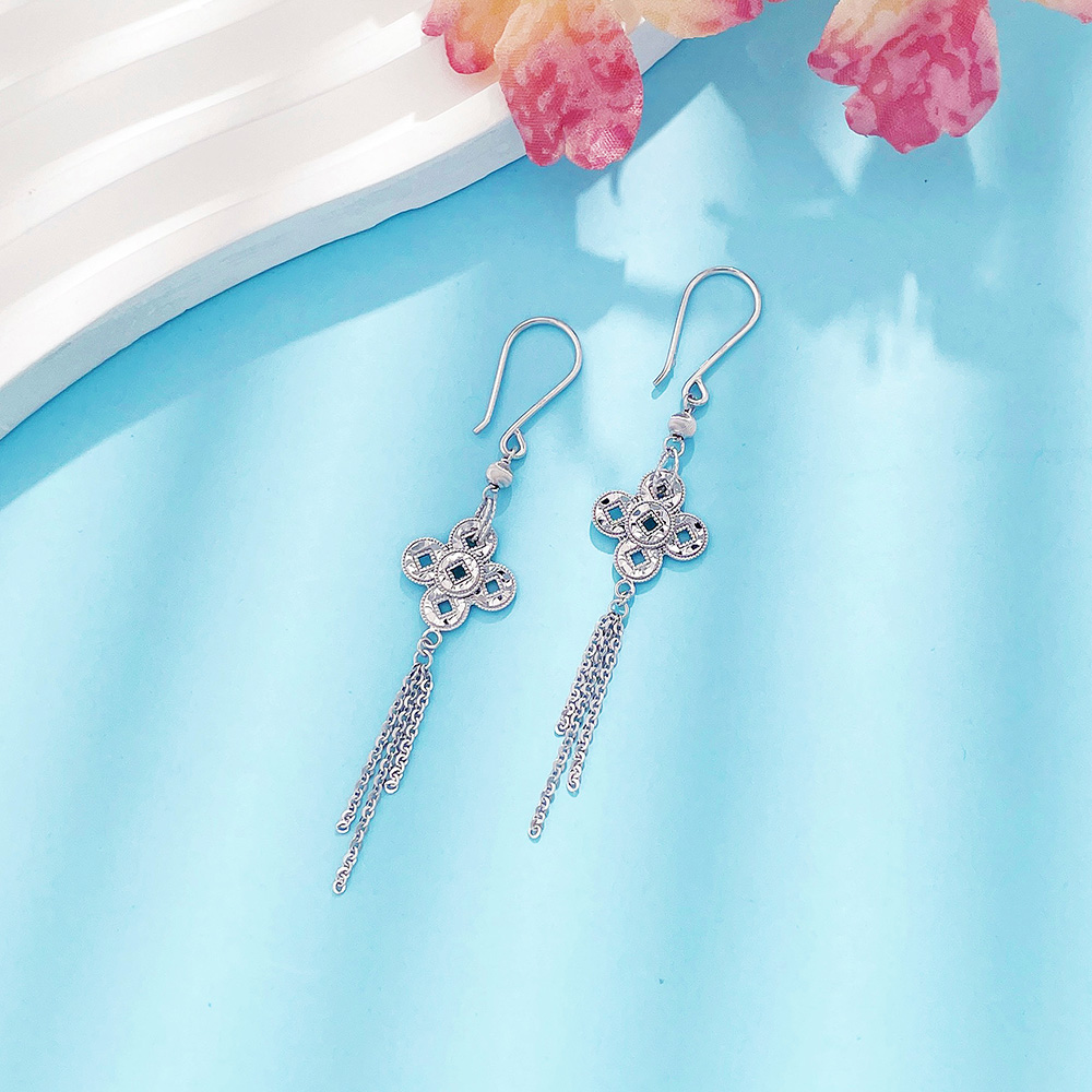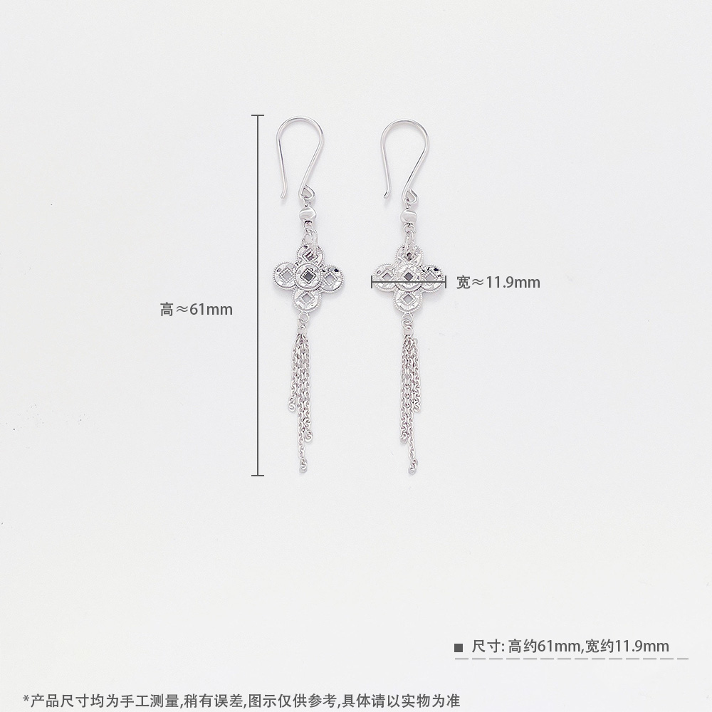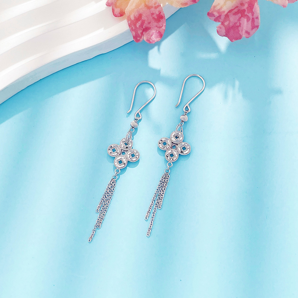 【限时8.8折】PT950 #招财纳福 【国际铂金协会 精品】铂金镂空财源滚滚金丝流苏铜钱造型金币耳饰耳吊耳钩(BES00269)预售产品下单后不退款不退货不换货不补差价)
