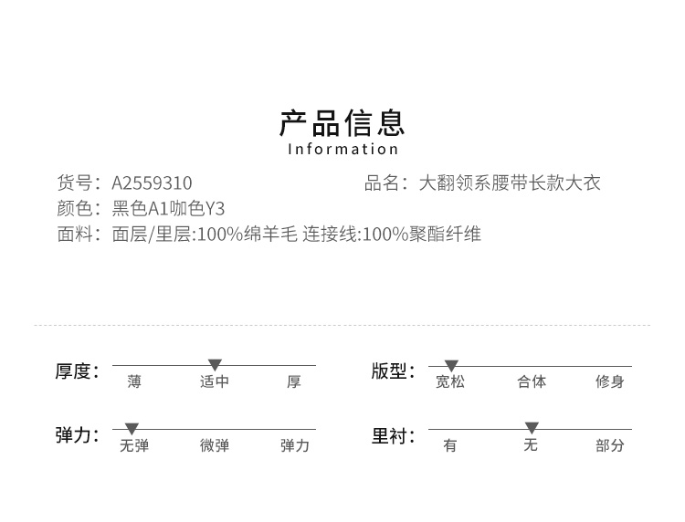 VIVIAN LIU薇薇安刘A2559310秋女装新款大翻领系腰带长款大衣