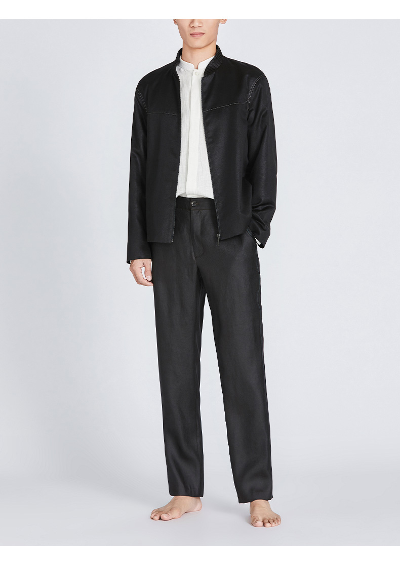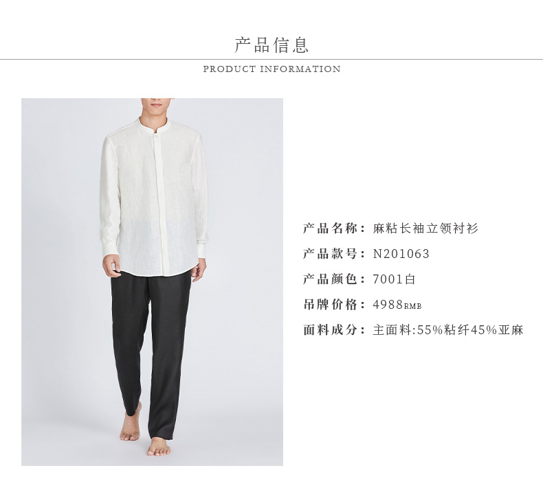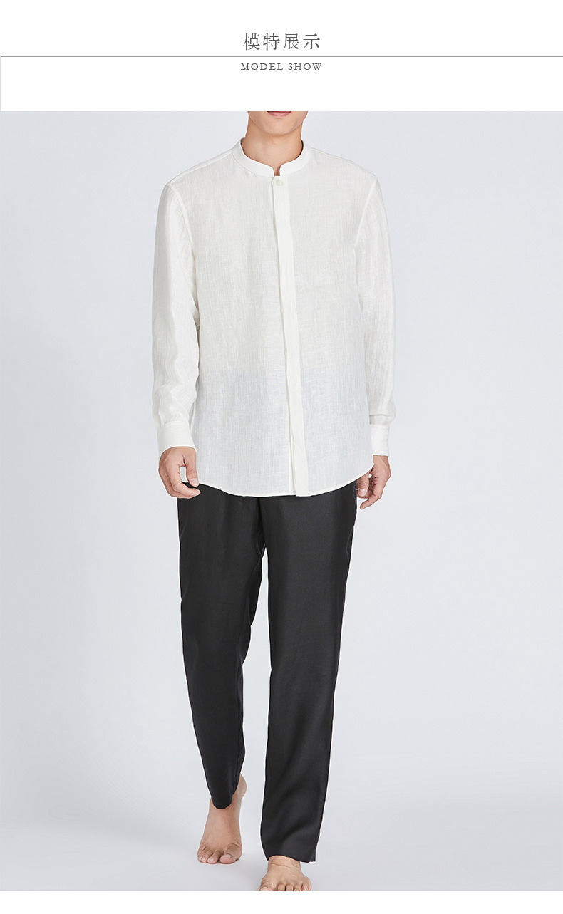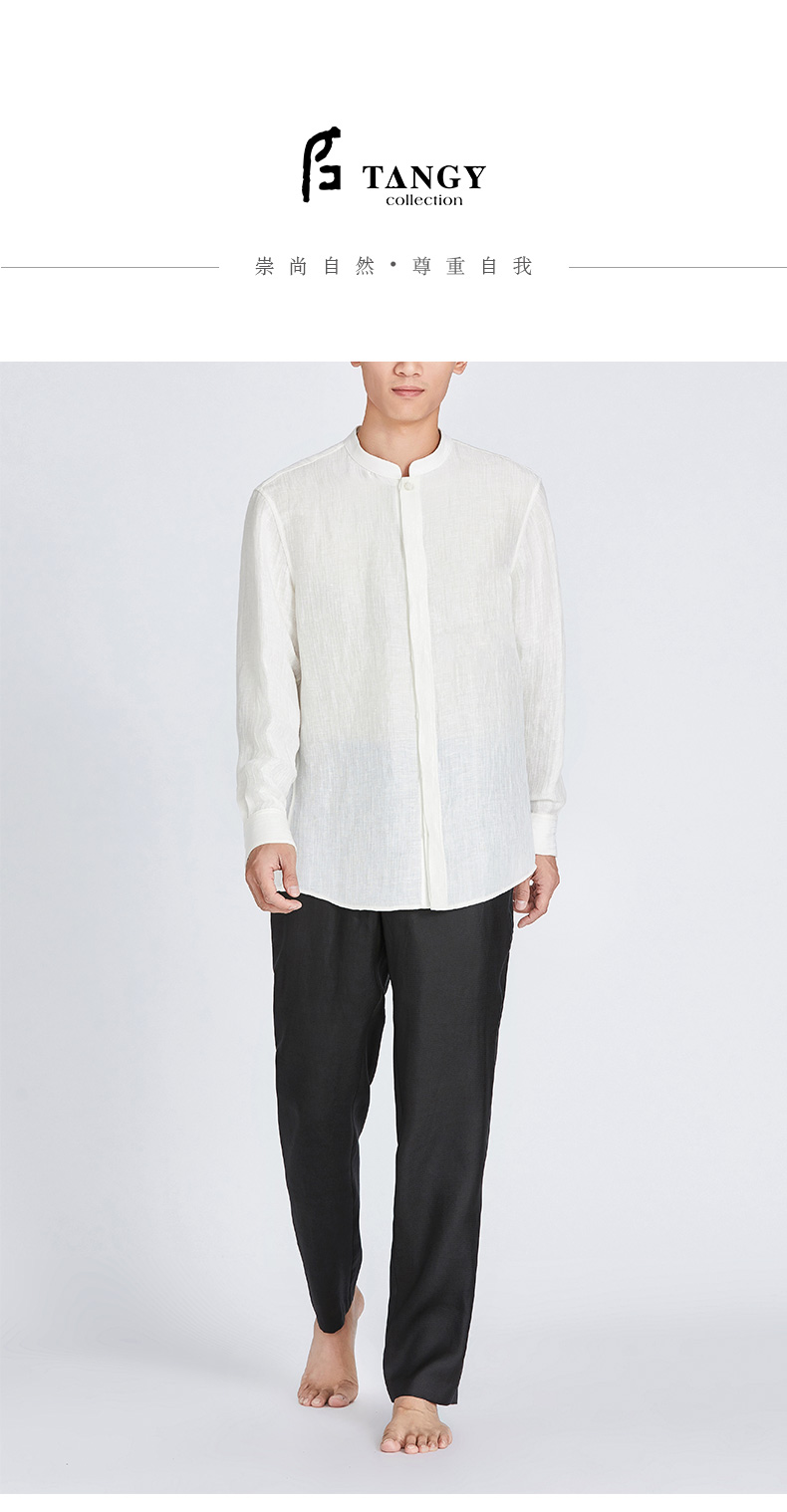 TANGY Collection/天意精品春夏款简约中式男士麻粘长袖立领衬衫