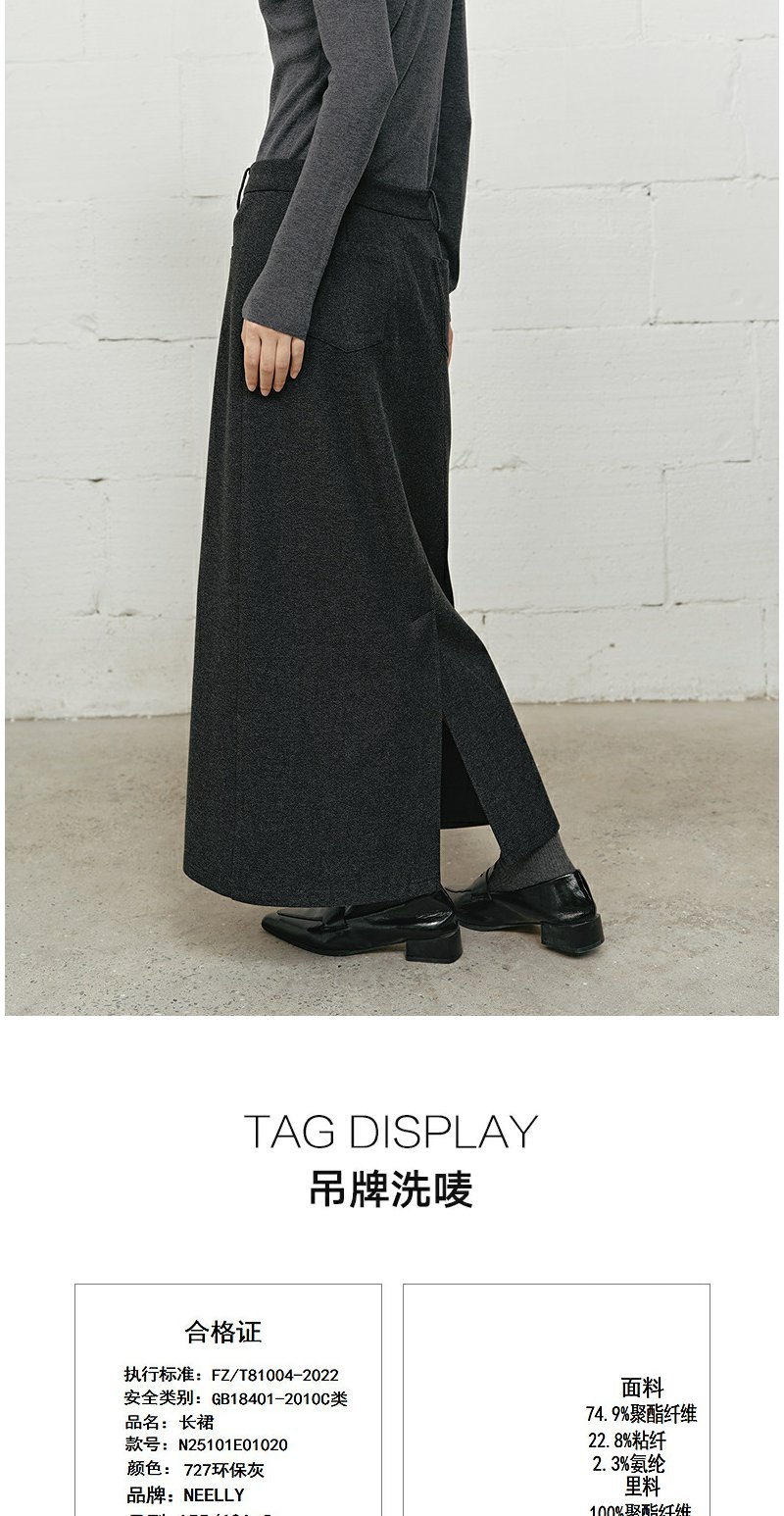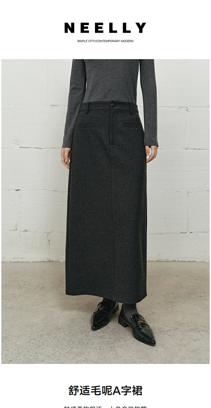 NEELLY纳俪商场同款冬季新款高腰遮胯半身裙女垂感百搭亲肤中长款N25101E01020