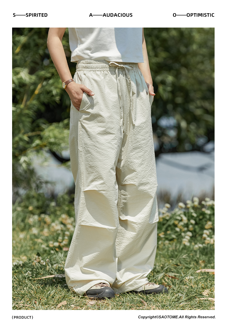 早乙女惠子saotome/STMCK240231/宽松打褶运动伞兵裤