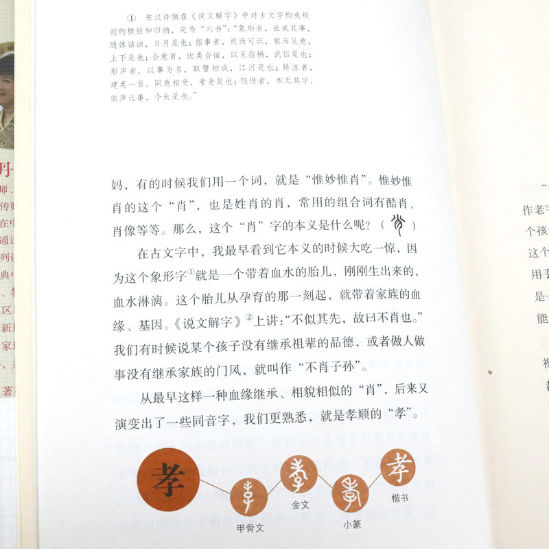 汉字是握在中华民族掌心里的纹路,循着它的指事象形,可以触摸到所有观念由来的秘密;汉字也是笔尖下流淌的乡土,横平竖直皆风骨,撇捺飞扬即血脉。写中国字,懂中国心。汉字,一笔一画,都流淌着我们的血脉,蕴藏着我们的乡土情怀。于丹教授通过对汉字的解读,带领我们感受汉字的典雅,唤醒心中的诗意,并领悟其中深厚的哲学思想和人生道理。