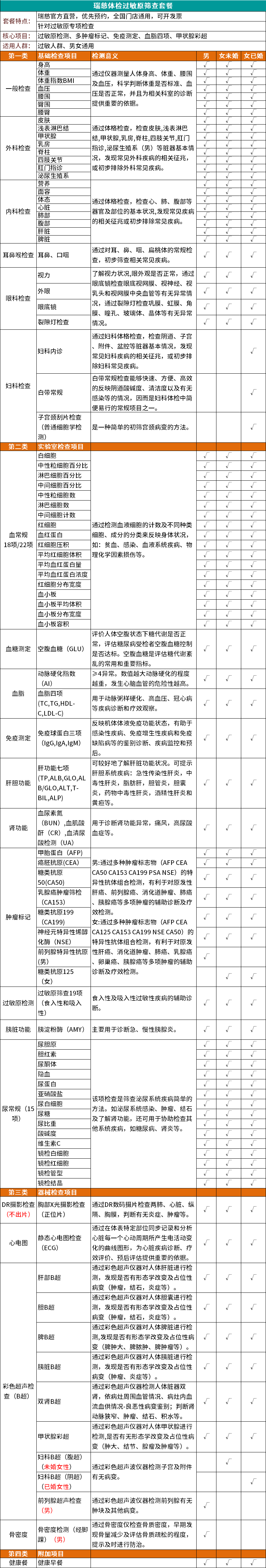 瑞慈体检过敏原筛查套餐