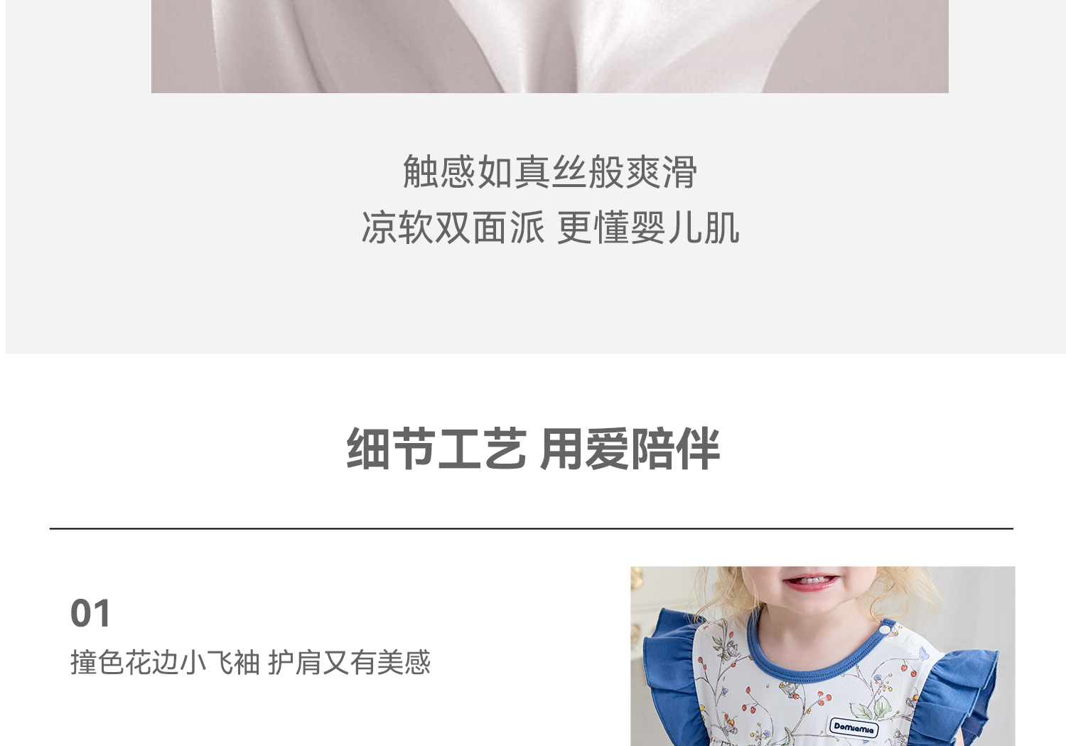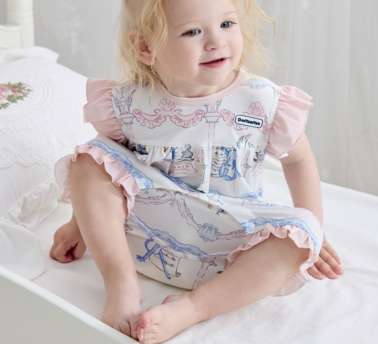 Domiamia女宝宝短袖连体衣夏季衣服女童睡衣婴儿夏天薄款背心爬服