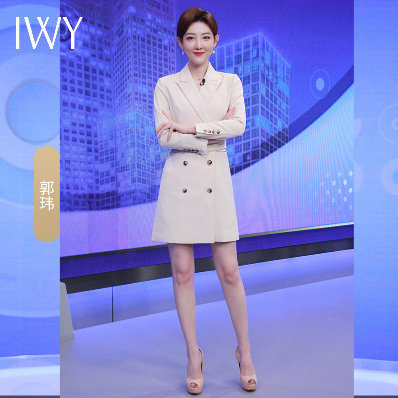 IWY/主持人同款淡黄色香槟色长袖通勤时尚连衣裙Q902+GB