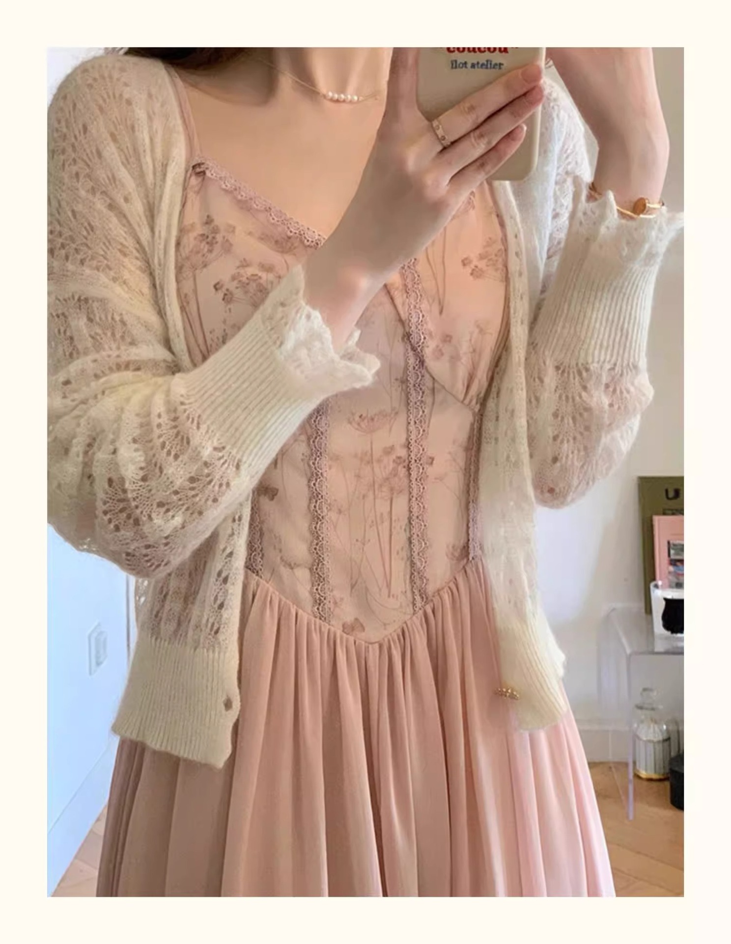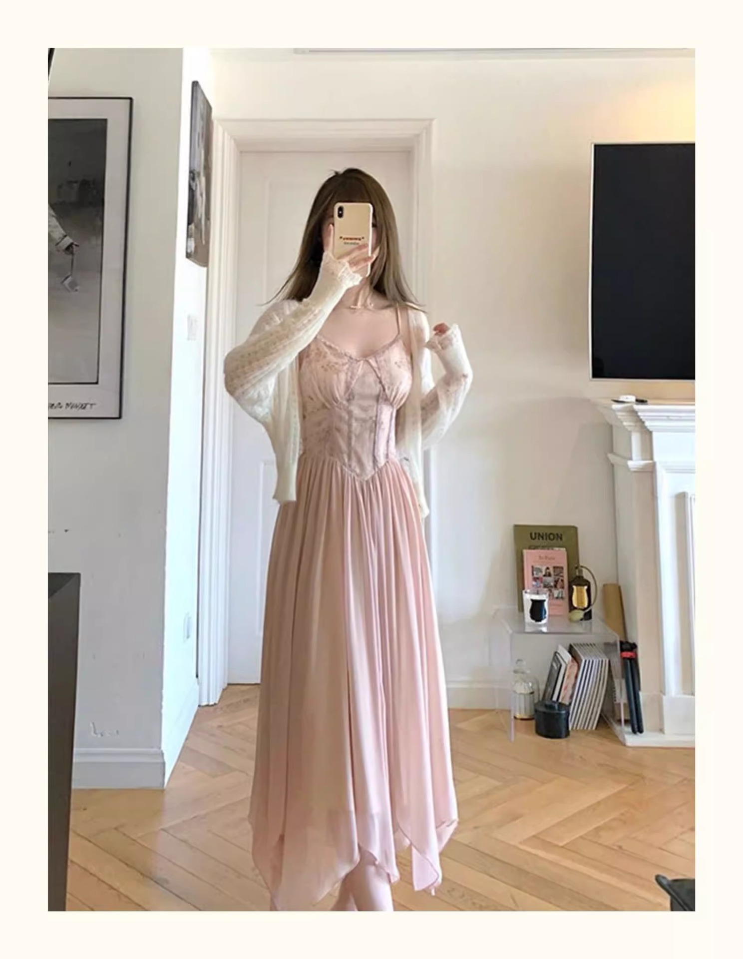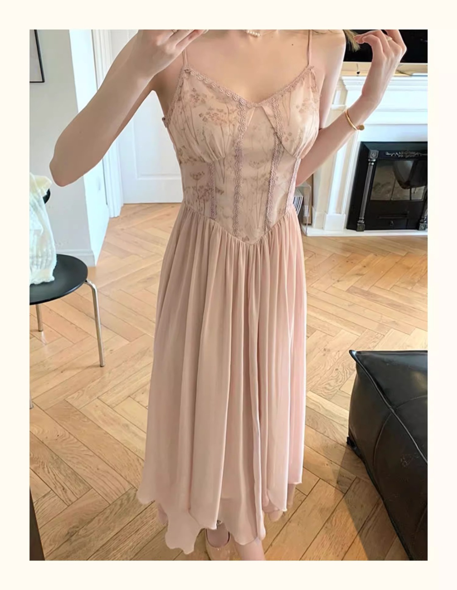 春夏款【法式甜美设计感 拼接吊带连衣裙女】收腰显瘦 纯欲风 仙女中长裙潮