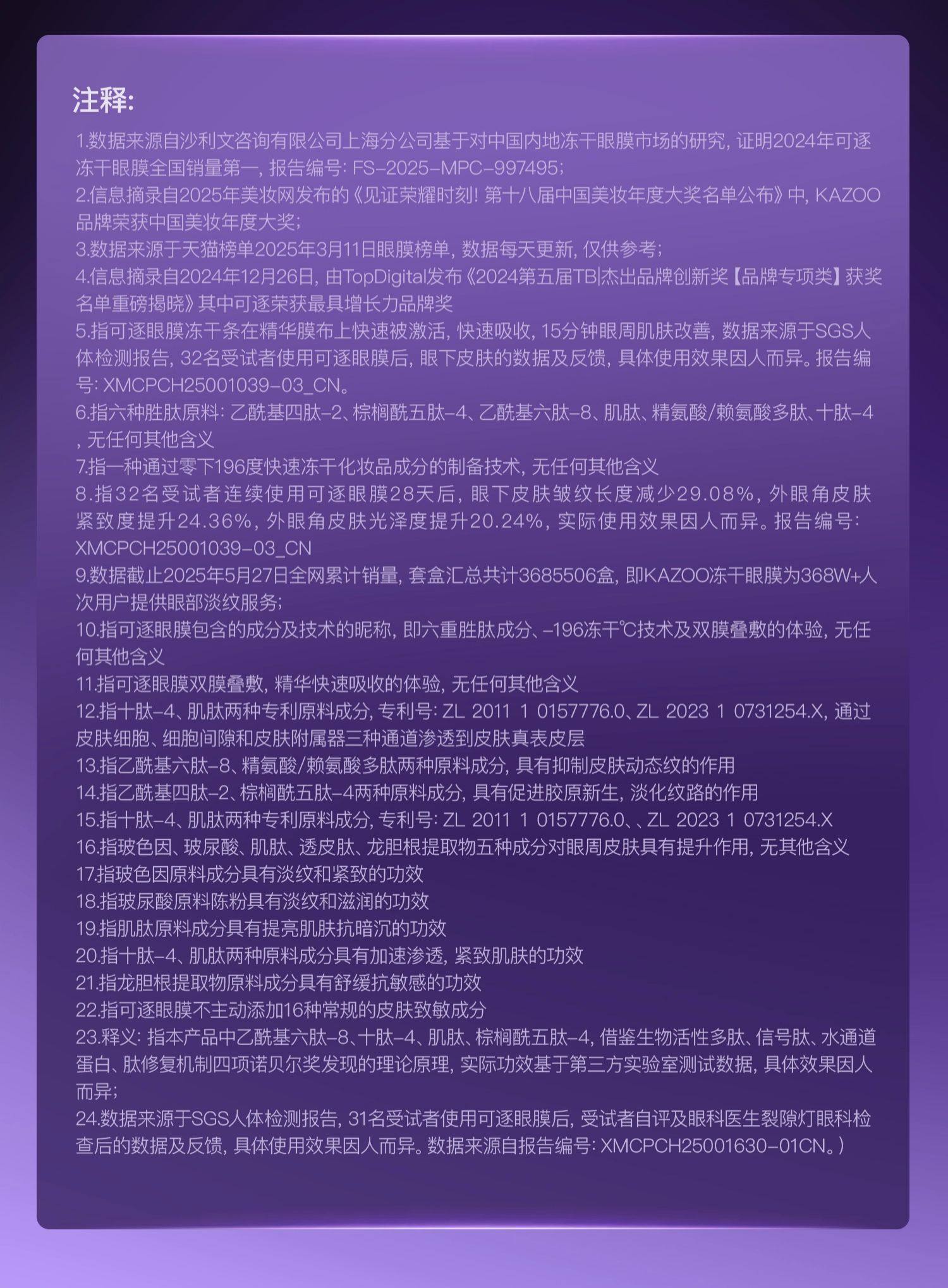 【徐璐推荐】KAZOO可逐冻干眼膜贴 抗皱紧致细纹淡化眼纹霜