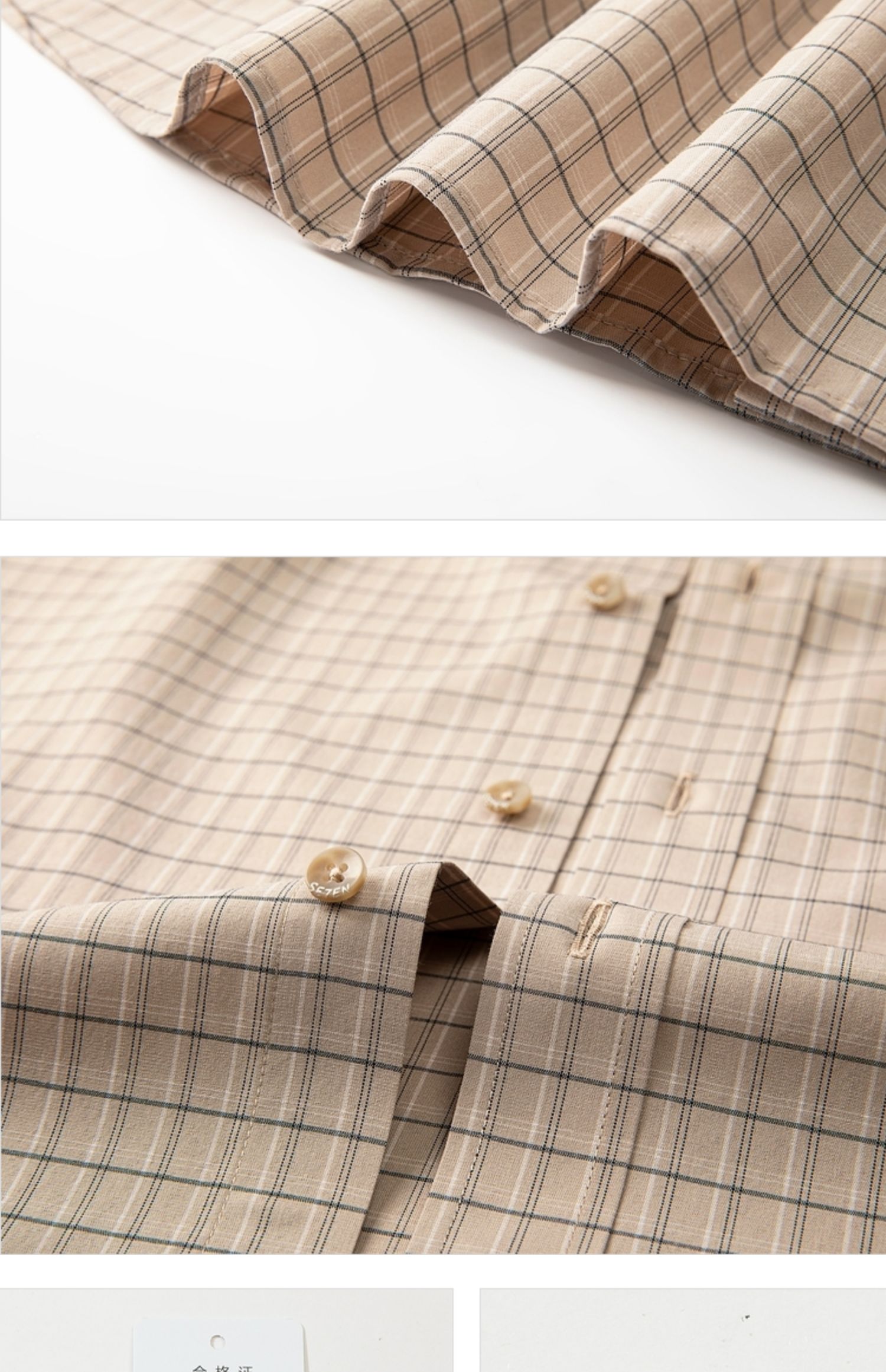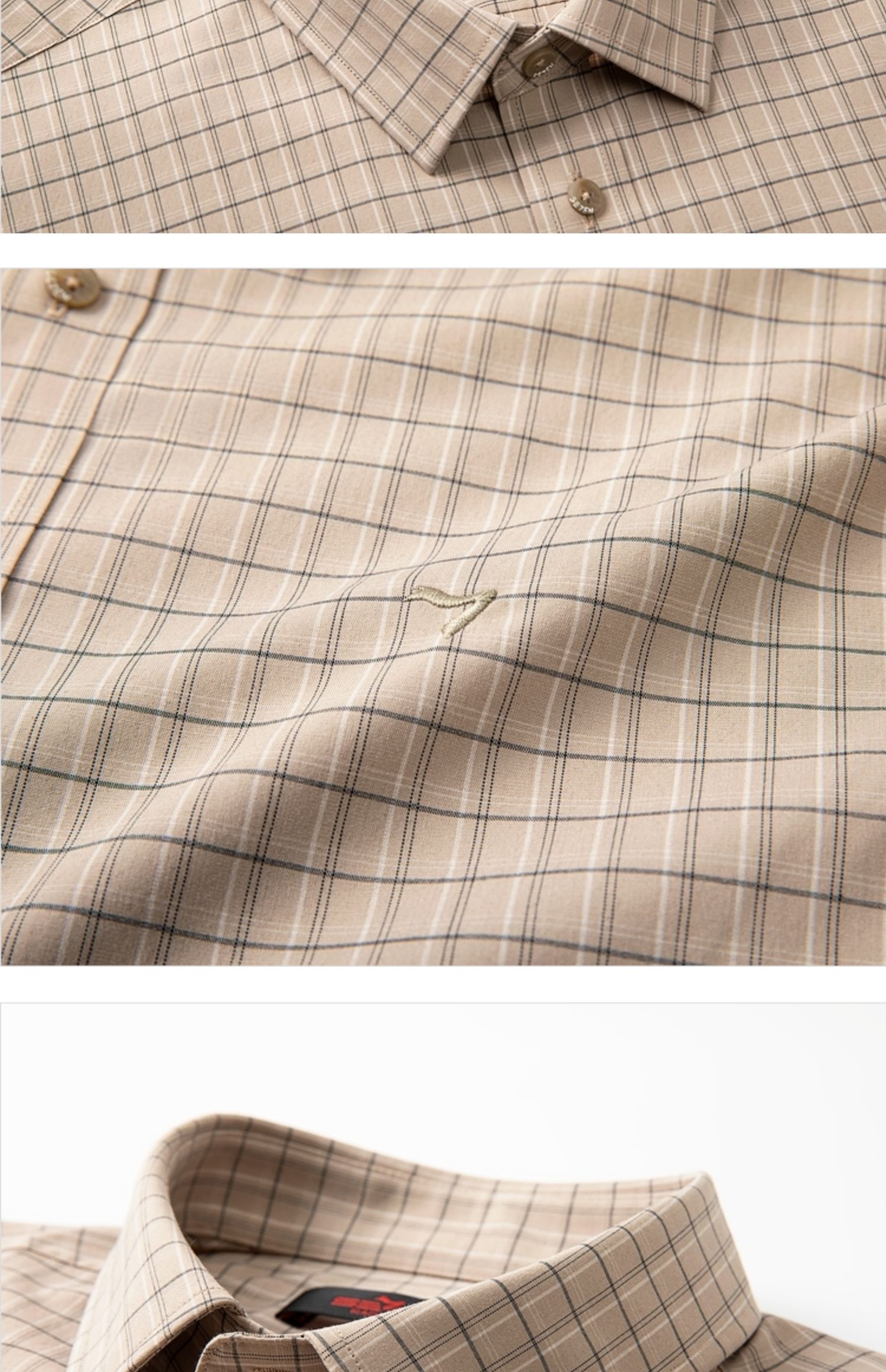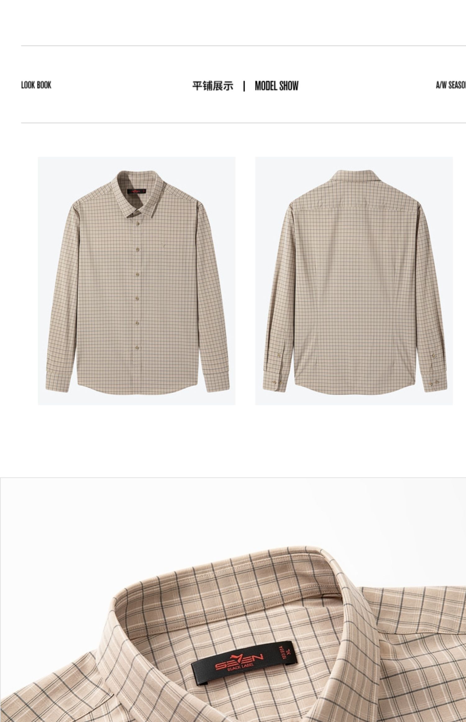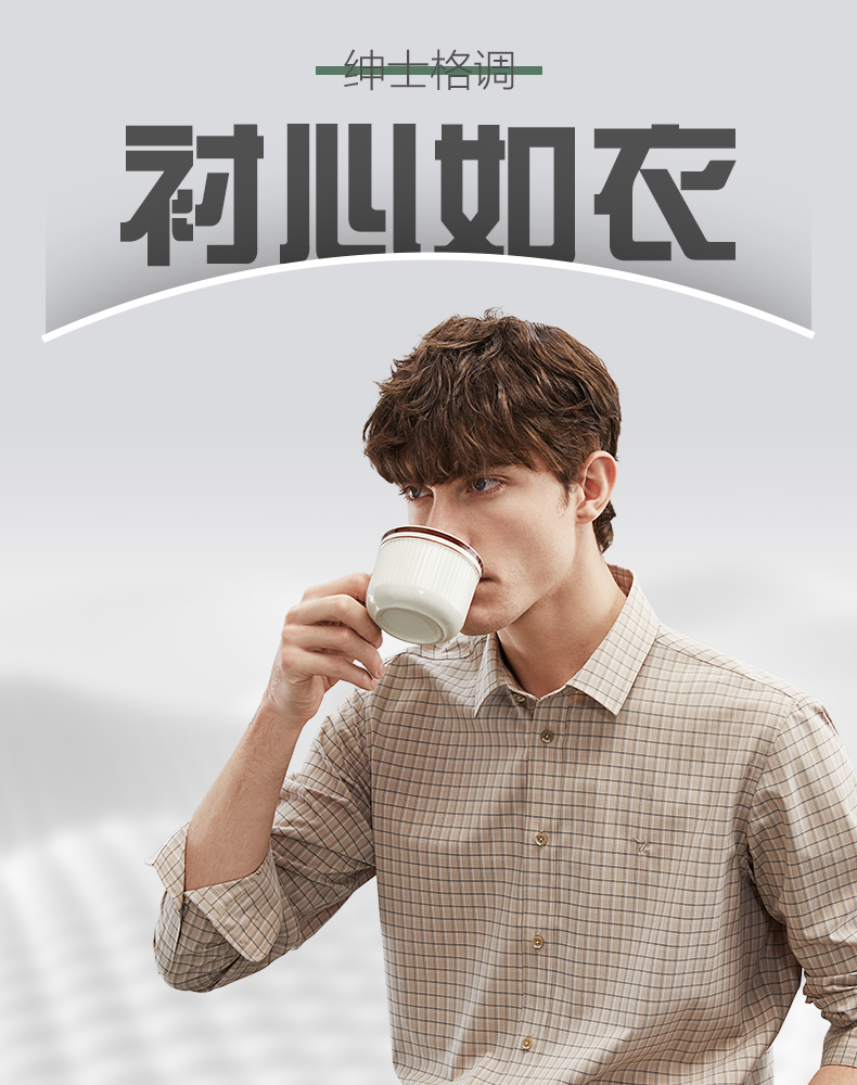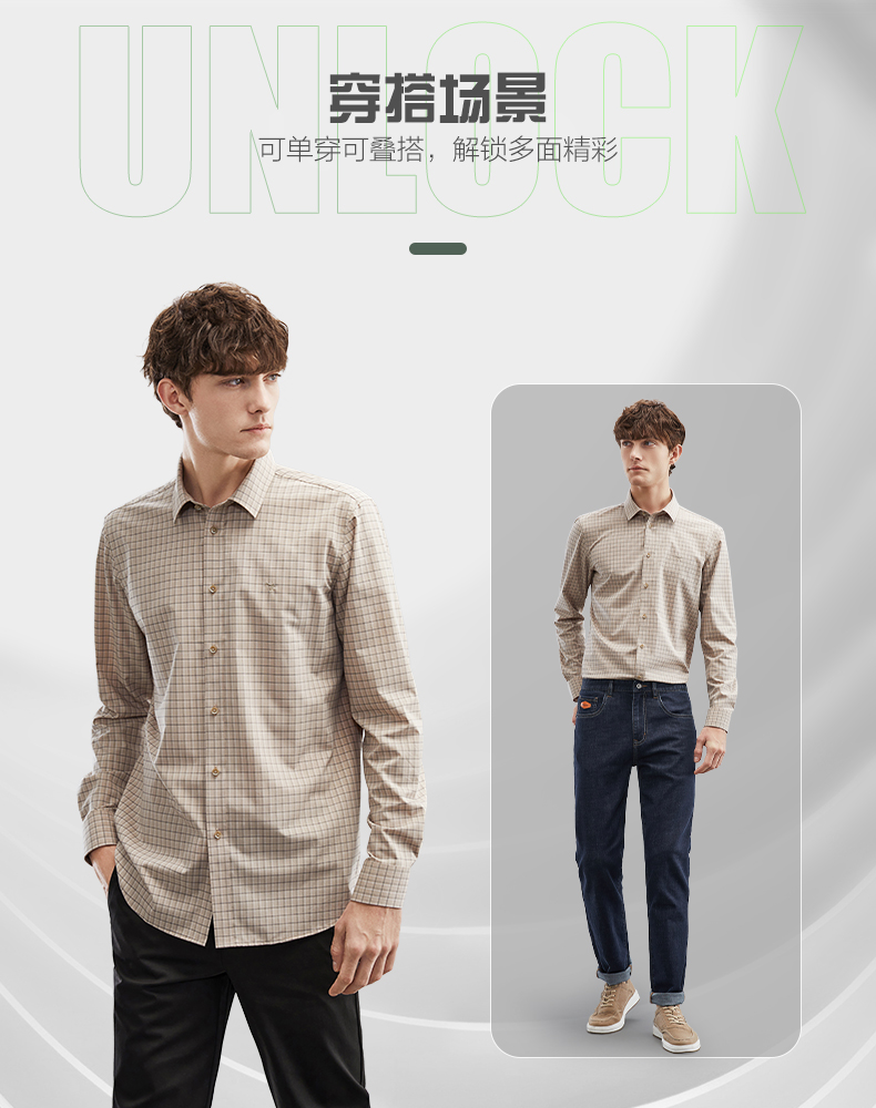【特价】【竹纤维】柒牌男士长袖衬衫春季新款时尚休闲色织格翻领衬衣 124A70160
