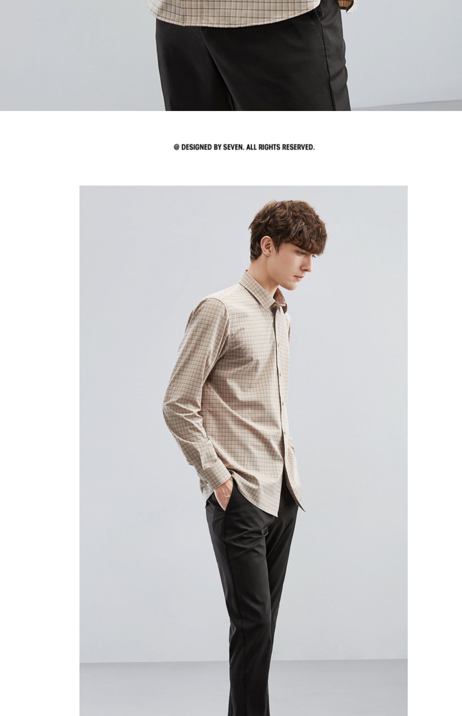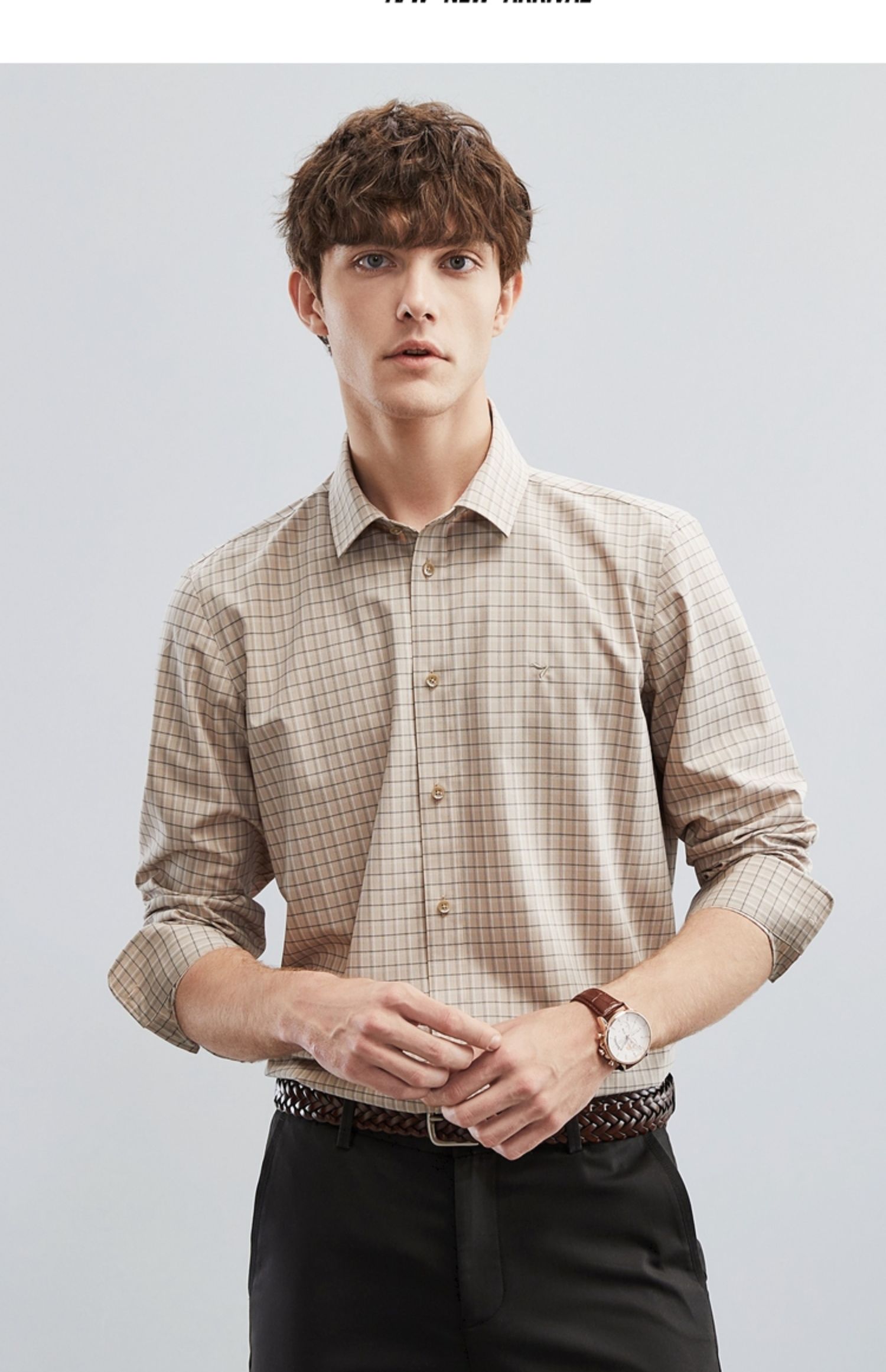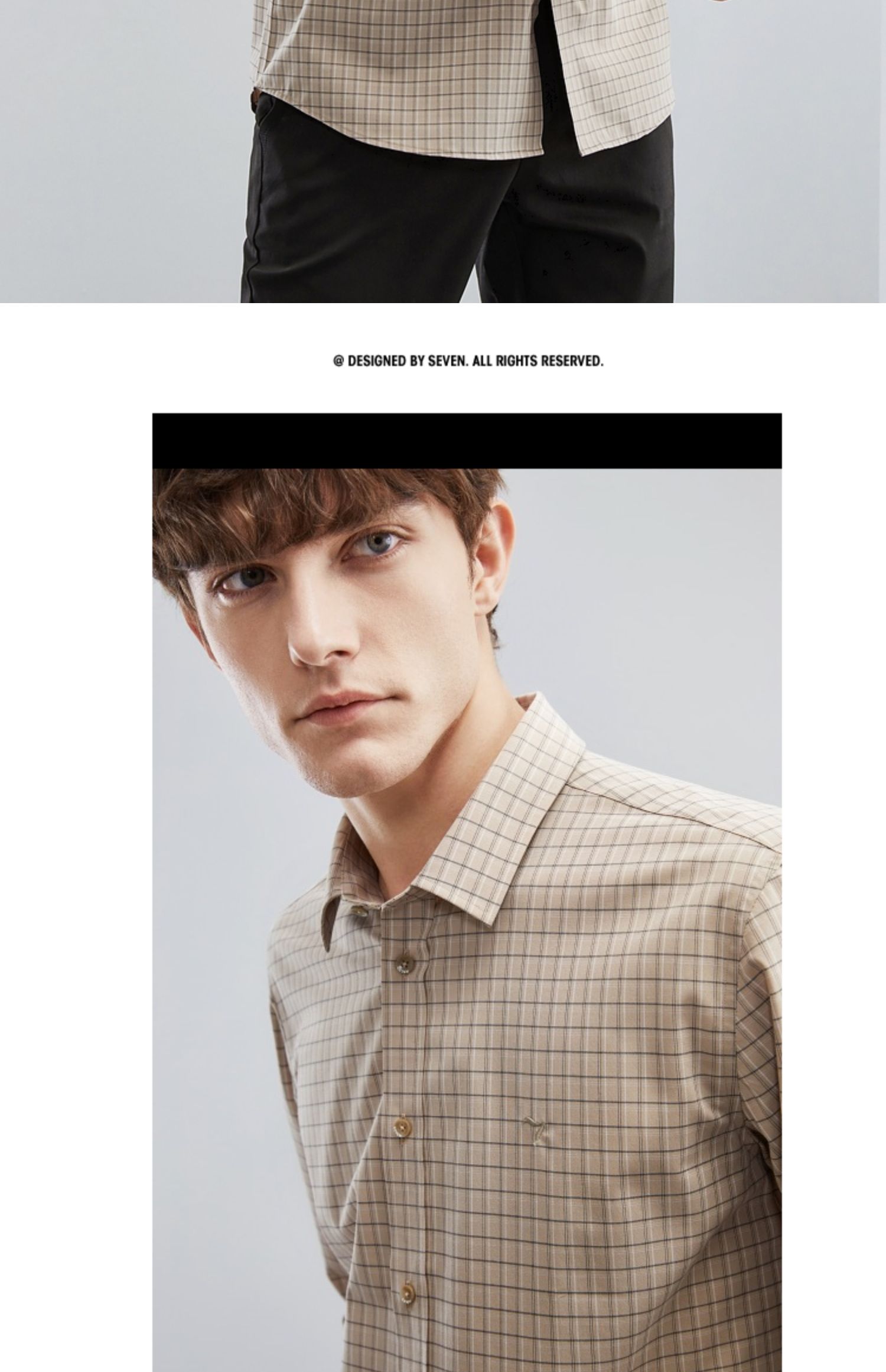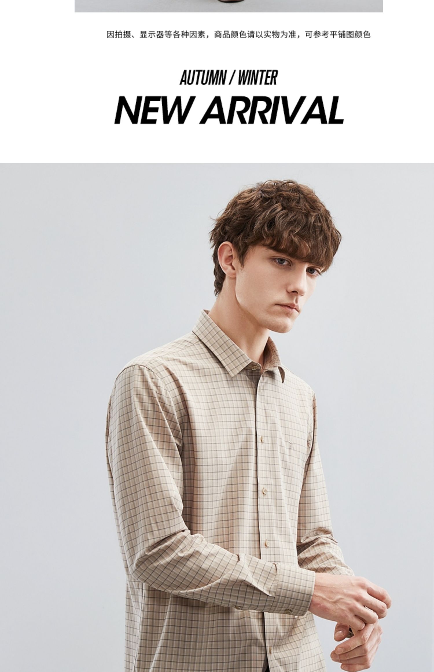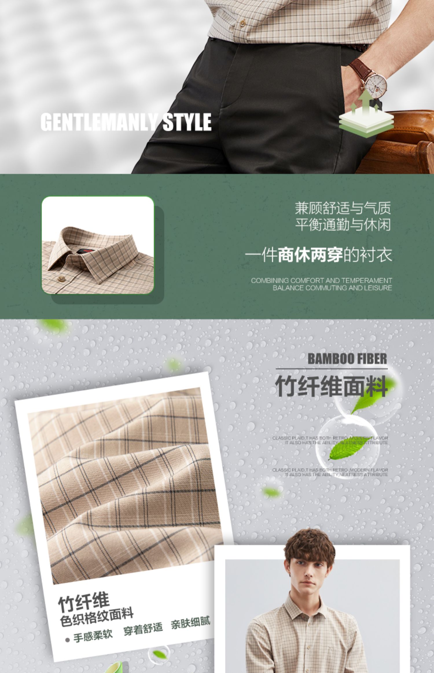 【特价】【竹纤维】柒牌男士长袖衬衫春季新款时尚休闲色织格翻领衬衣 124A70160