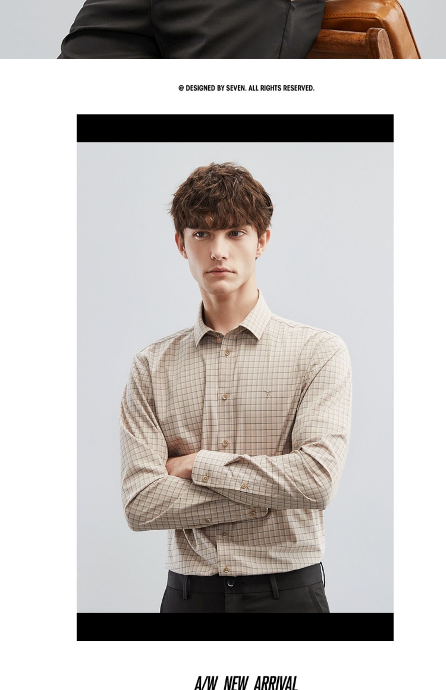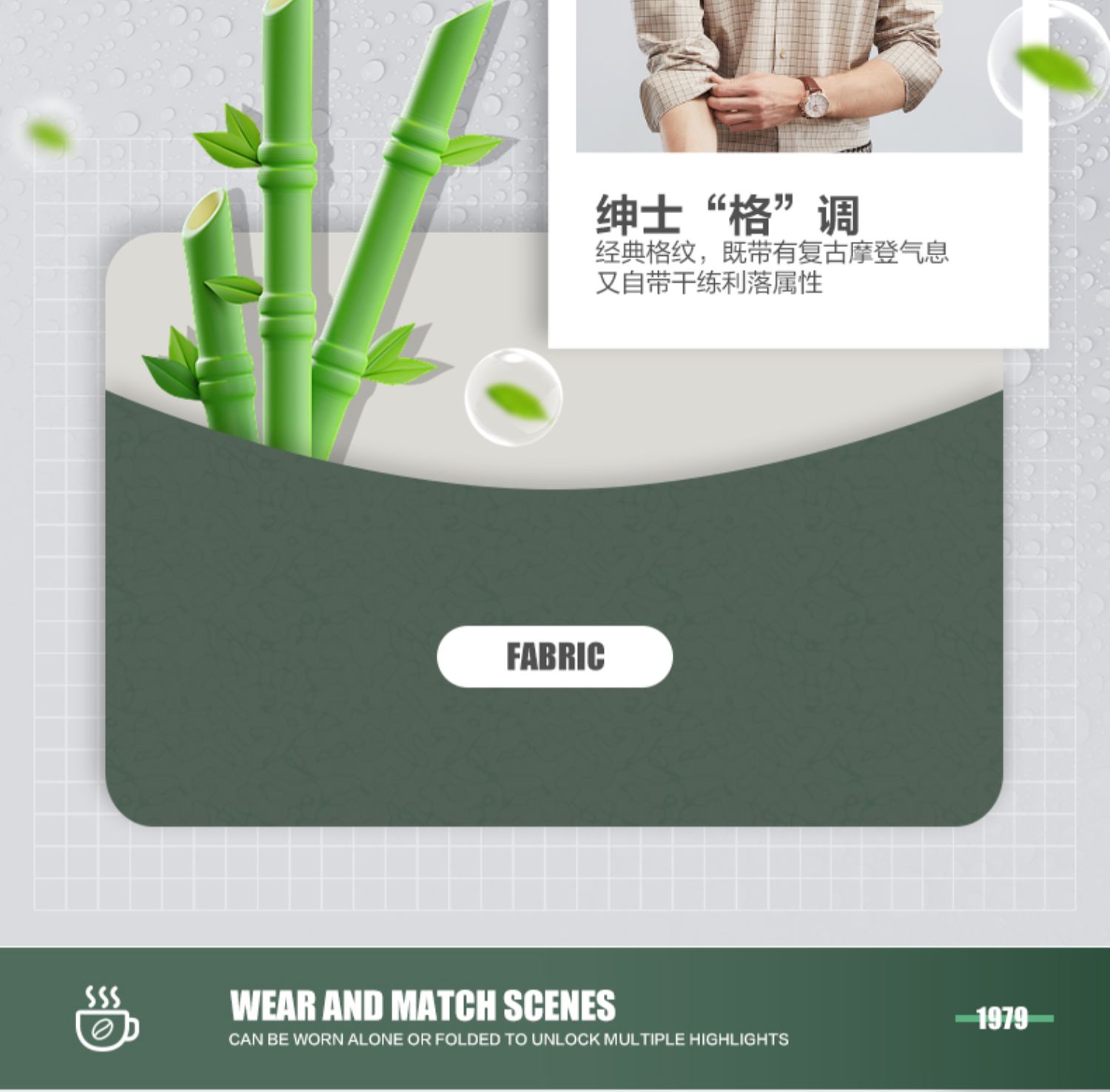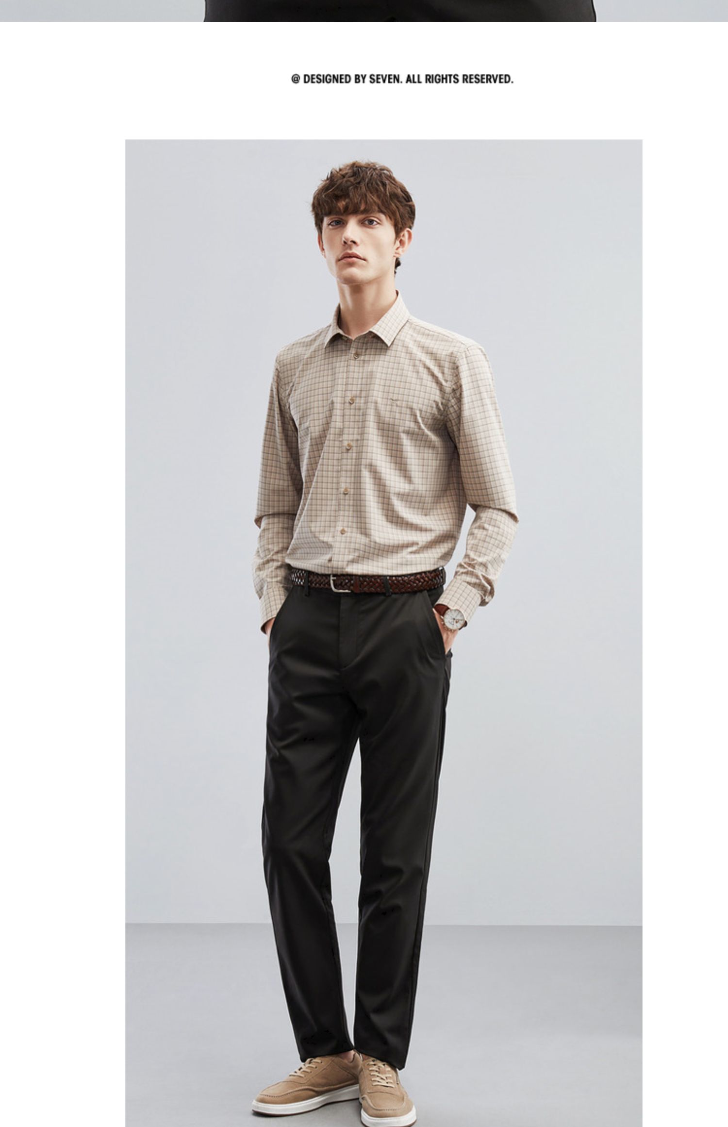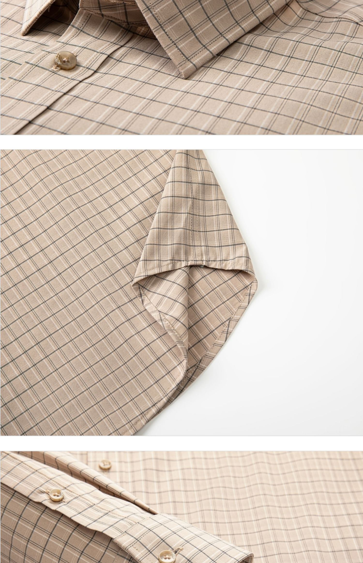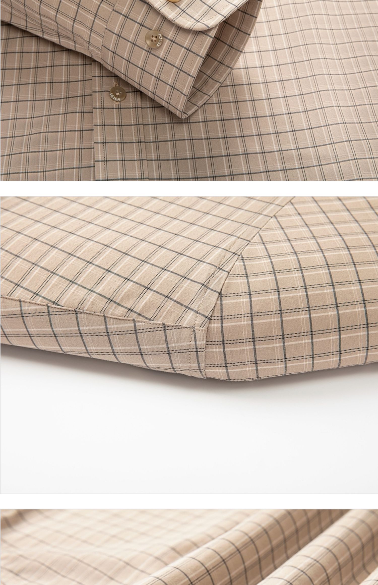 【特价】【竹纤维】柒牌男士长袖衬衫春季新款时尚休闲色织格翻领衬衣 124A70160