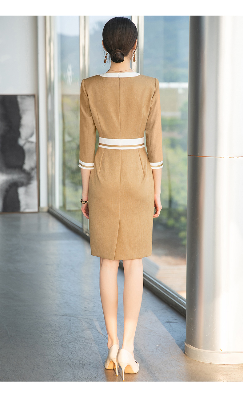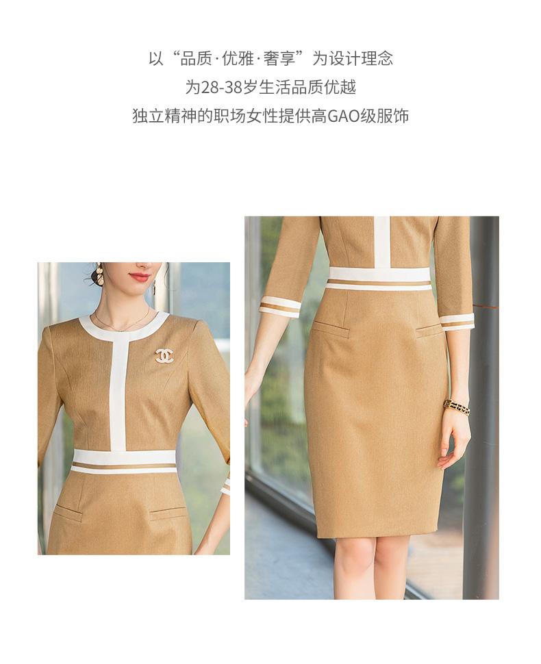 IWY/卡其色职业西装连衣裙医美工作服售楼部前台显瘦收腰时尚气质Q748