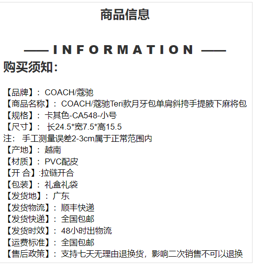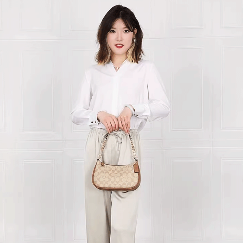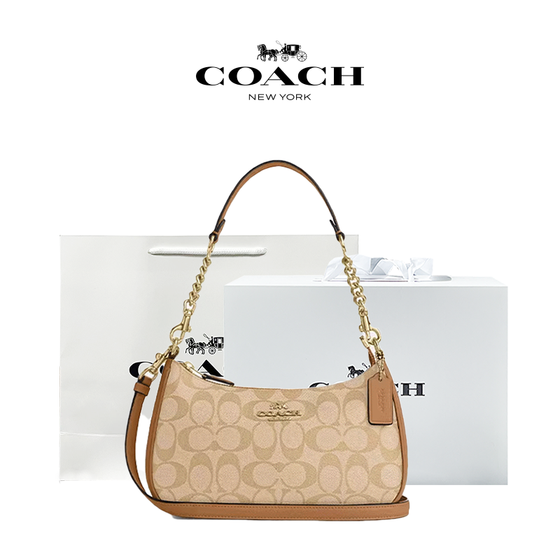 【品牌授权】【礼盒礼袋 】COACH蔻驰Teri24新款奥莱月牙包单肩斜挎手提腋下麻将包
