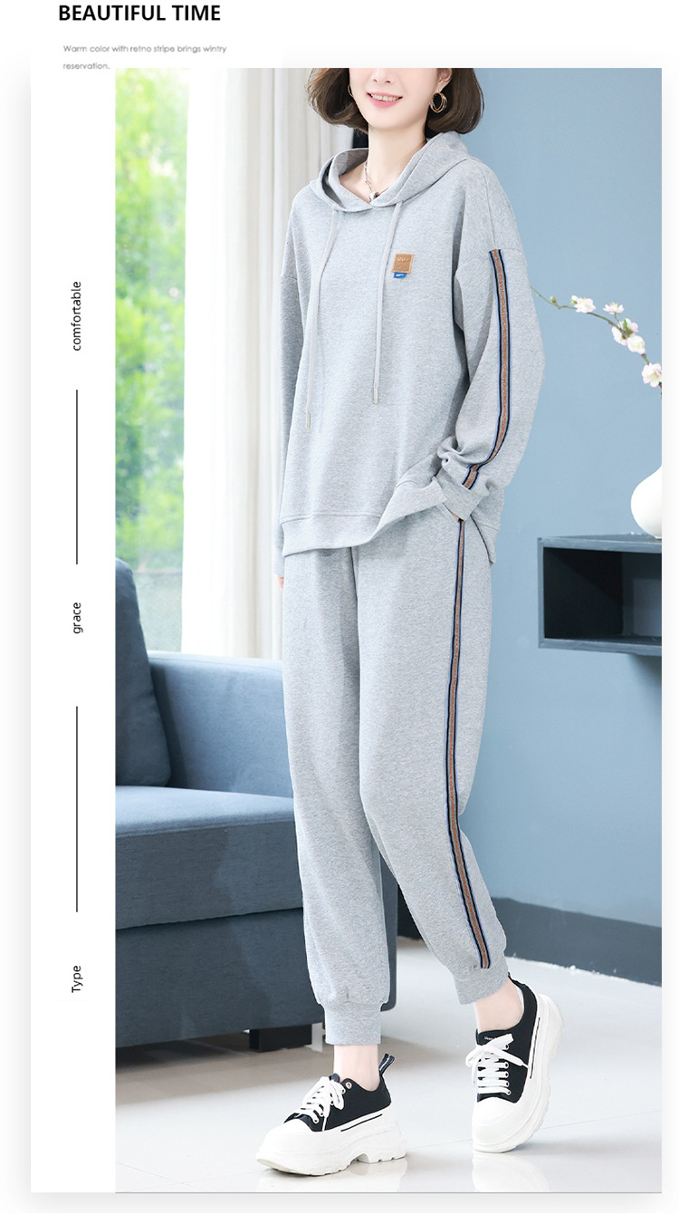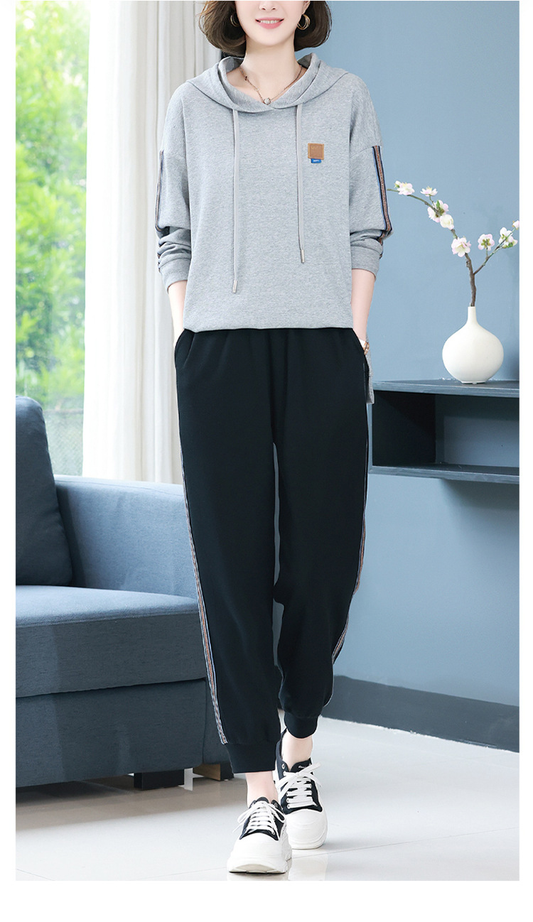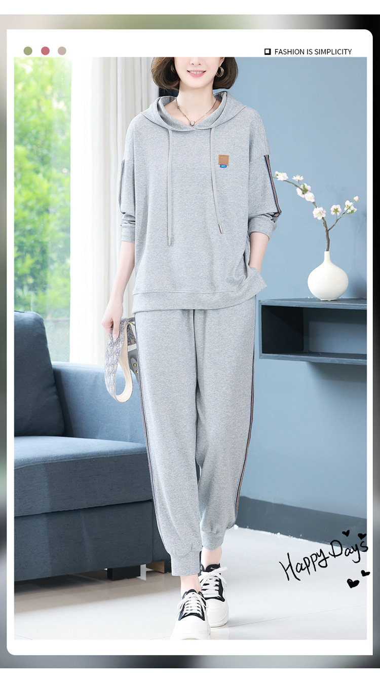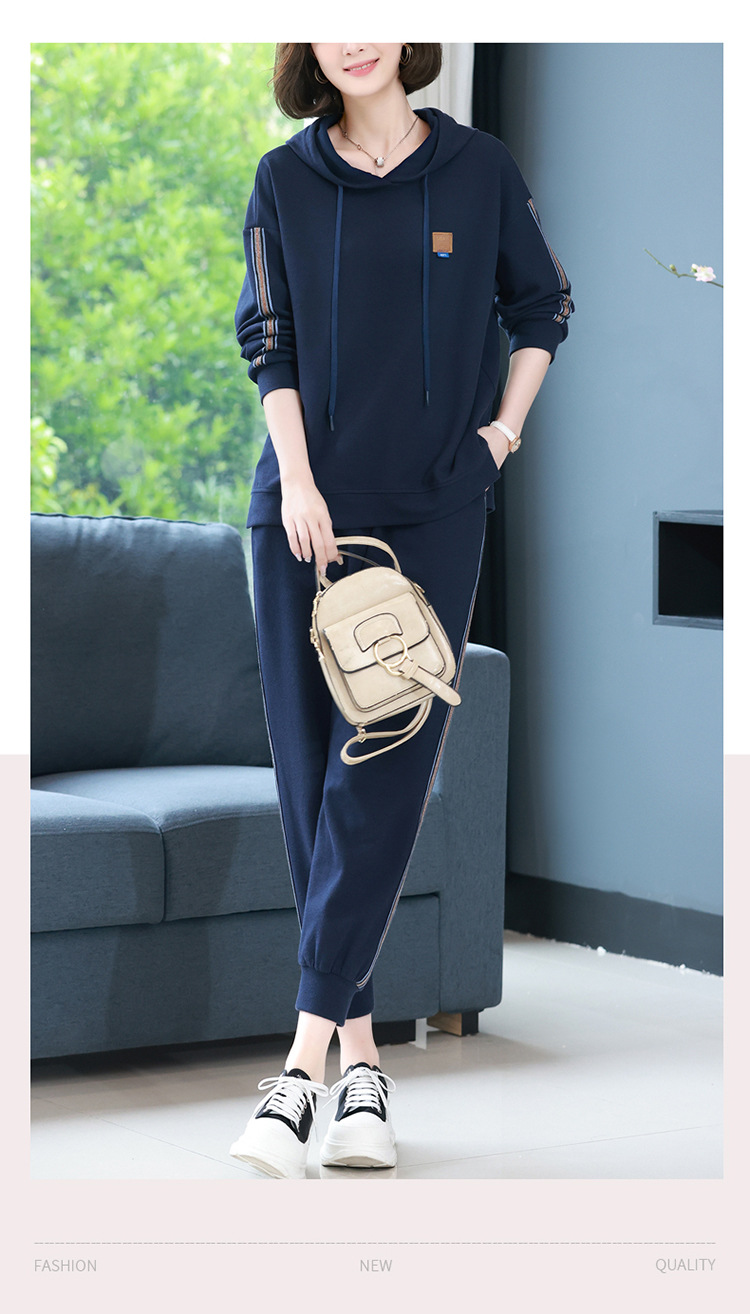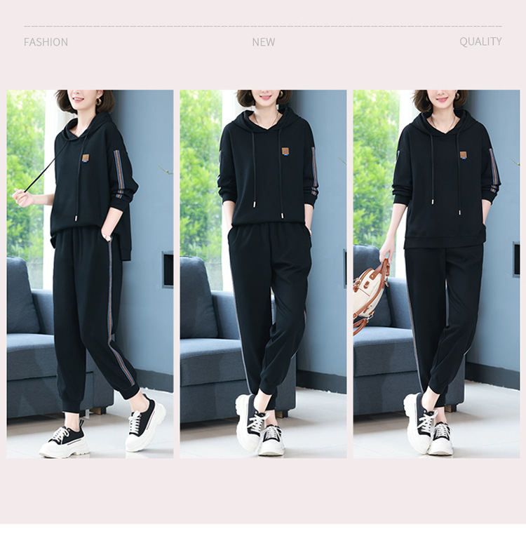 休闲运动服套装,秋新款时尚妈妈洋气秋装卫衣两件套HR-WLT27109