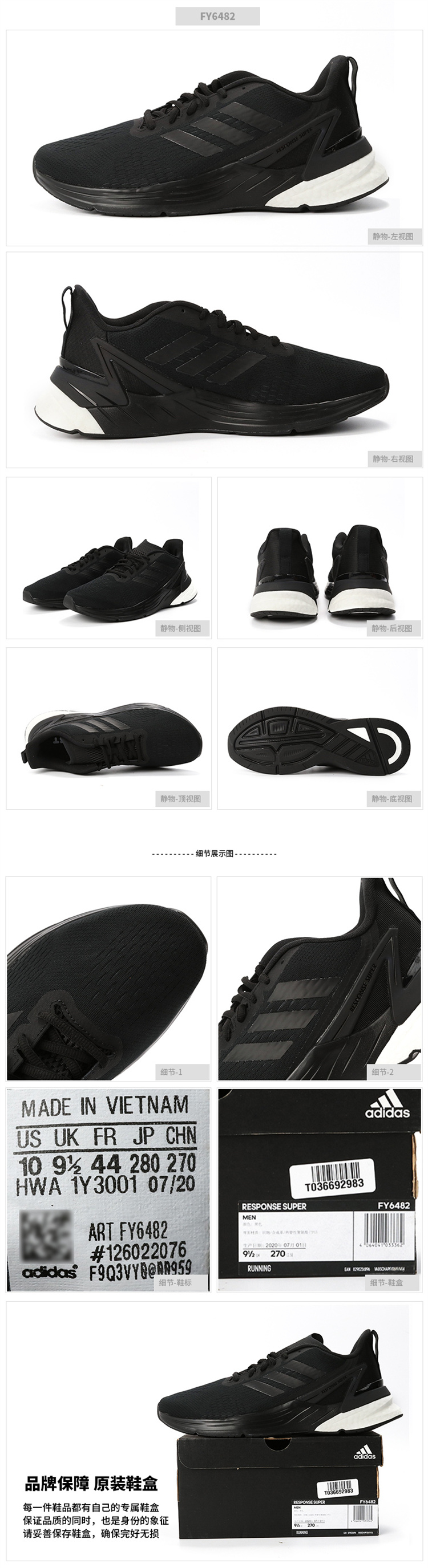 Adidas/阿迪达斯 21年春夏新品 男款 RESPONSE SUPER 舒适 透气 轻便 运动 跑步鞋 FY6482