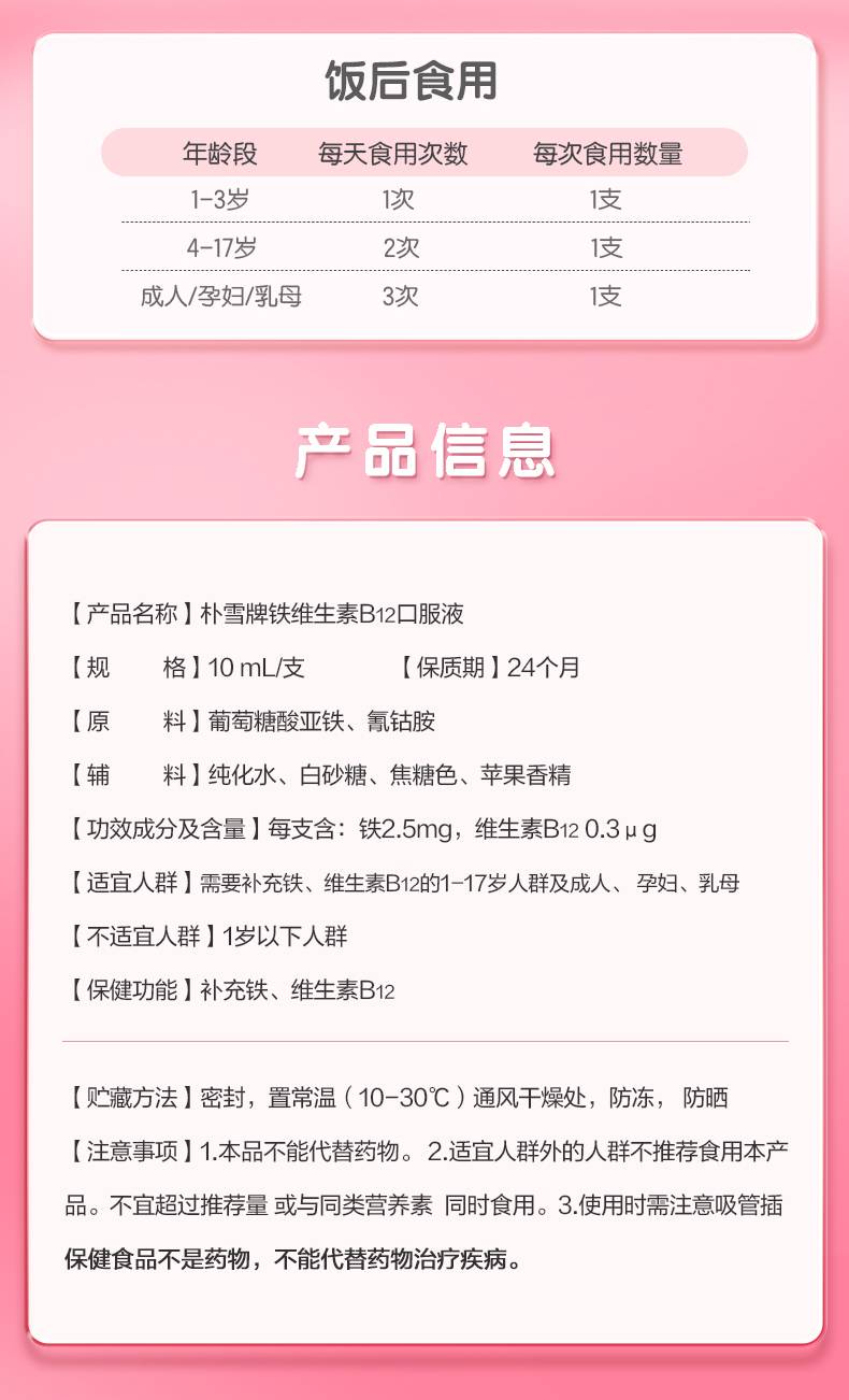 哈药朴雪牌铁维生素B12口服液10mI*90支【适合1岁以上儿童及成人均可食用】
