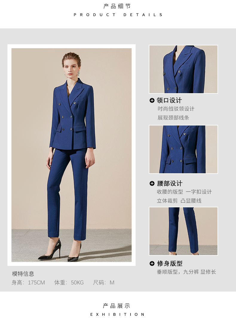 IWY/蓝色百搭通勤面试西服西装套装女时尚气质女神主持人上镜面试正装CP3410