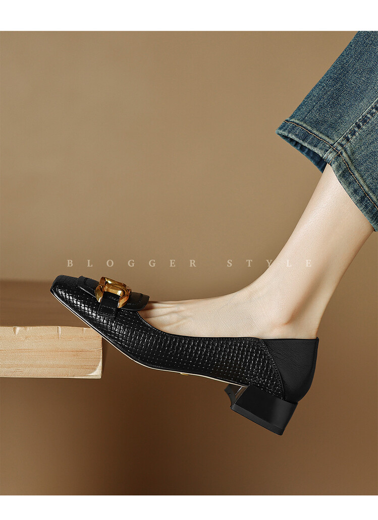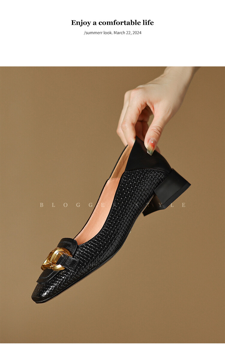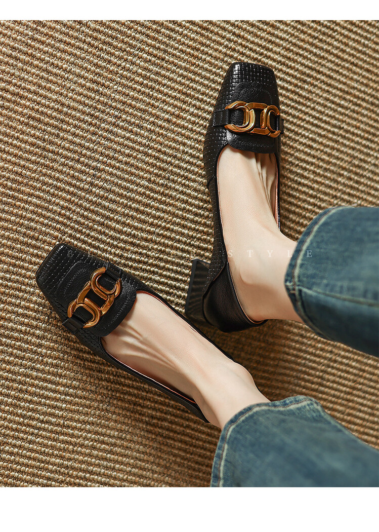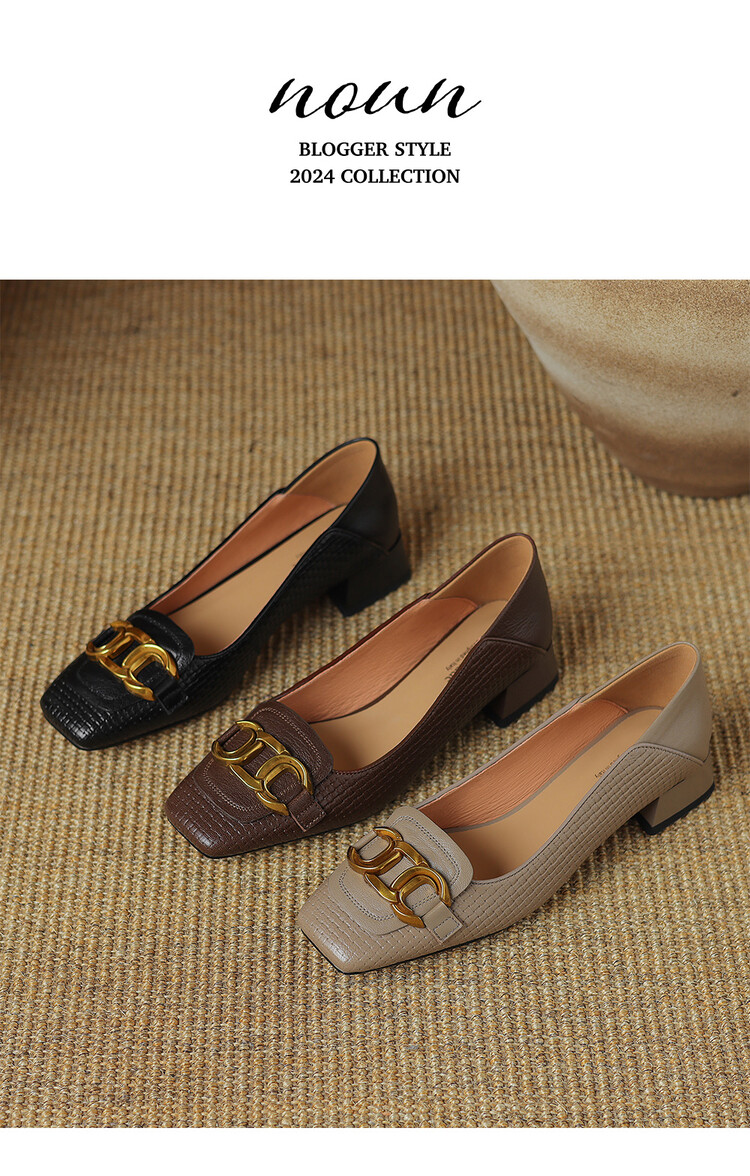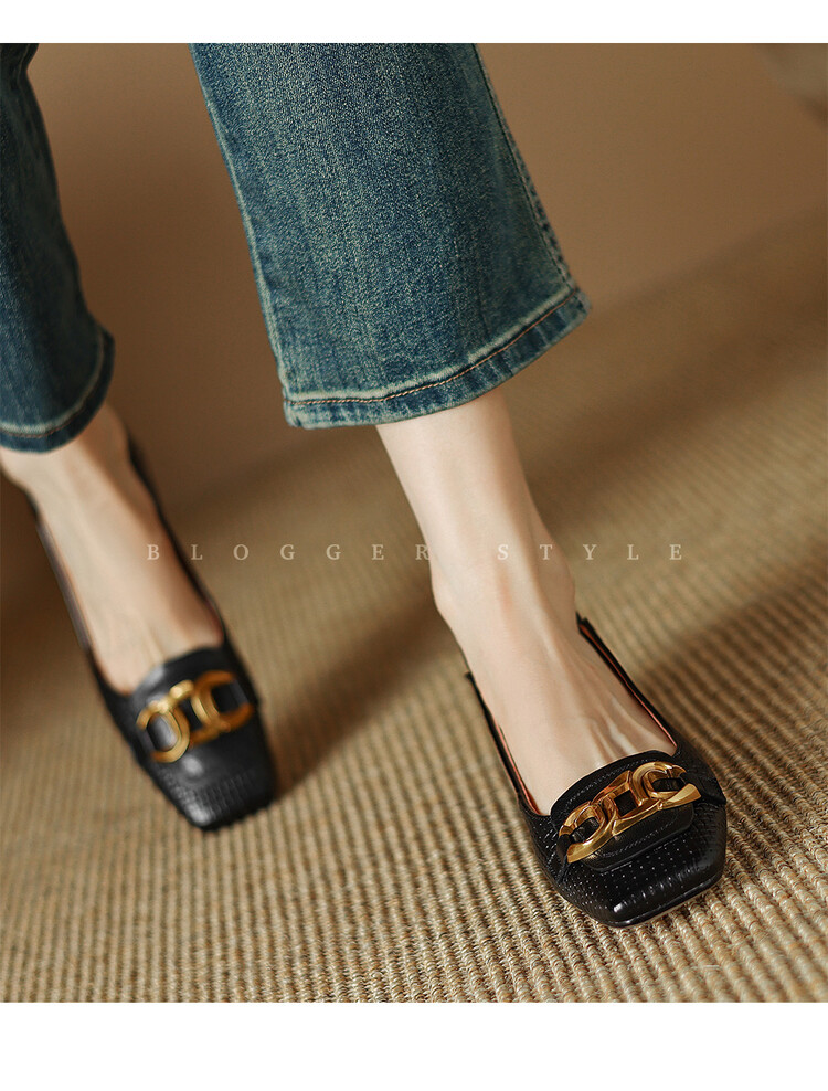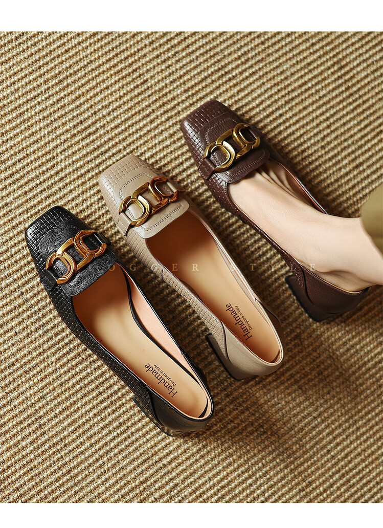 【预售5天】气质方头舒服新款里外全皮时尚单鞋女低跟通勤浅口瓢鞋LD&6833