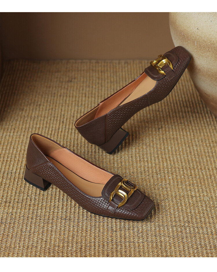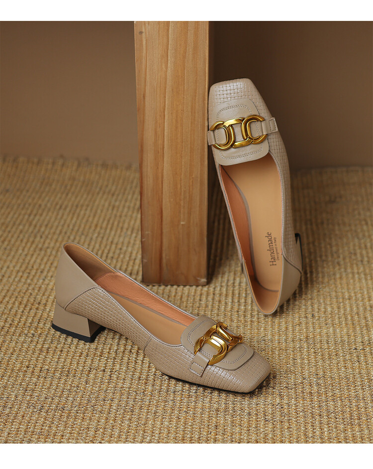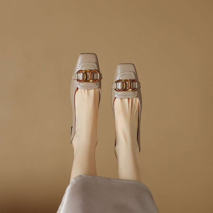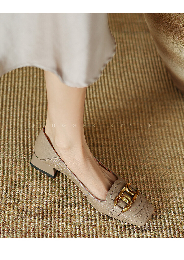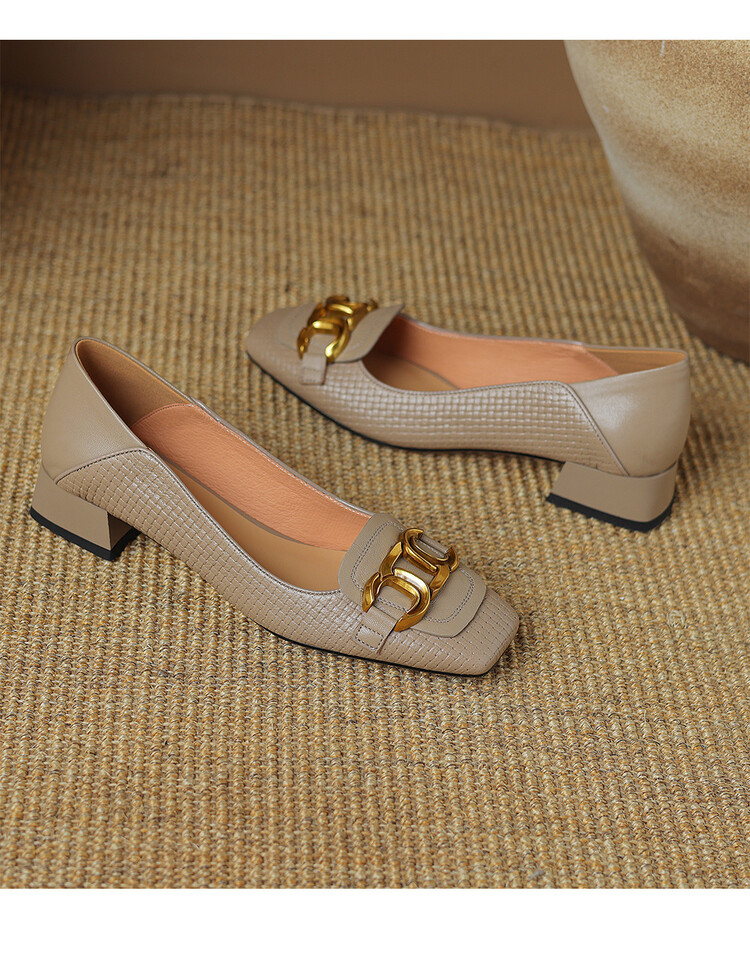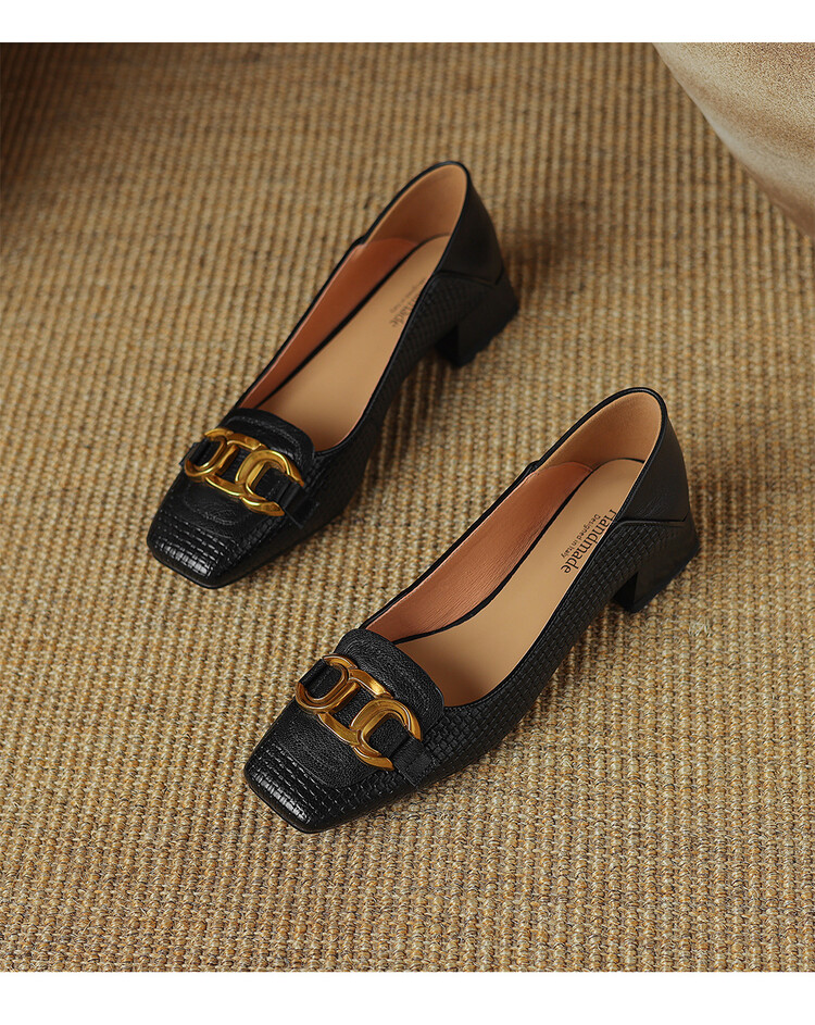 【预售5天】气质方头舒服新款里外全皮时尚单鞋女低跟通勤浅口瓢鞋LD&6833