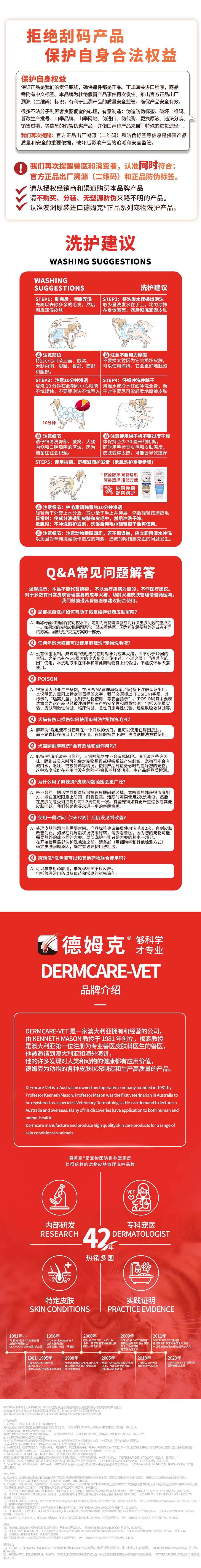 澳洲Dermcare麻辣洗抗菌药浴香波 250ml 官方直供 正品保证 犬猫通用 猫癣马拉色菌等皮肤问题