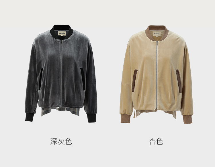 famecoco范可儿宽松短款棒球服女士秋款休闲丝绒设计感外套D221AB300