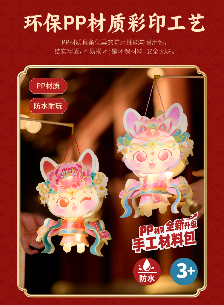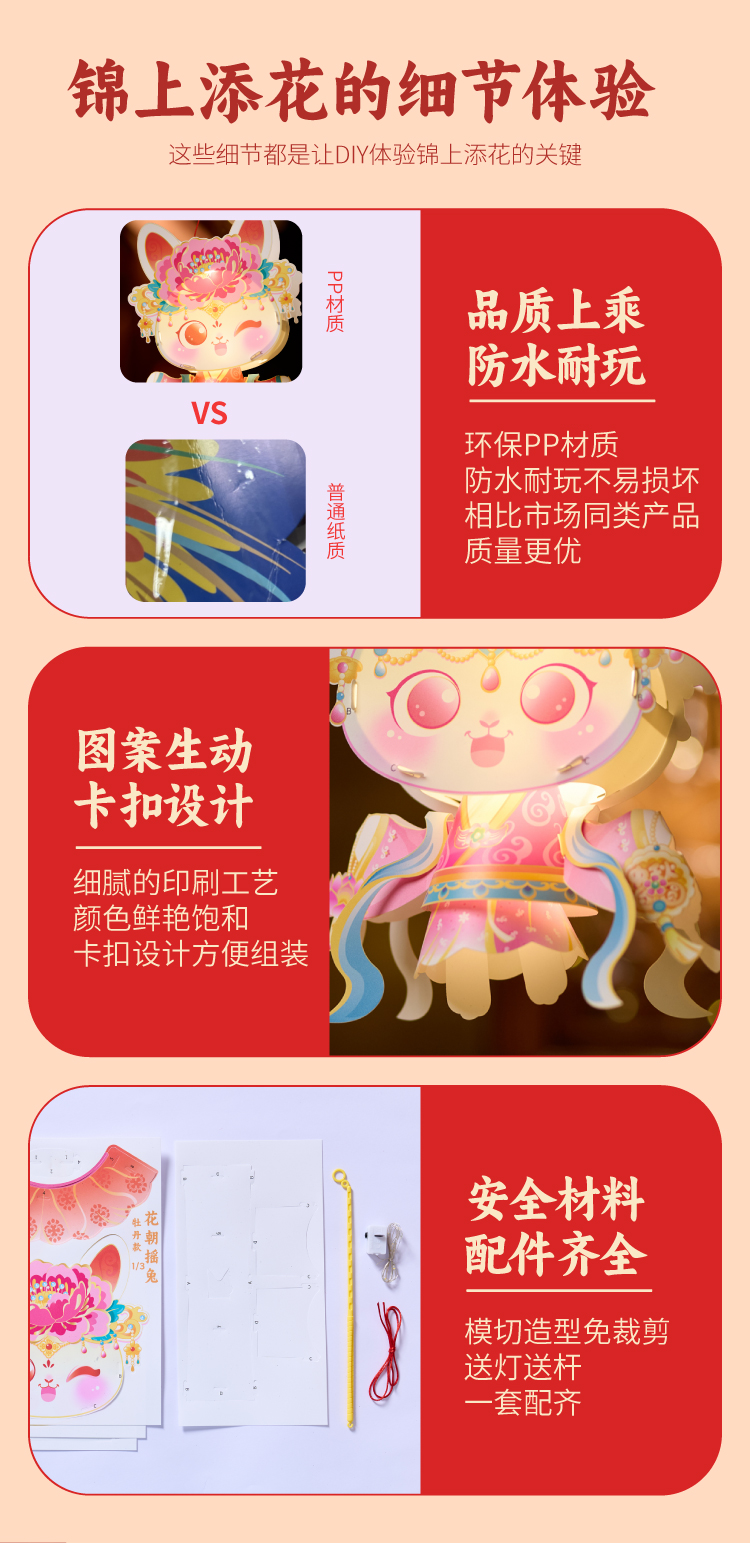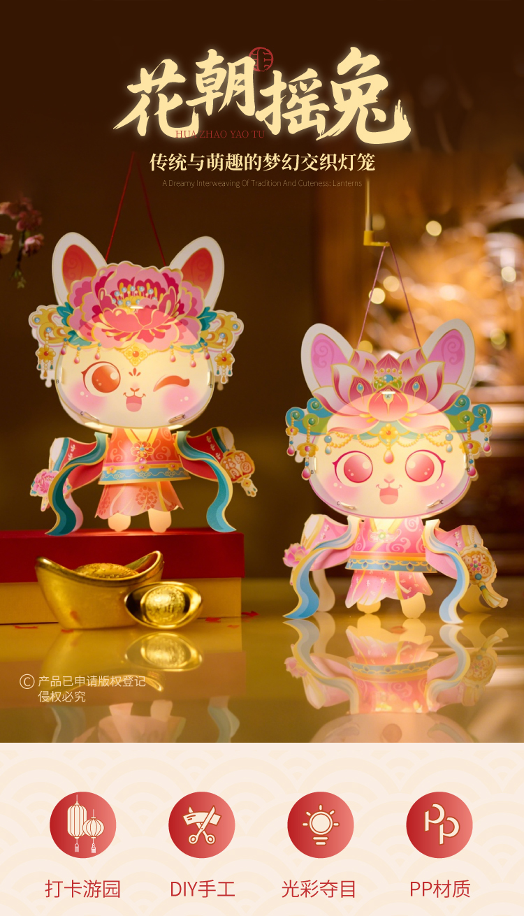 【供】中秋节花朝摇兔灯笼手工diy儿童制作材料古风玉兔子花灯2025装饰