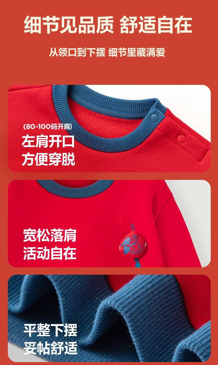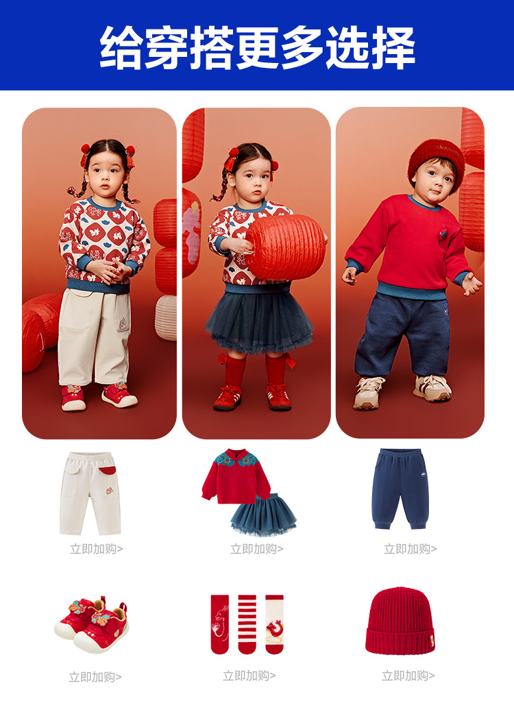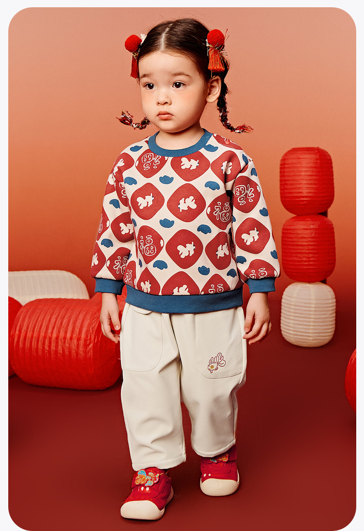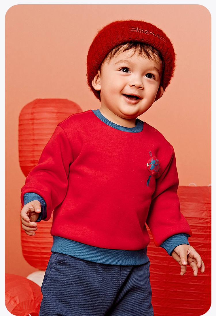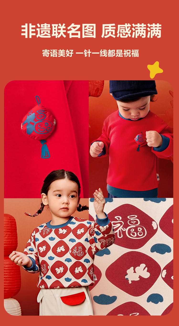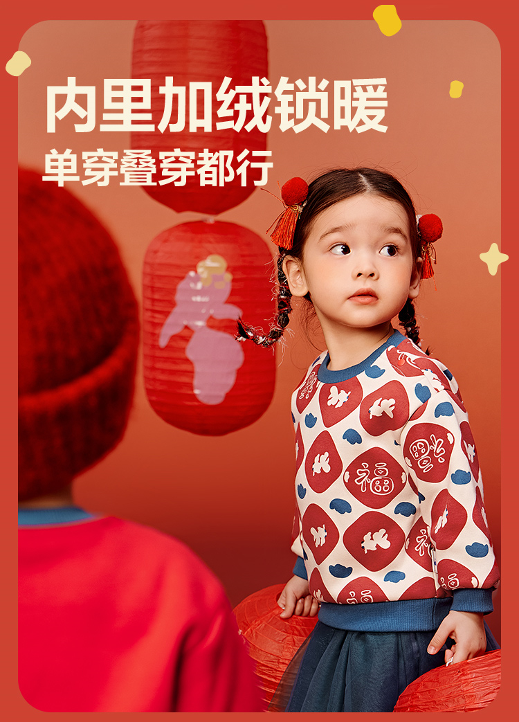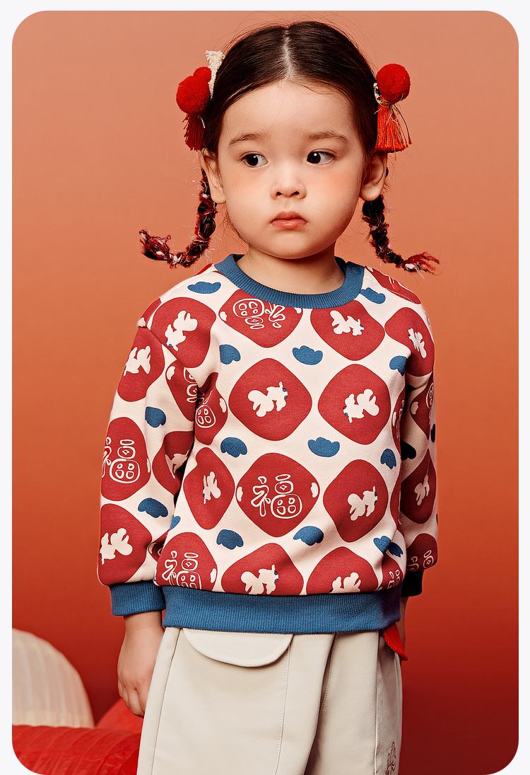 【非遗联名】迷你巴拉男女童卫衣新年冬春季加绒儿童长袖上衣
